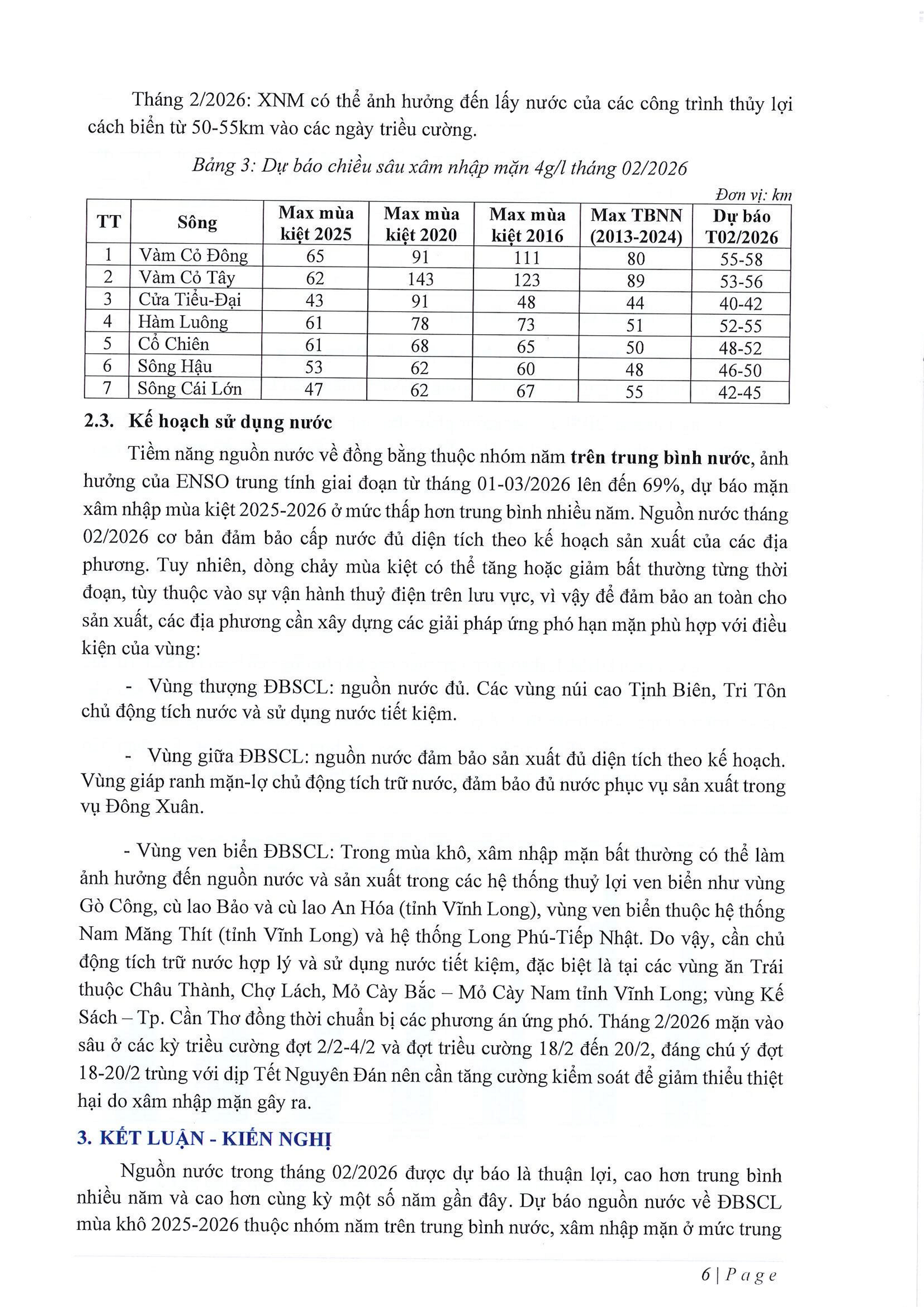 DỰ BÁO NGUỒN NƯỚC VÙNG ĐỒNG BẰNG SÔNG CỬU LONG PHỤC VỤ CHỈ ĐẠO SẢN XUẤT VÀ ĐIỀU HÀNH CẤP NƯỚC MÙA KIỆT NĂM 2026 (Tháng từ 01/02 đến 28/02/2026)