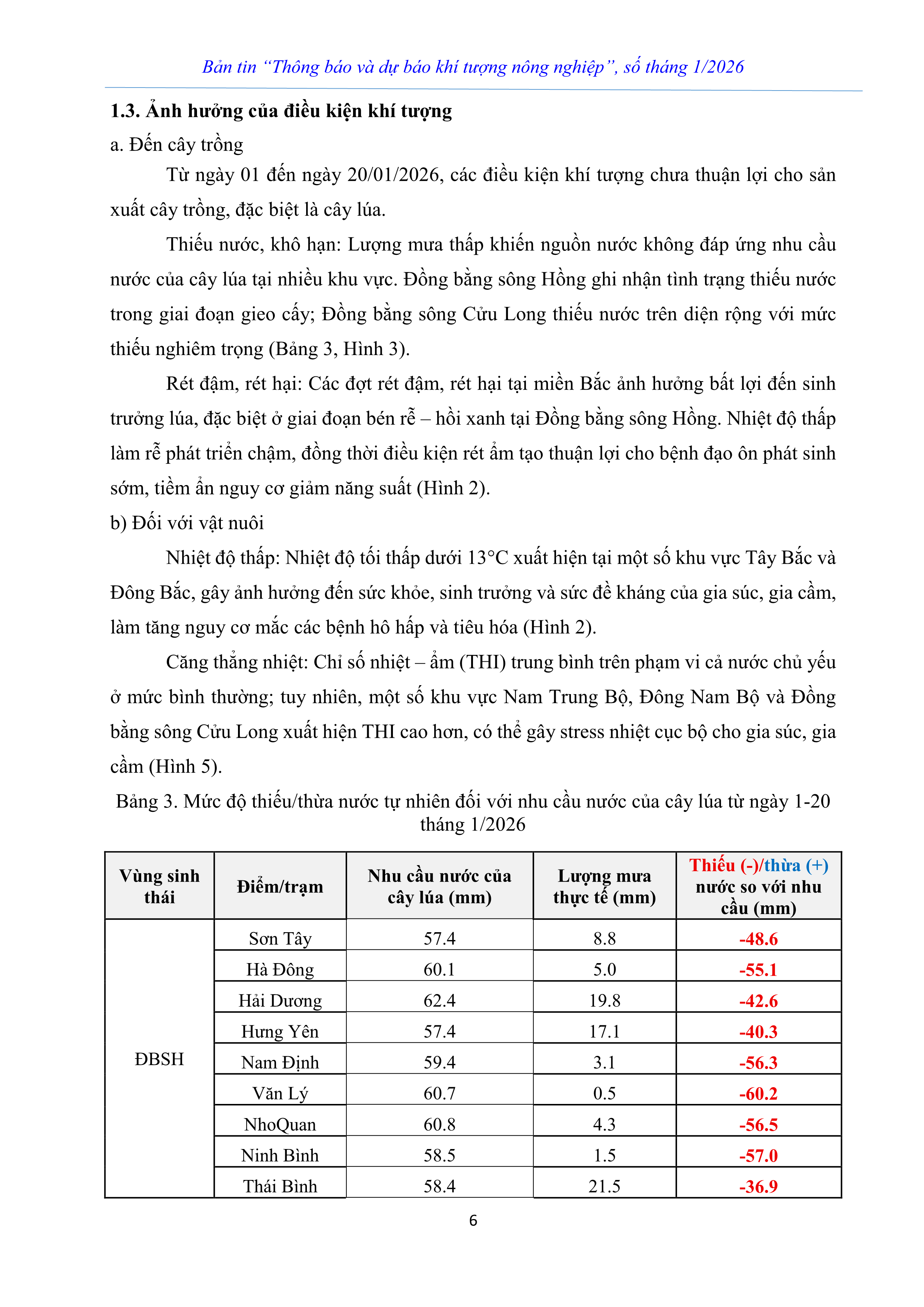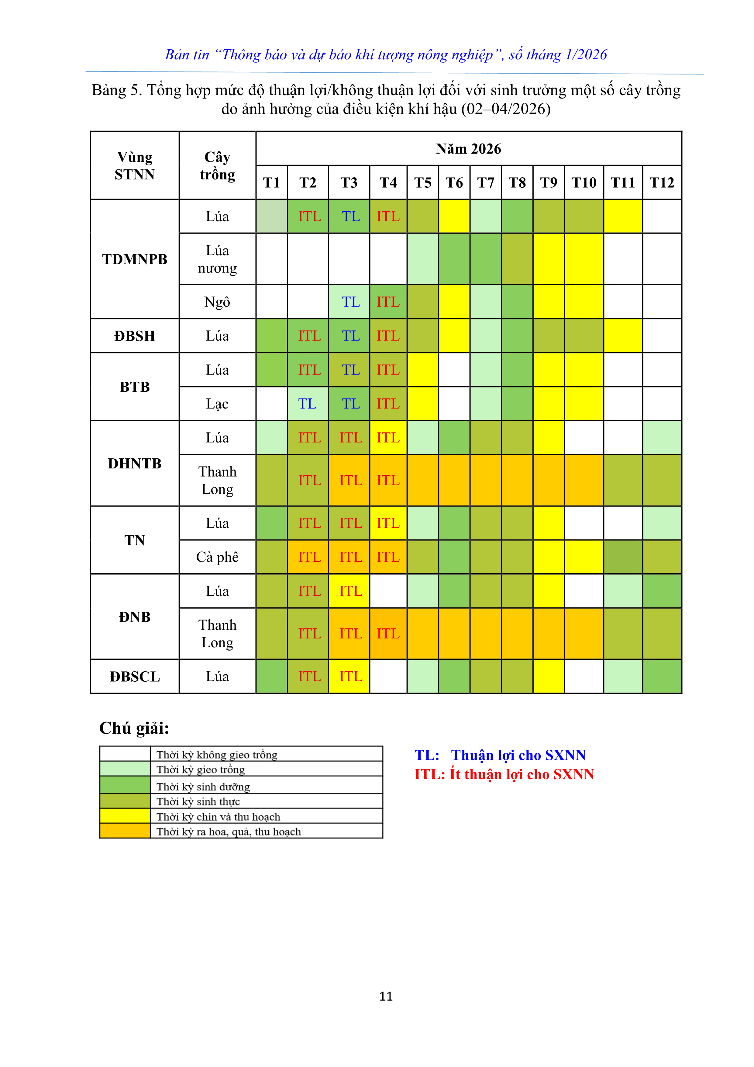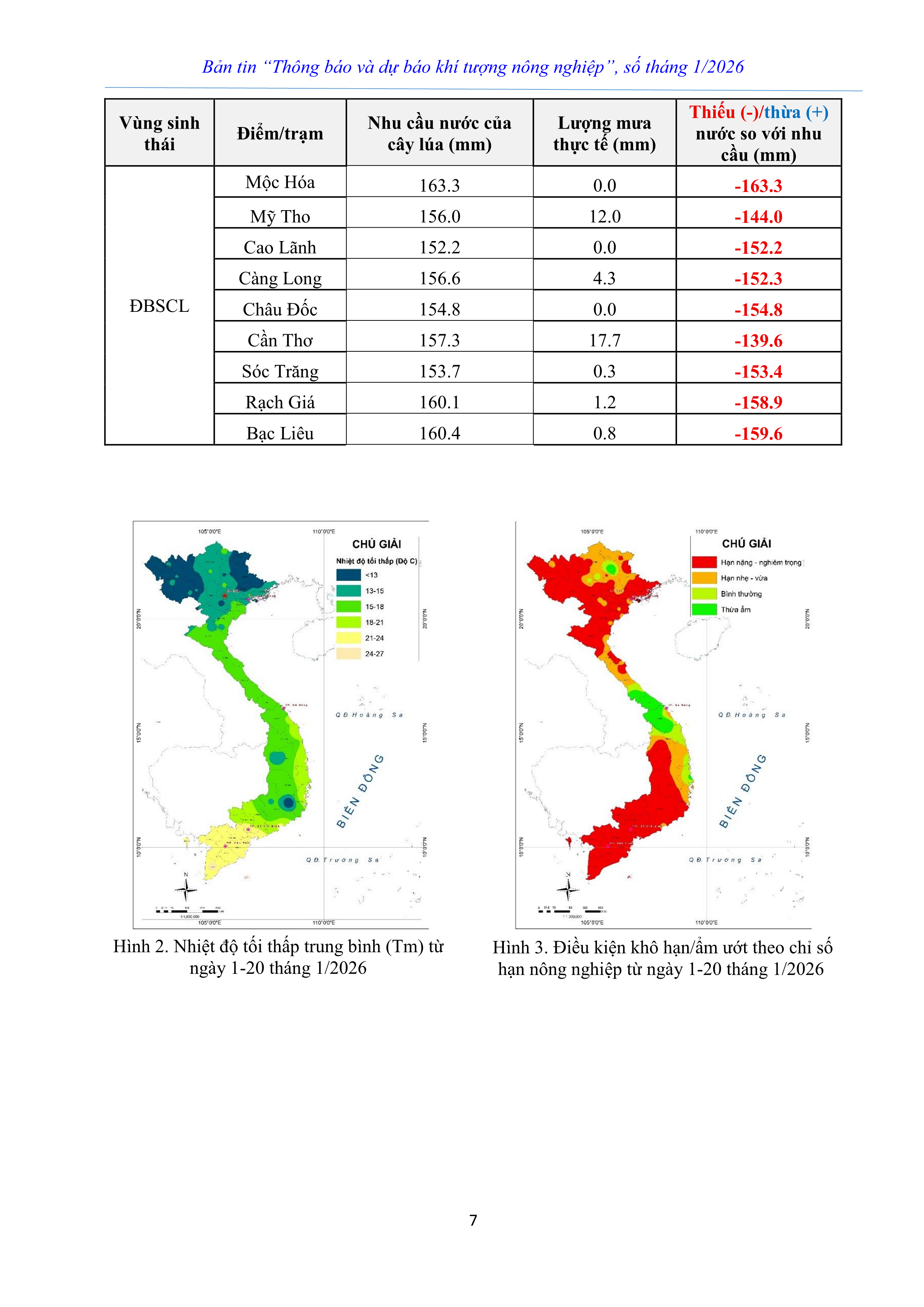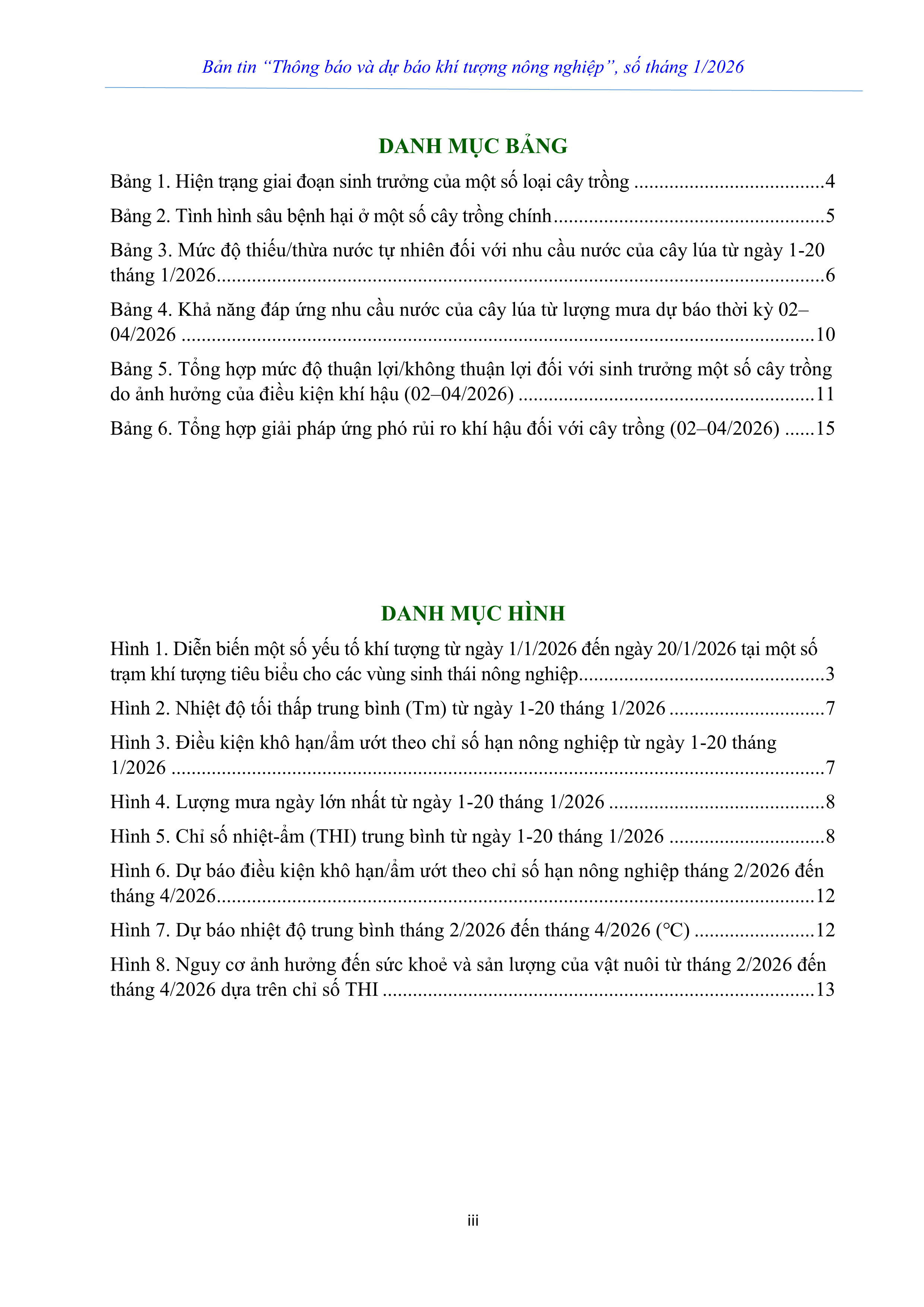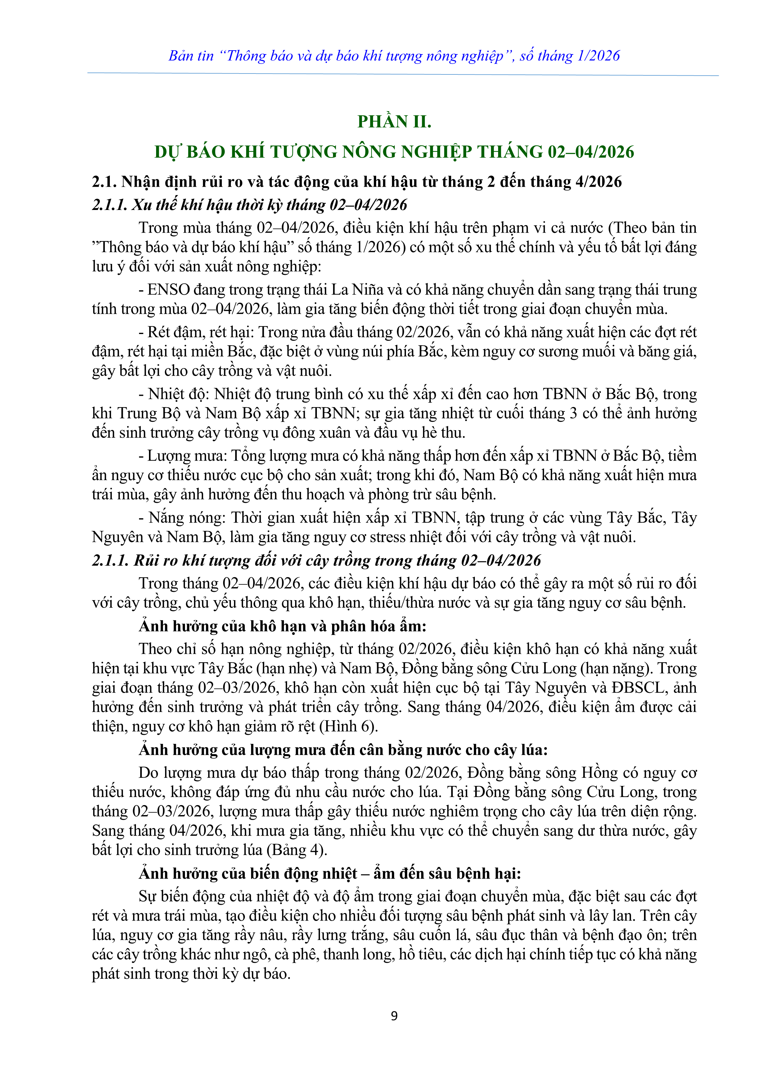 THÔNG BÁO VÀ DỰ BÁO KHÍ TƯỢNG NÔNG NGHIỆP SỐ THÁNG 01 NĂM 2026