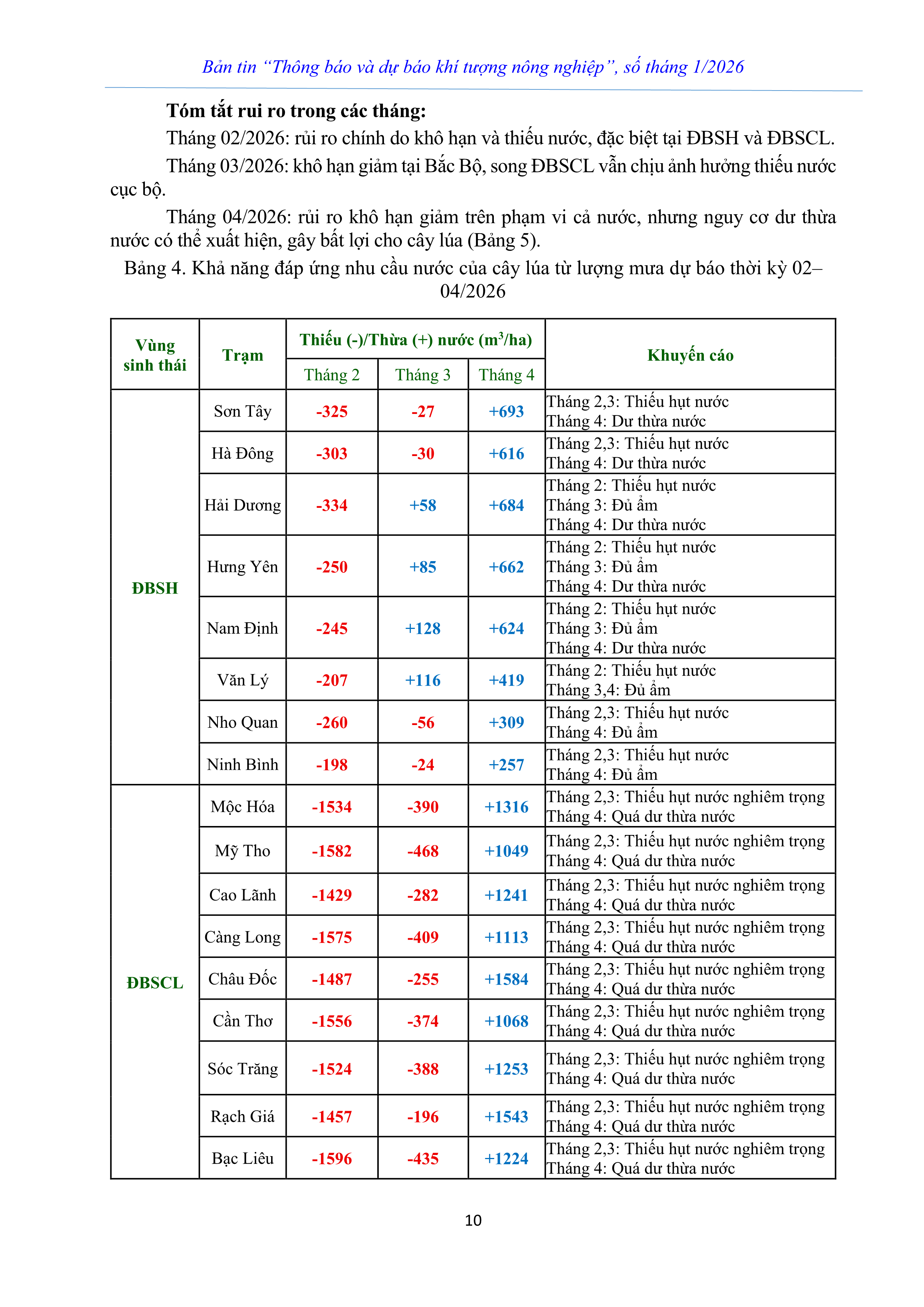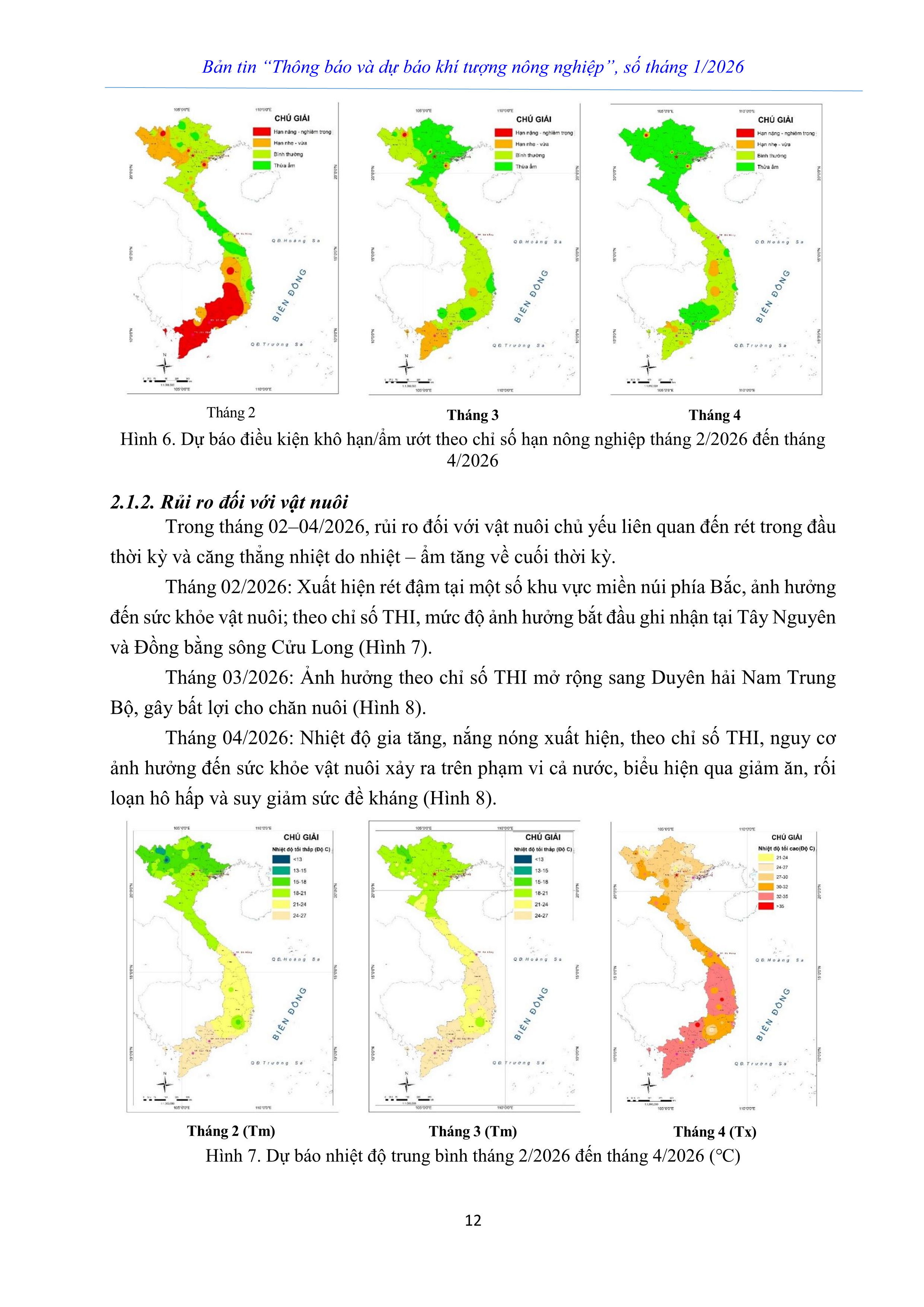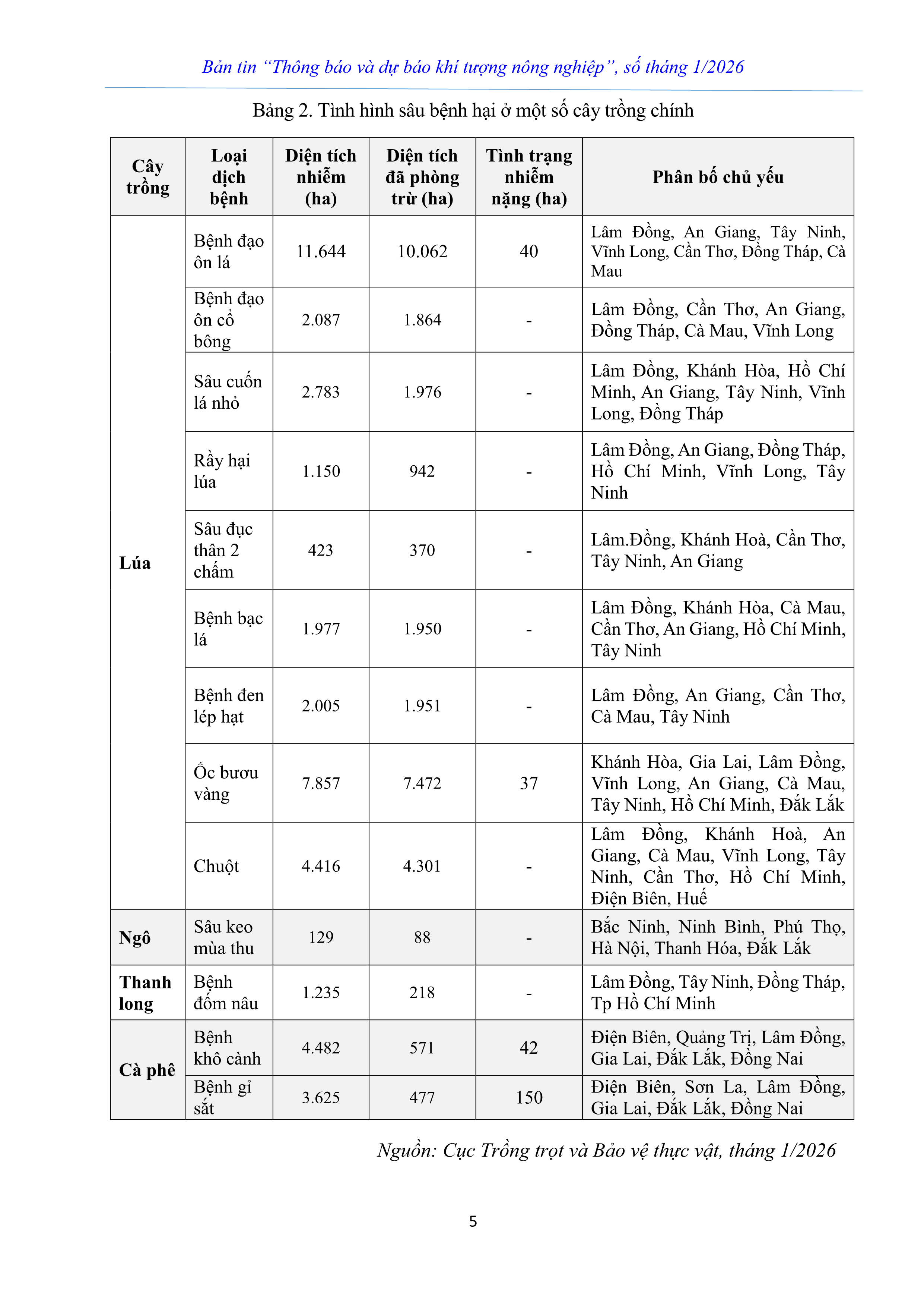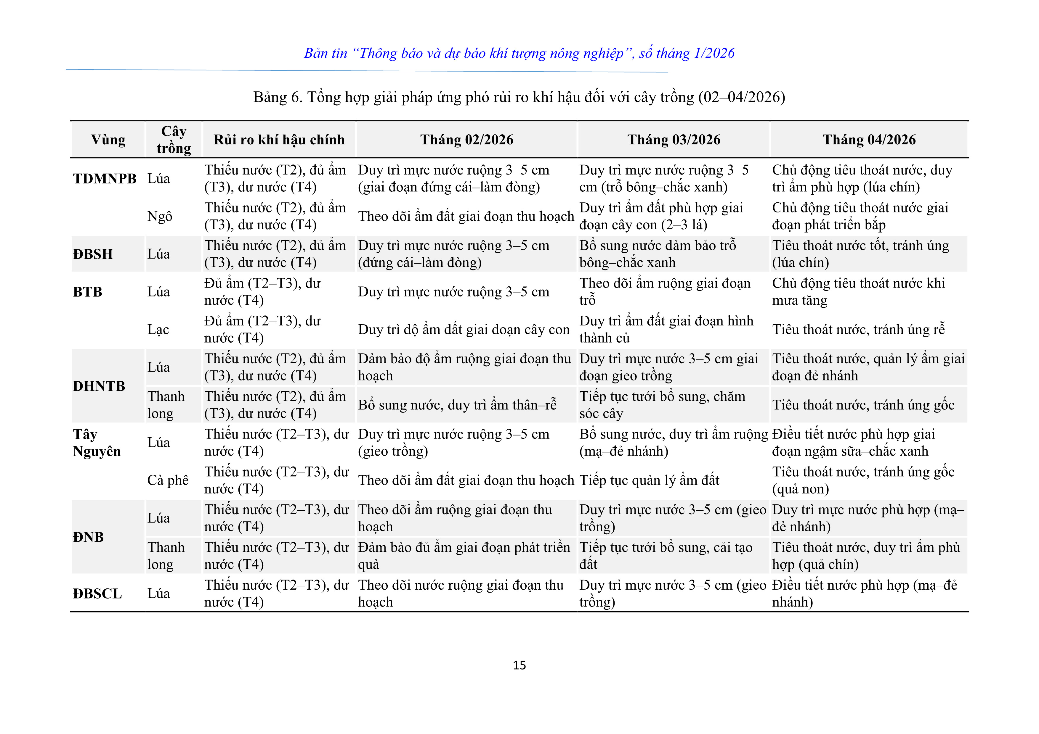 THÔNG BÁO VÀ DỰ BÁO KHÍ TƯỢNG NÔNG NGHIỆP SỐ THÁNG 01 NĂM 2026