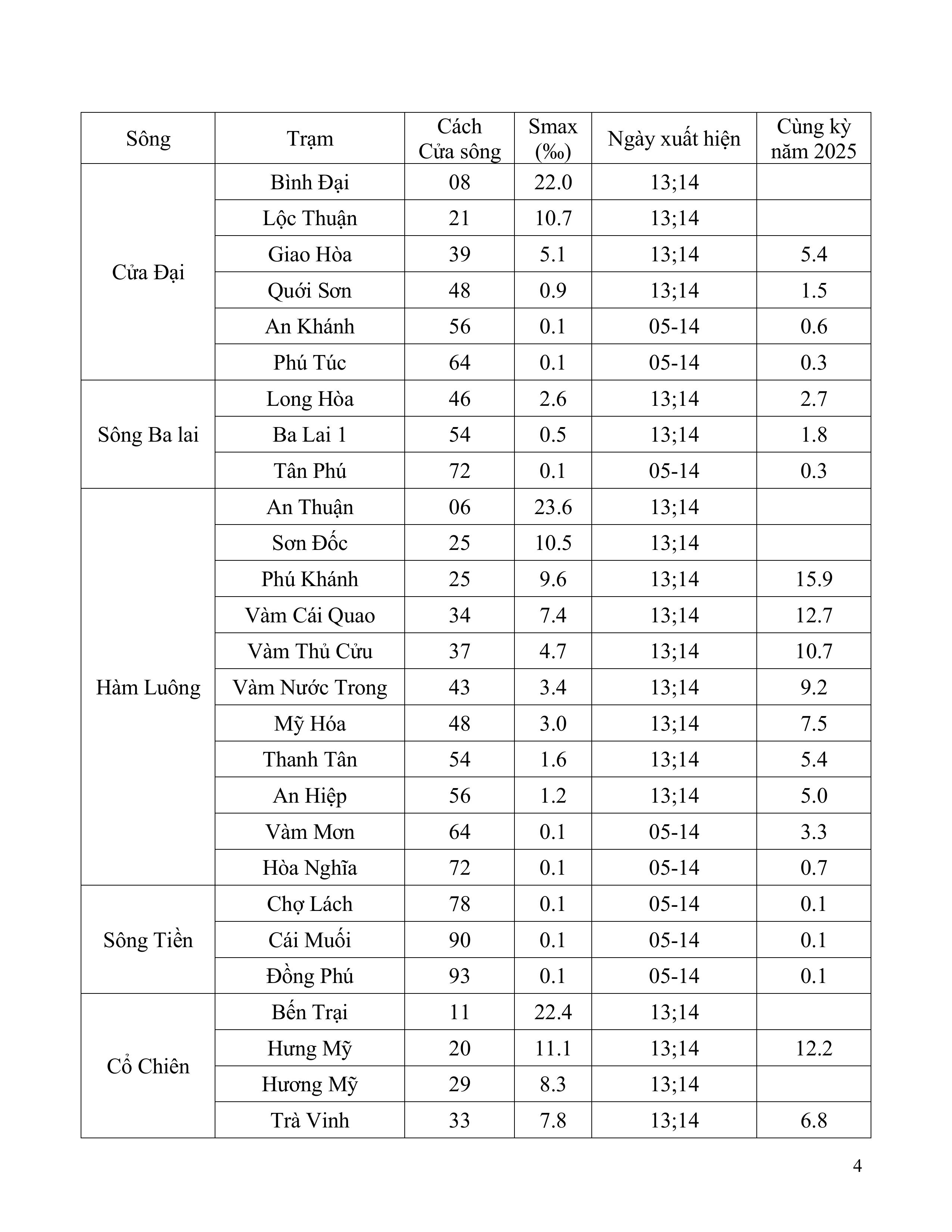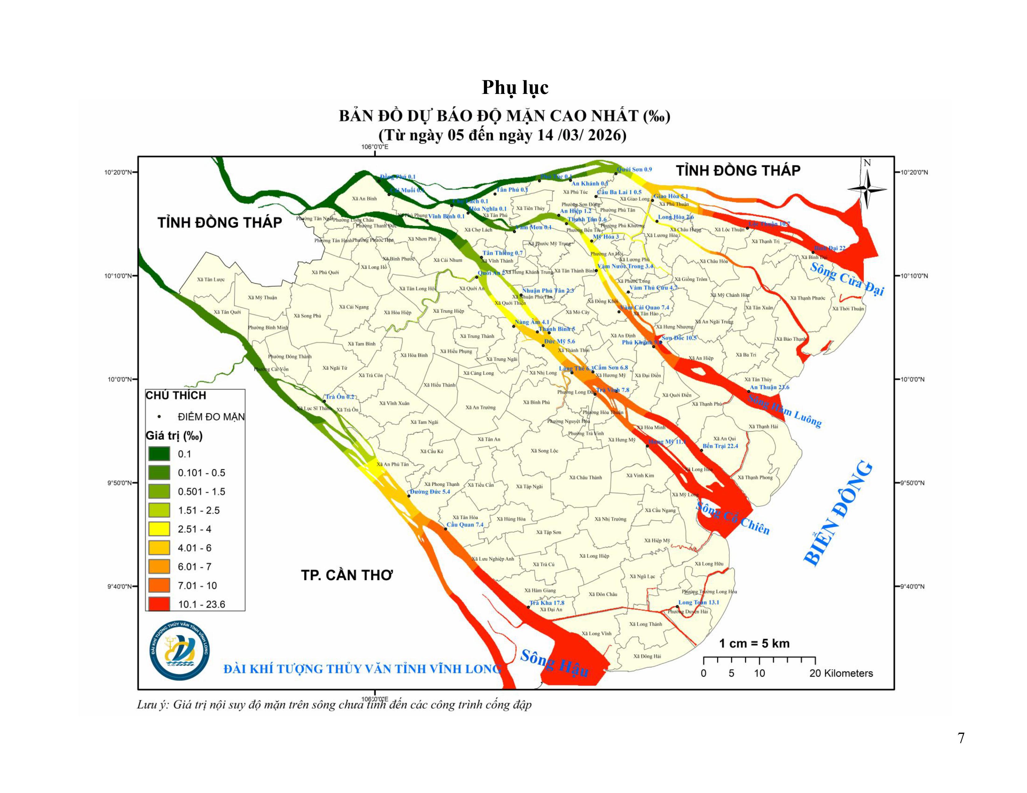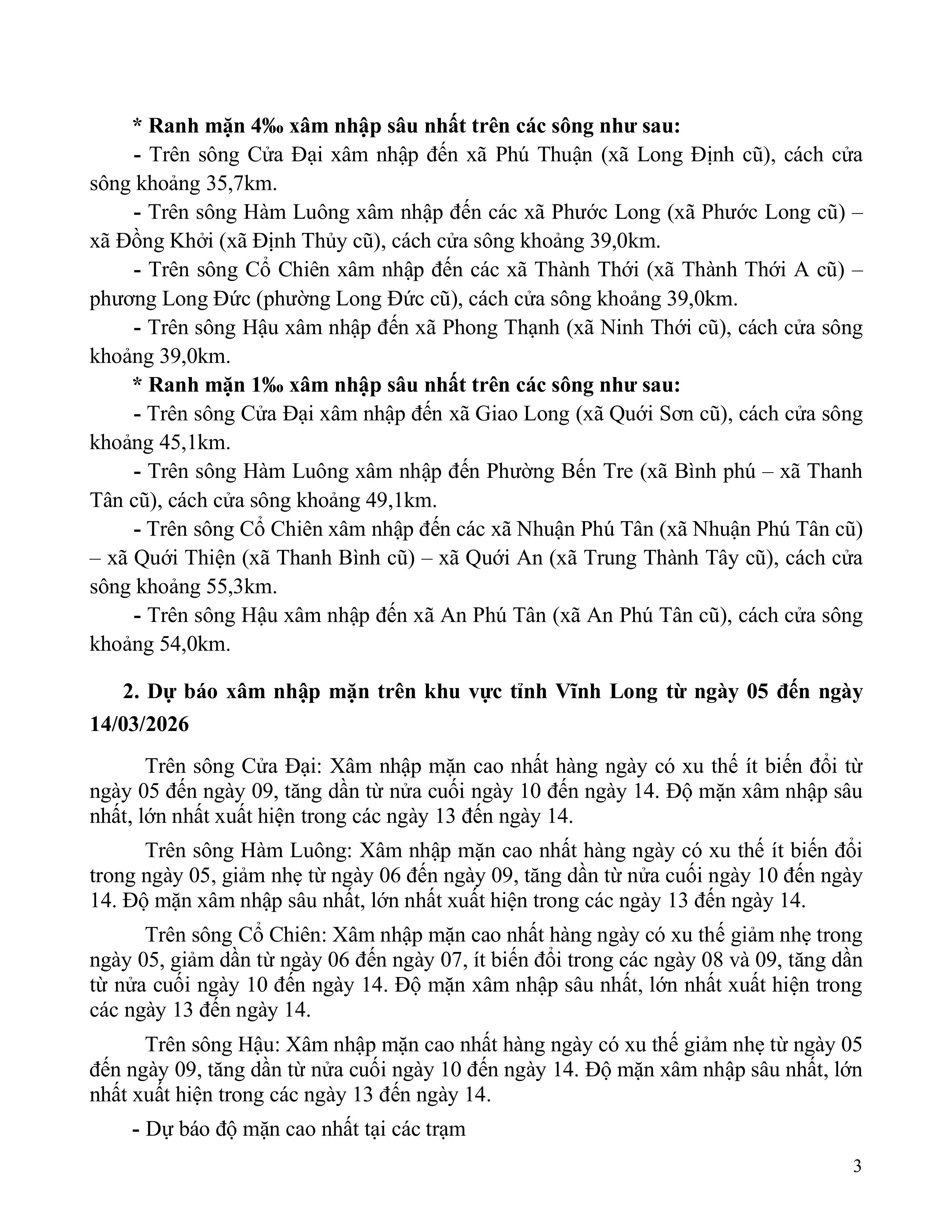 TIN DỰ BÁO XÂM NHẬP MẶN TRÊN TỈNH VĨNH LONG (Từ ngày 05 đến ngày 14/3/2026)