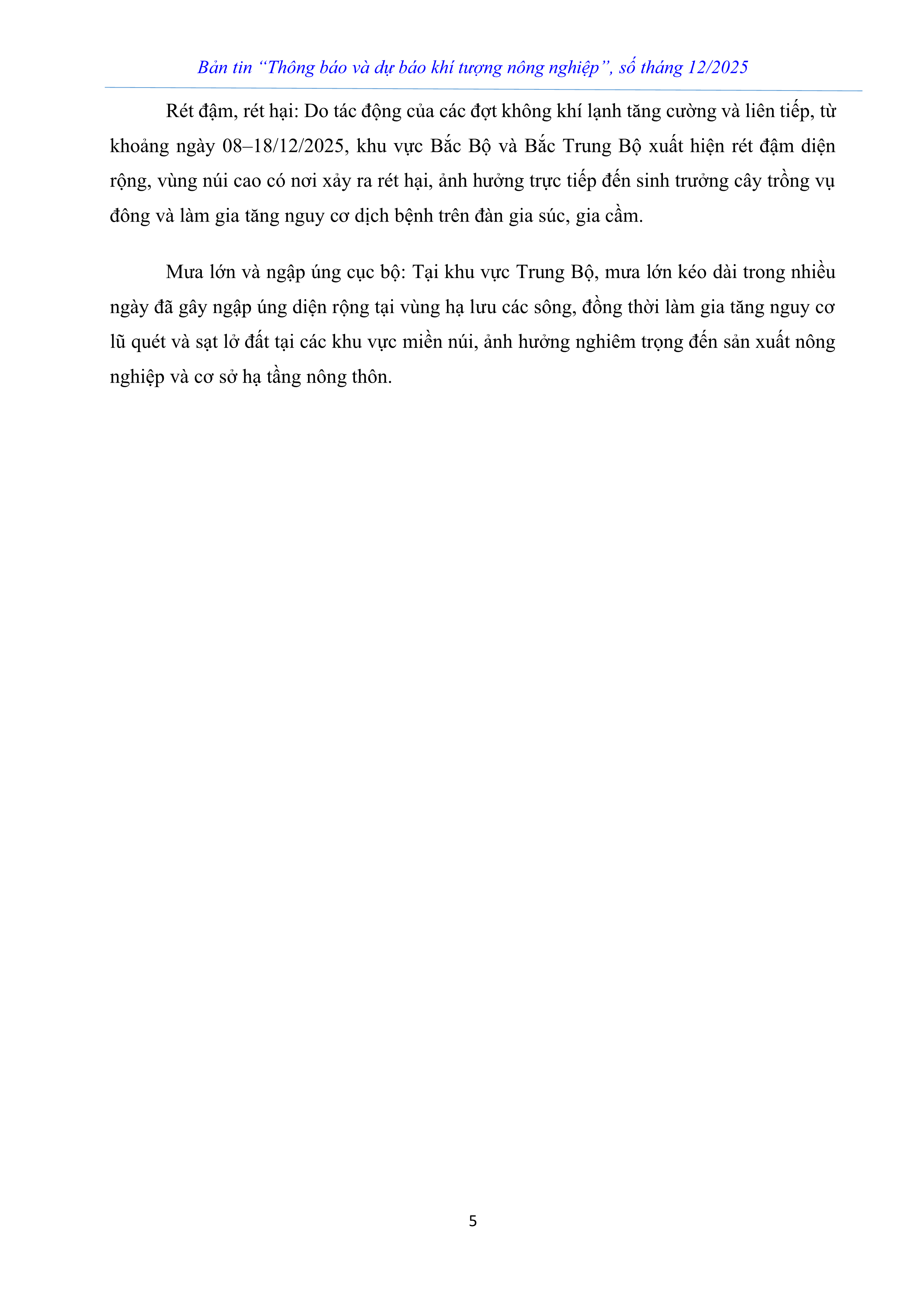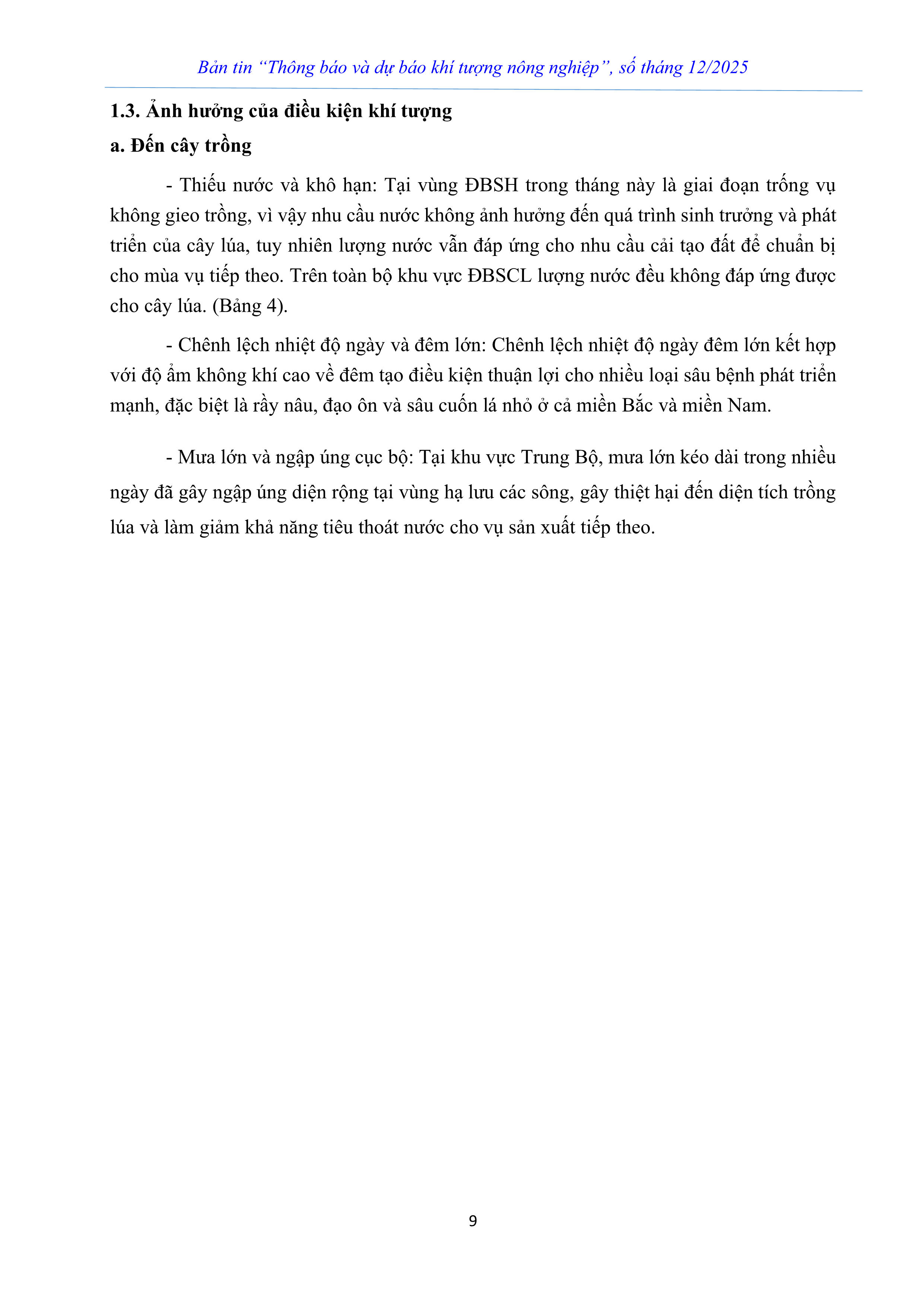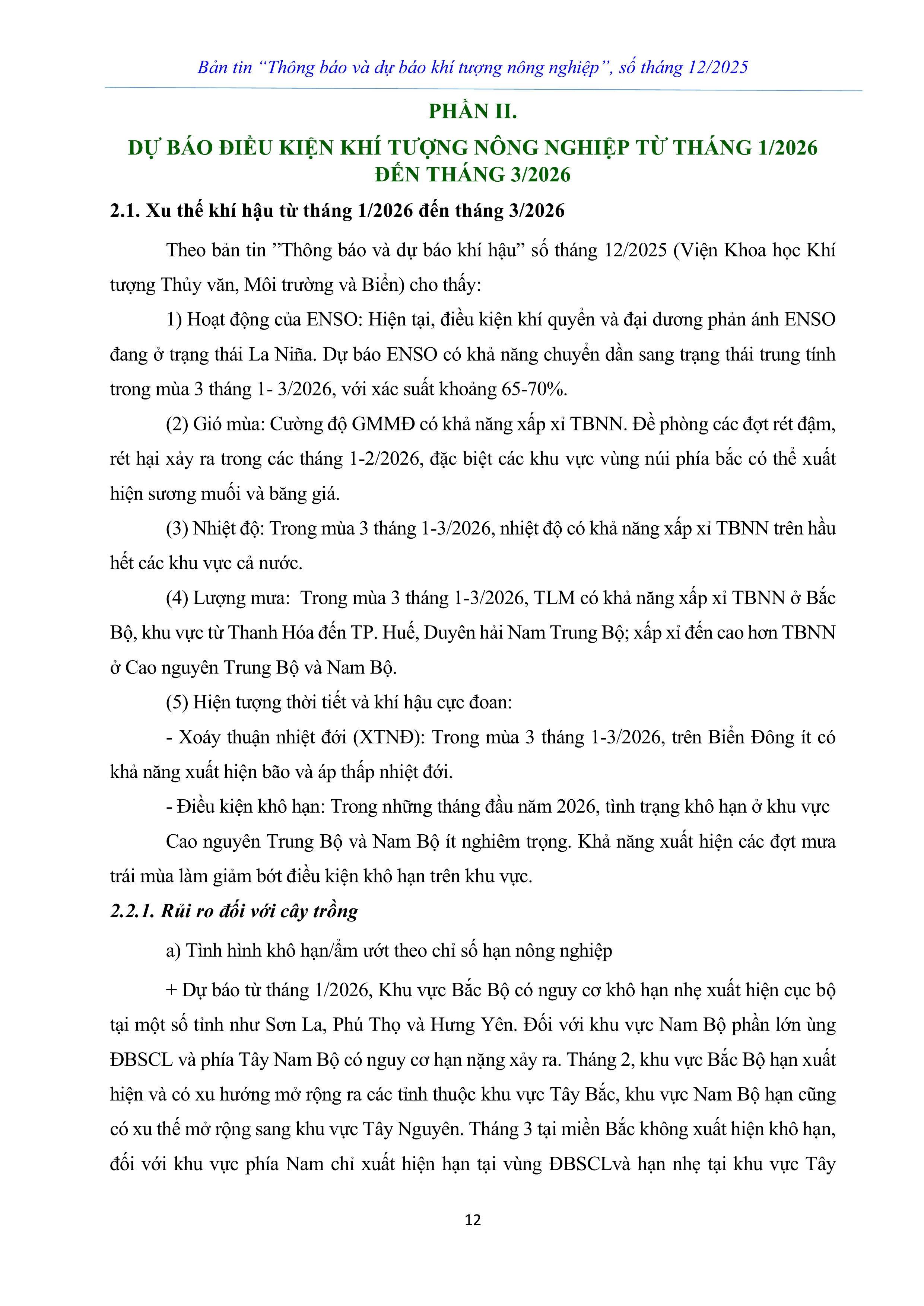 THÔNG BÁO VÀ DỰ BÁO KHÍ TƯỢNG NÔNG NGHIỆP SỐ THÁNG 12 NĂM 2025
