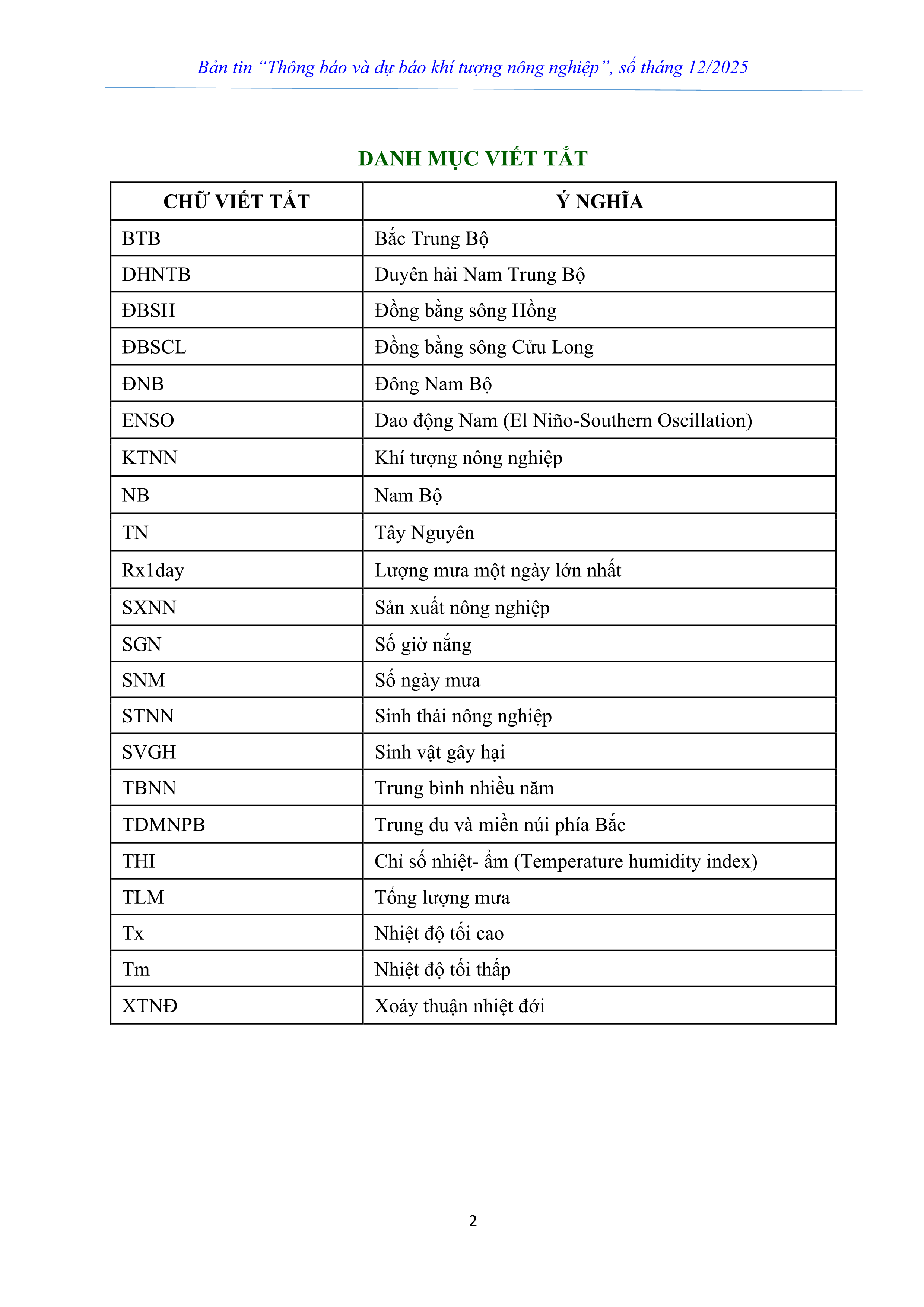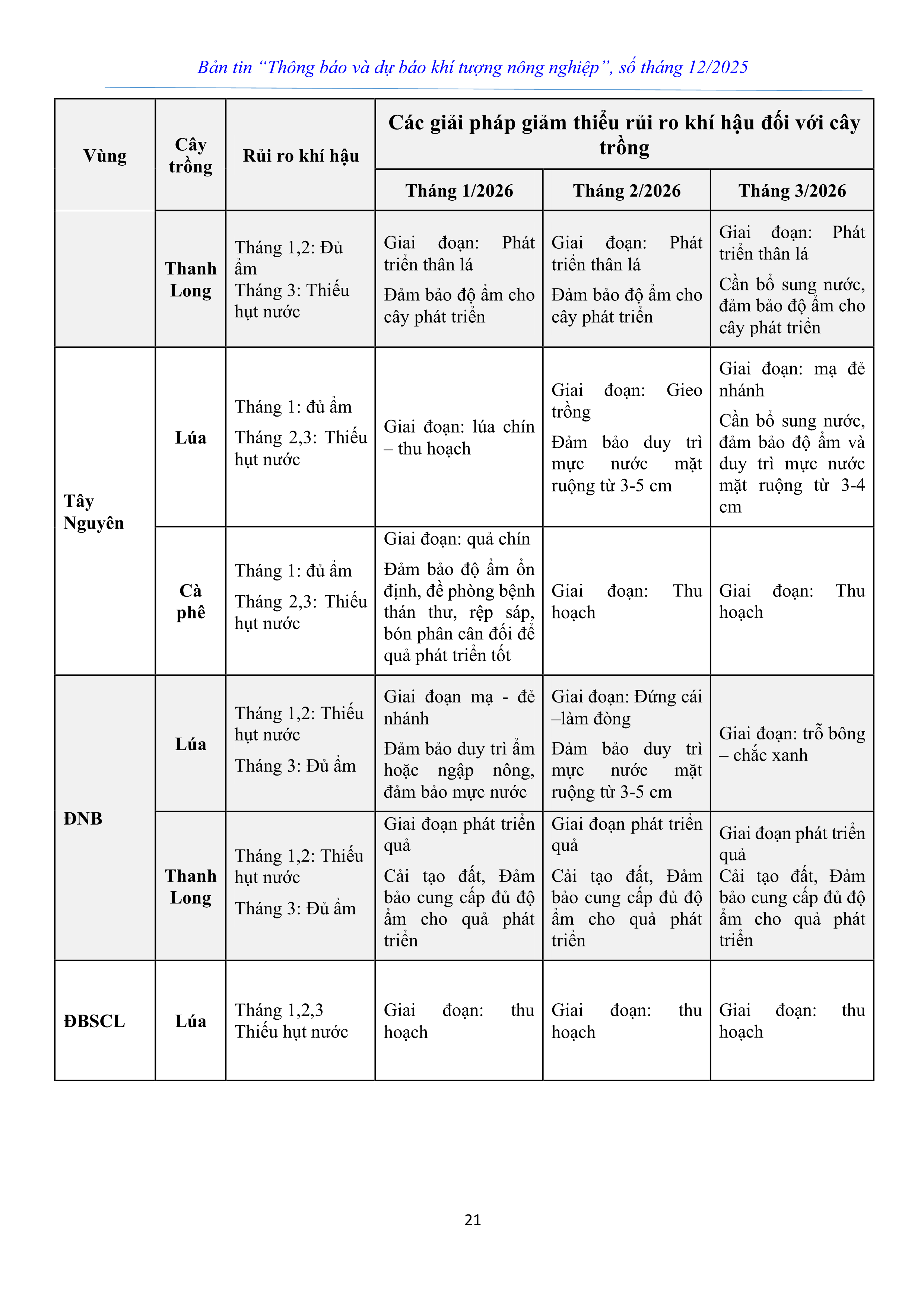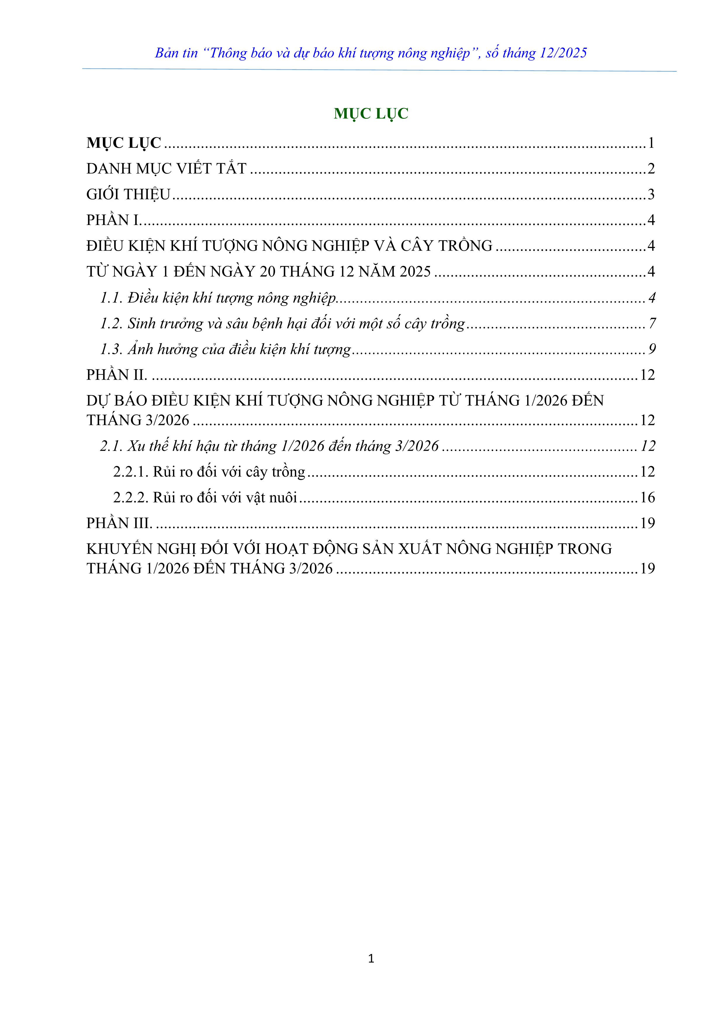 THÔNG BÁO VÀ DỰ BÁO KHÍ TƯỢNG NÔNG NGHIỆP SỐ THÁNG 12 NĂM 2025