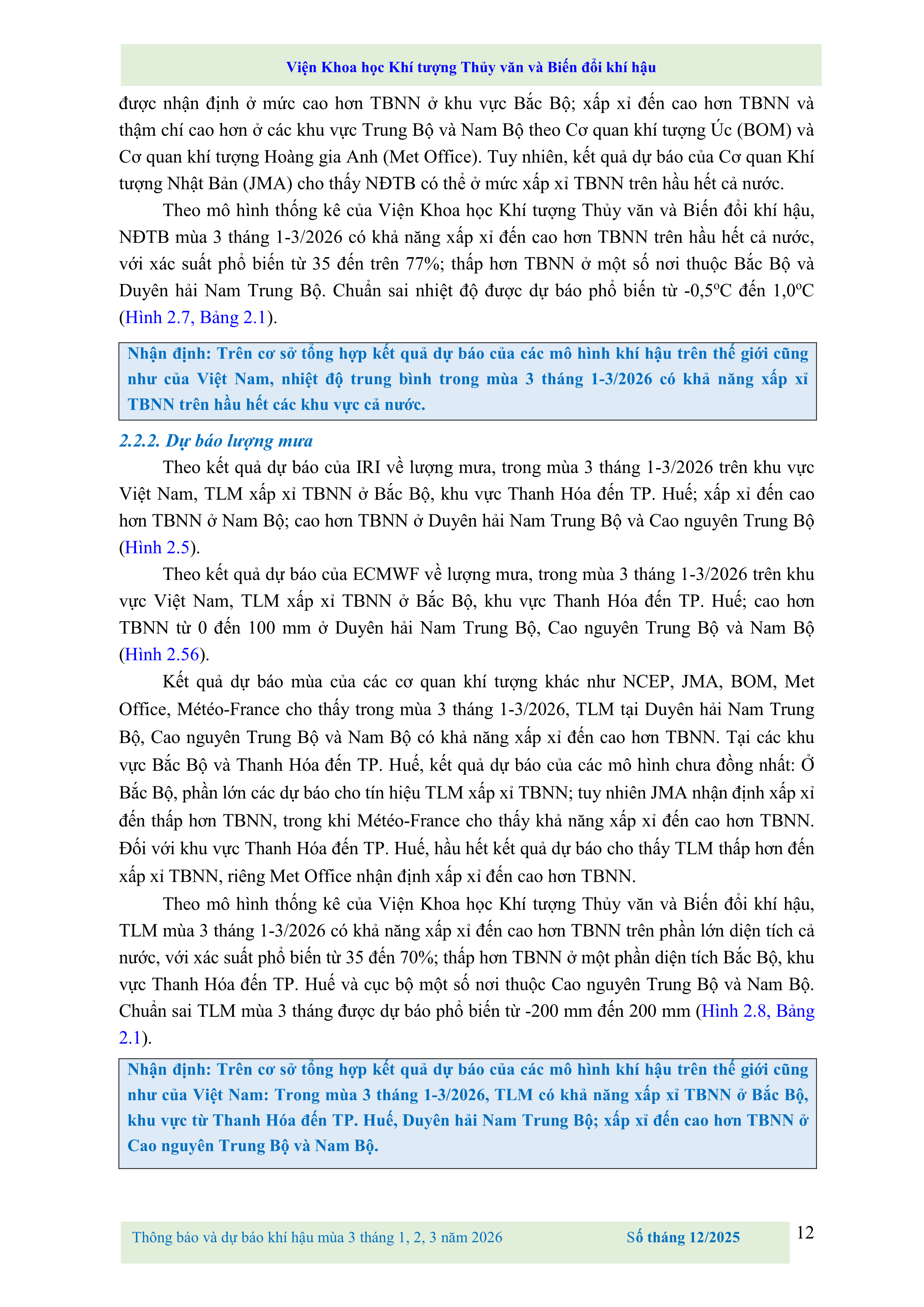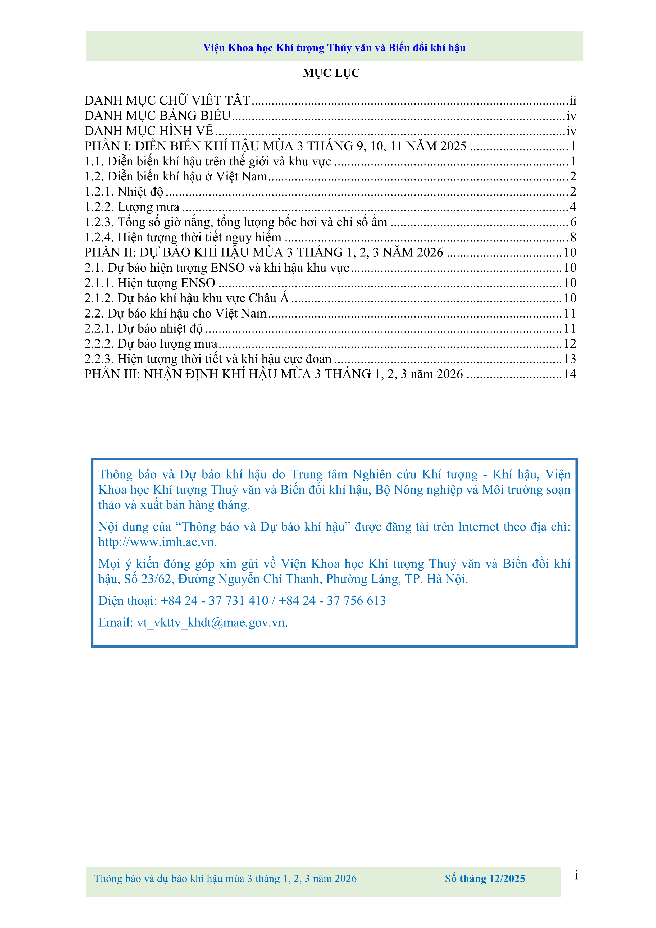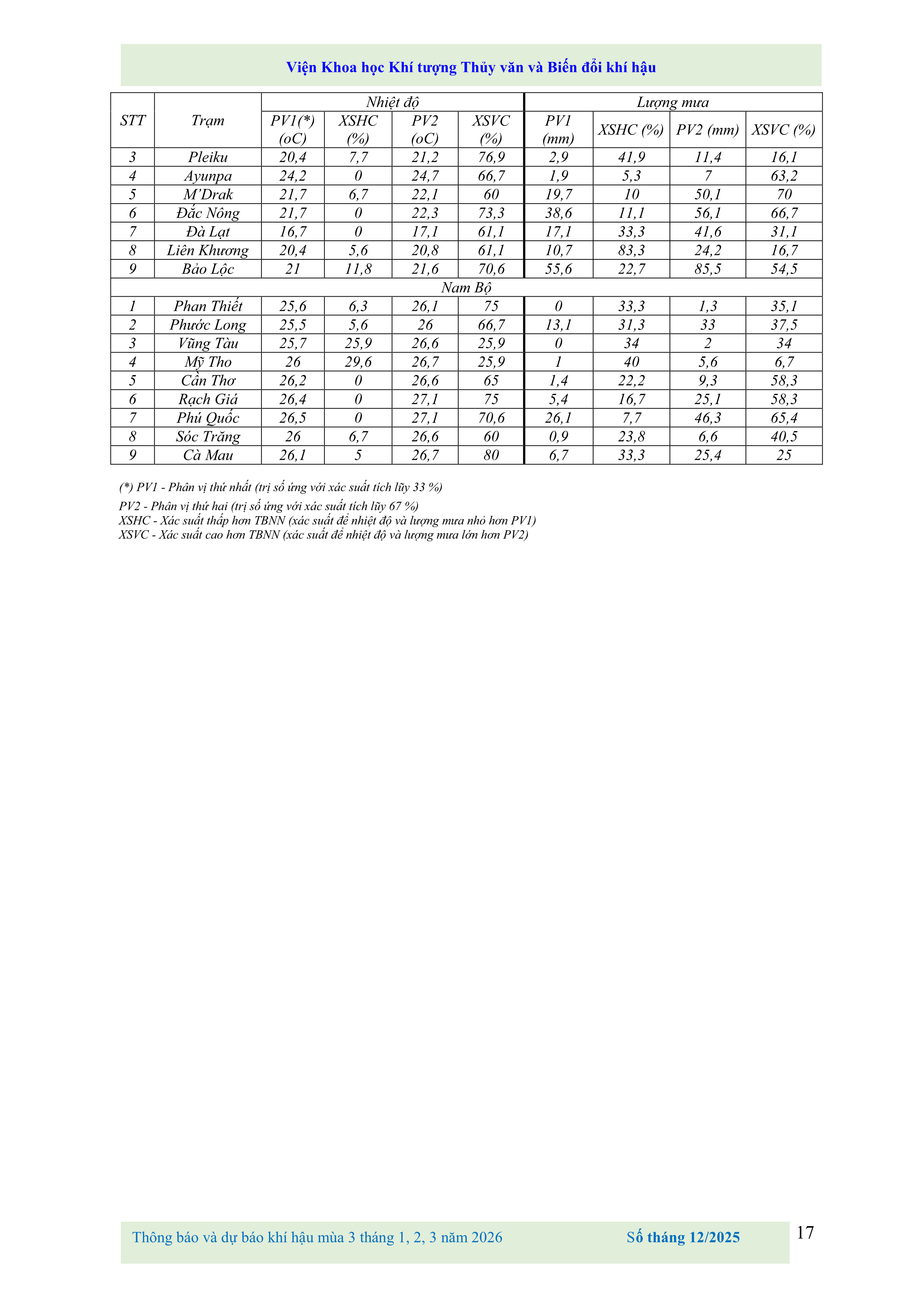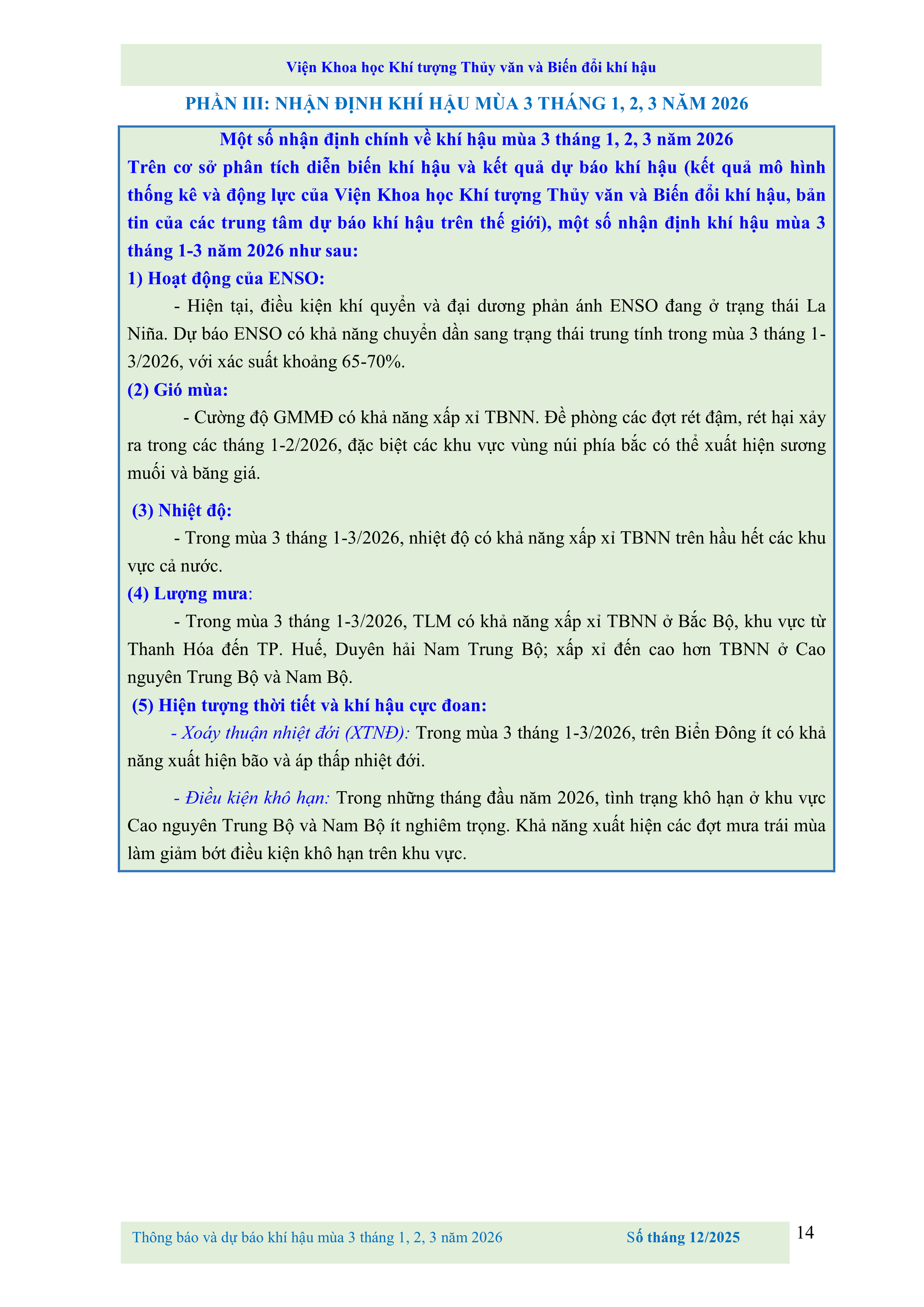 THÔNG BÁO VÀ DỰ BÁO KHÍ HẬU MÙA 3 THÁNG 1, 2, 3 NĂM 2026
