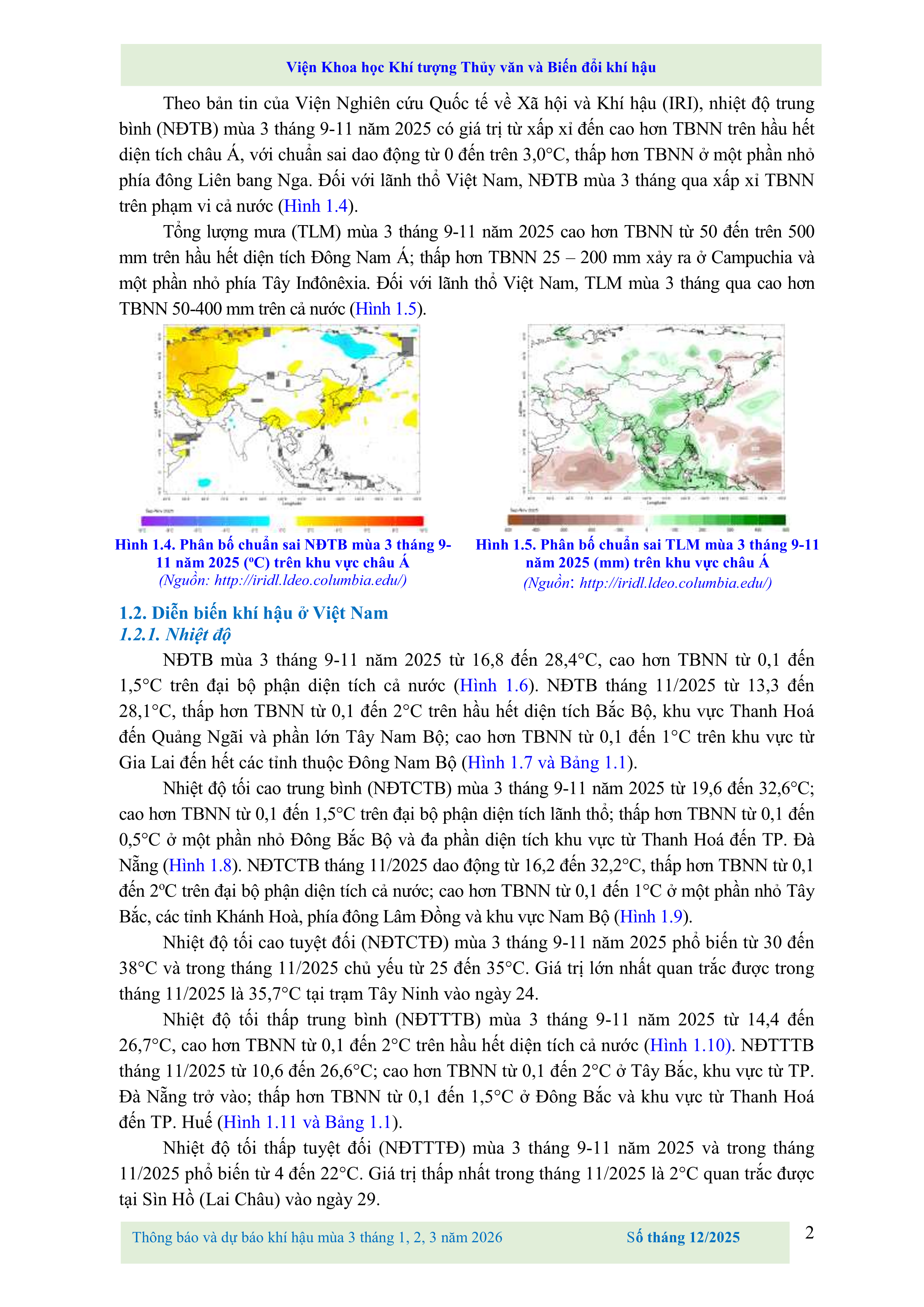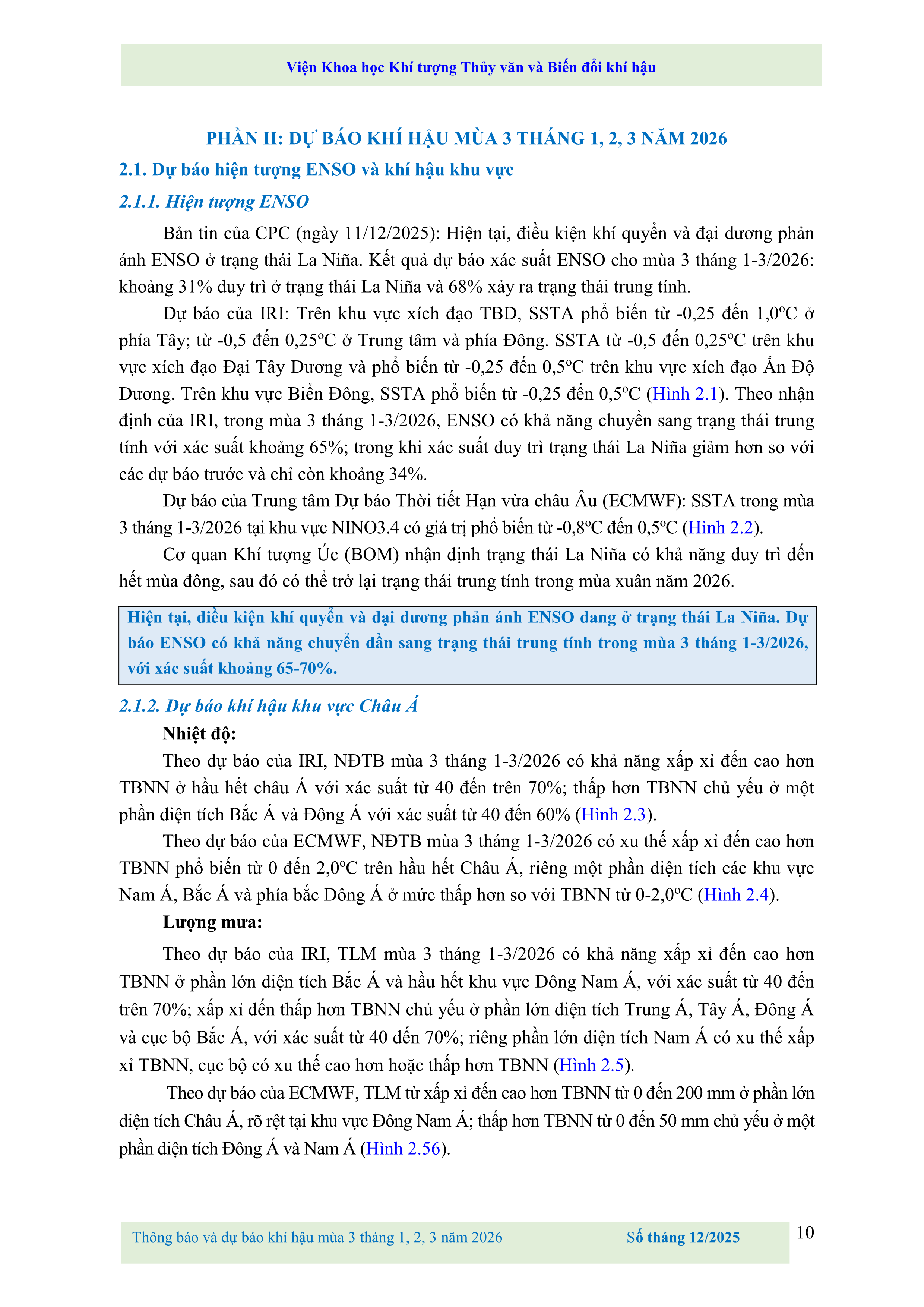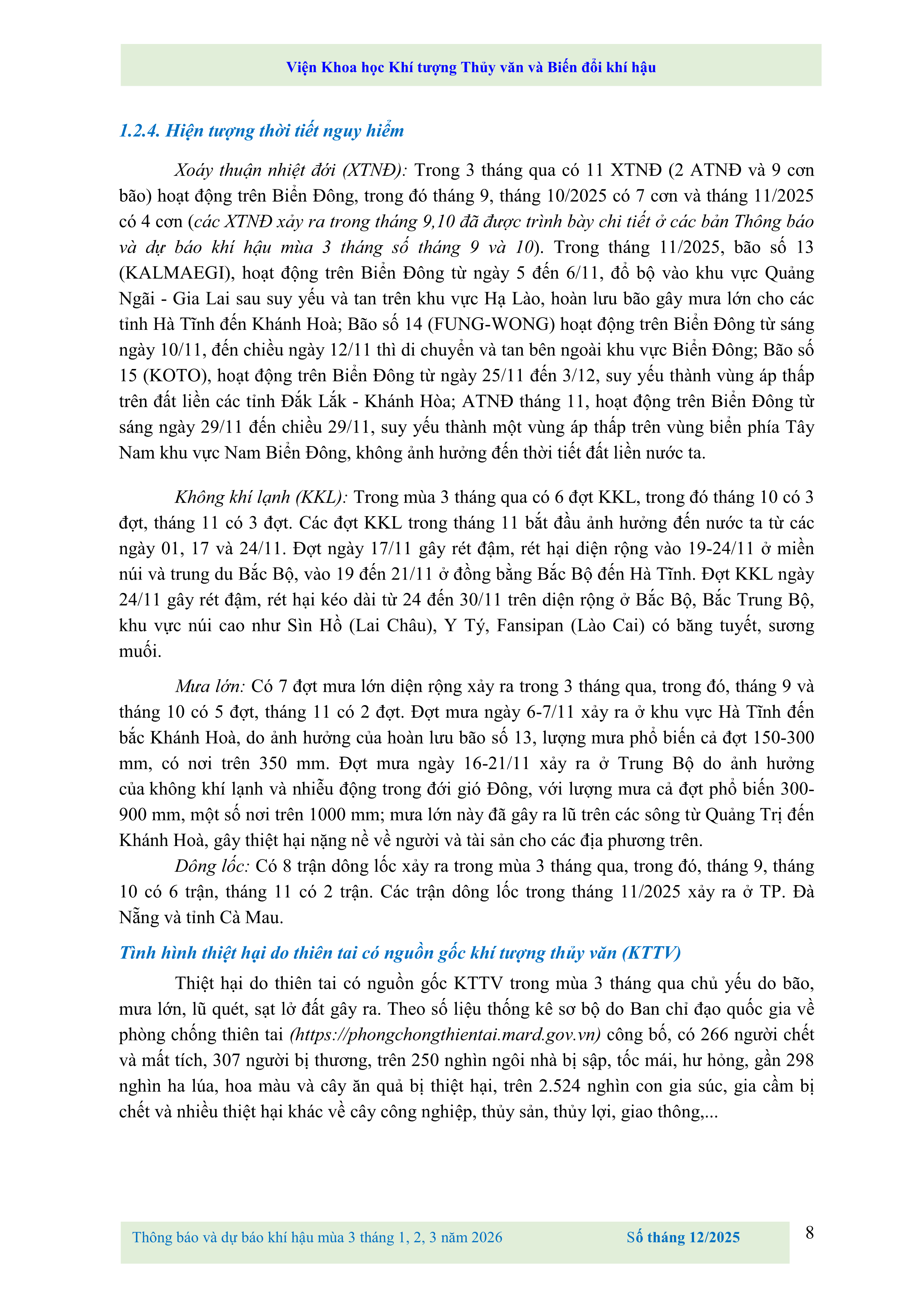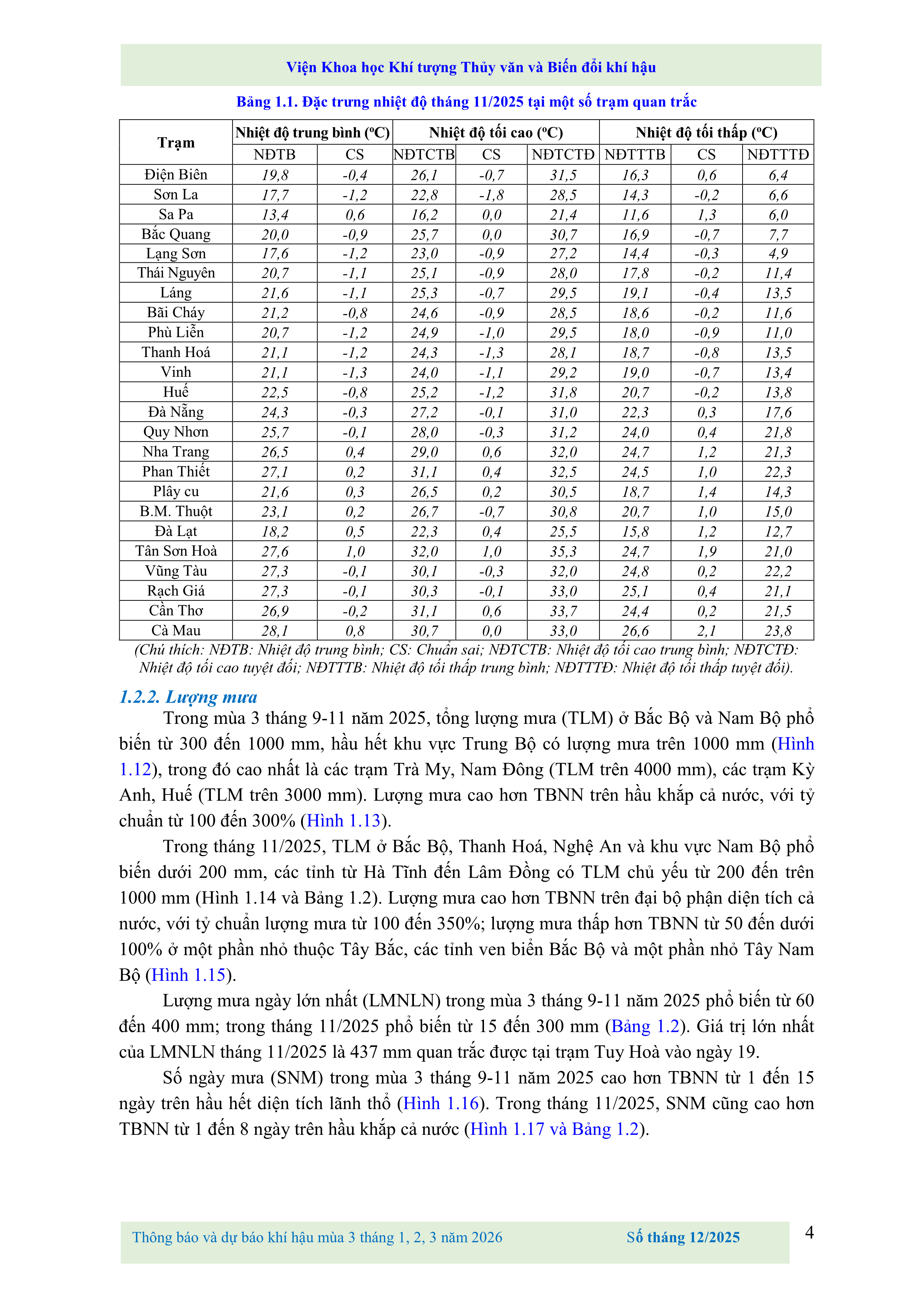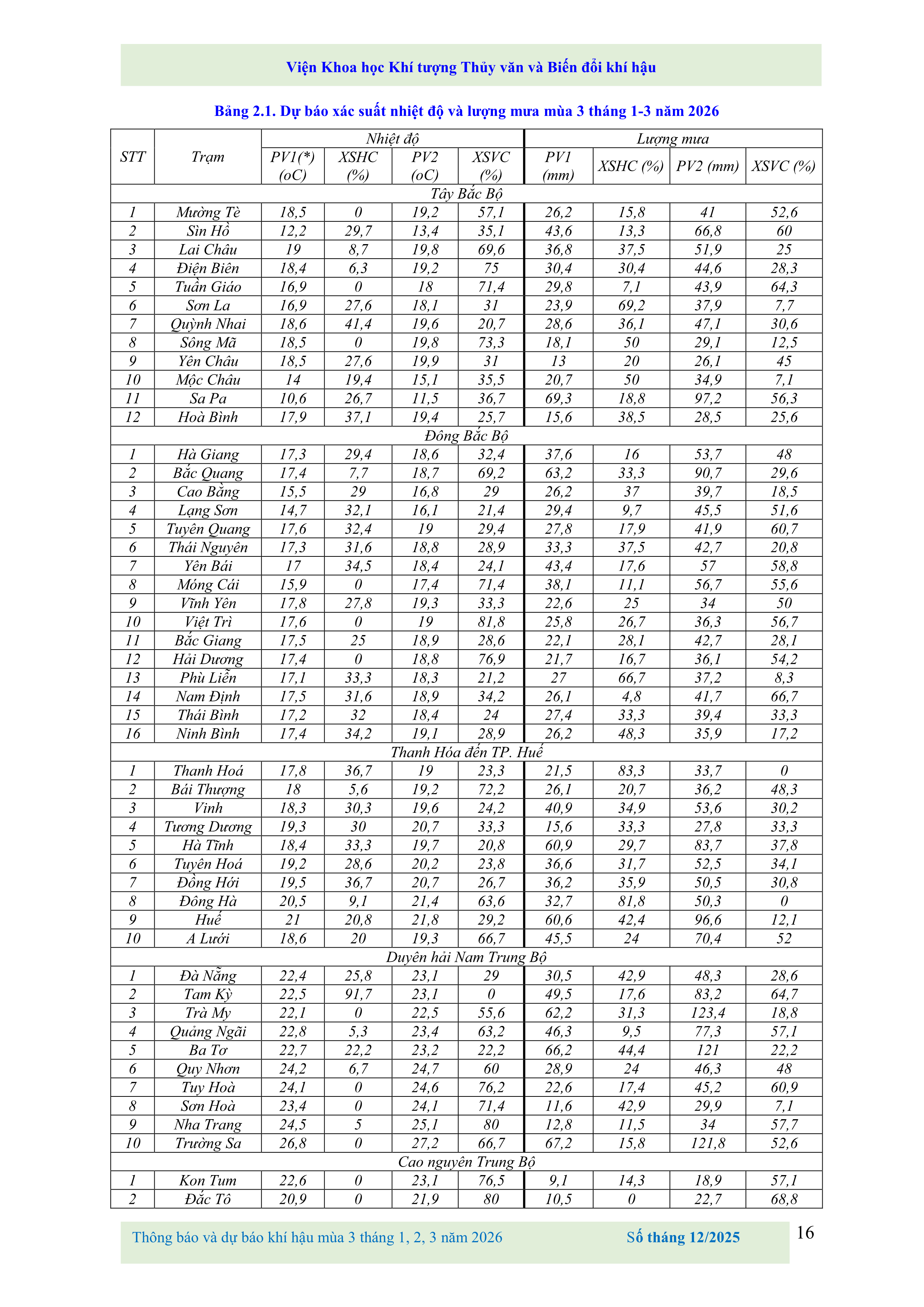 THÔNG BÁO VÀ DỰ BÁO KHÍ HẬU MÙA 3 THÁNG 1, 2, 3 NĂM 2026