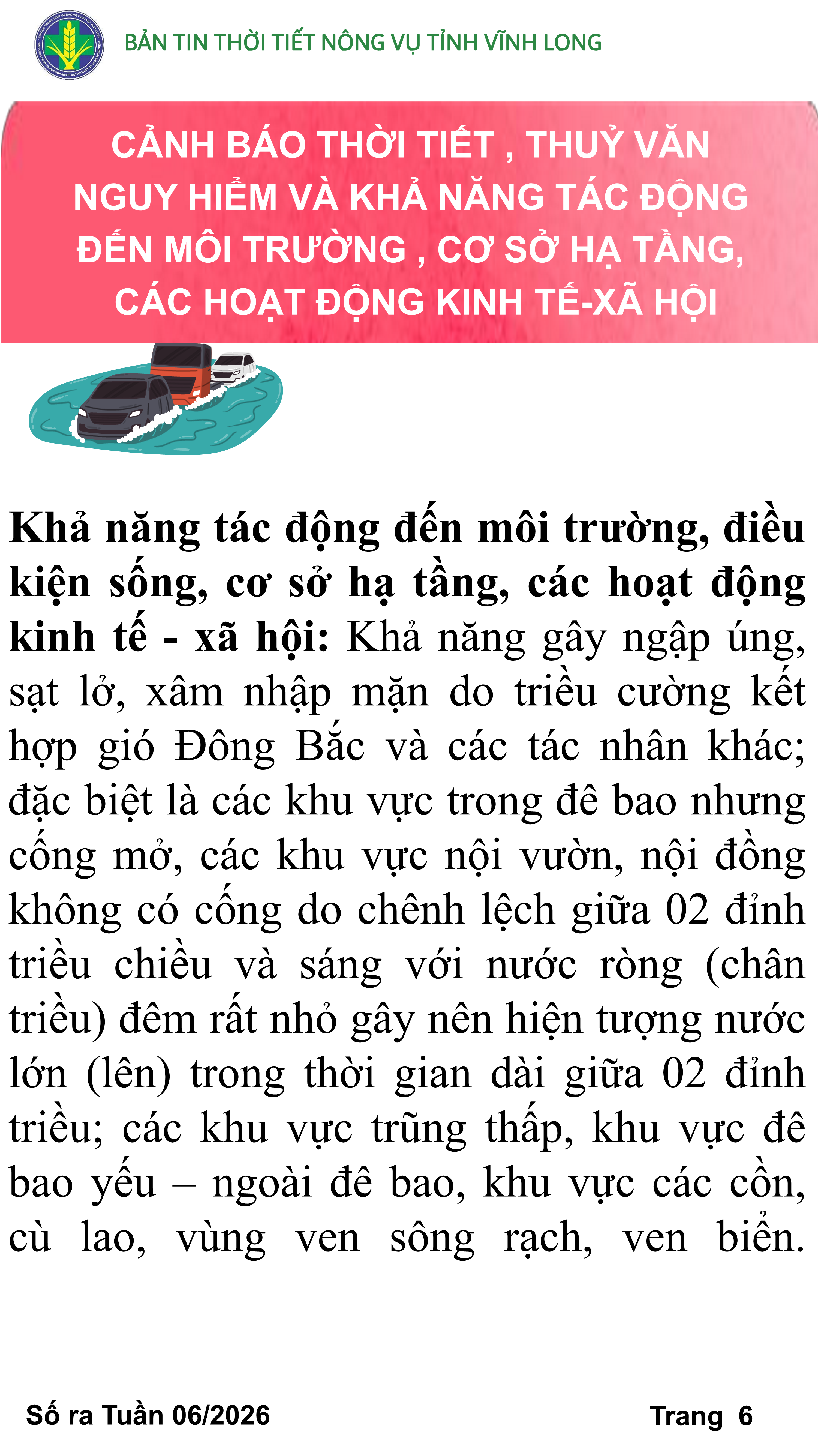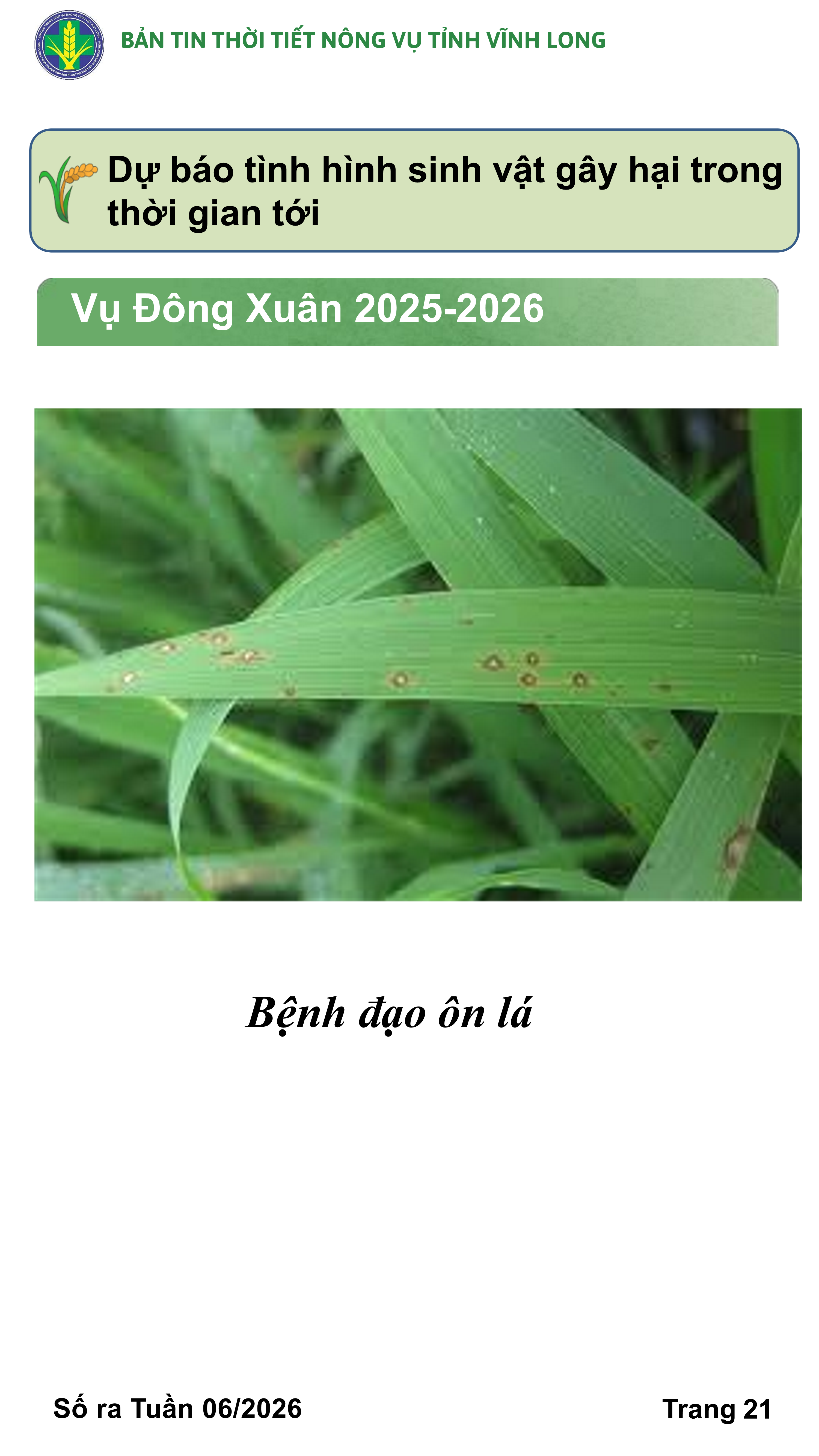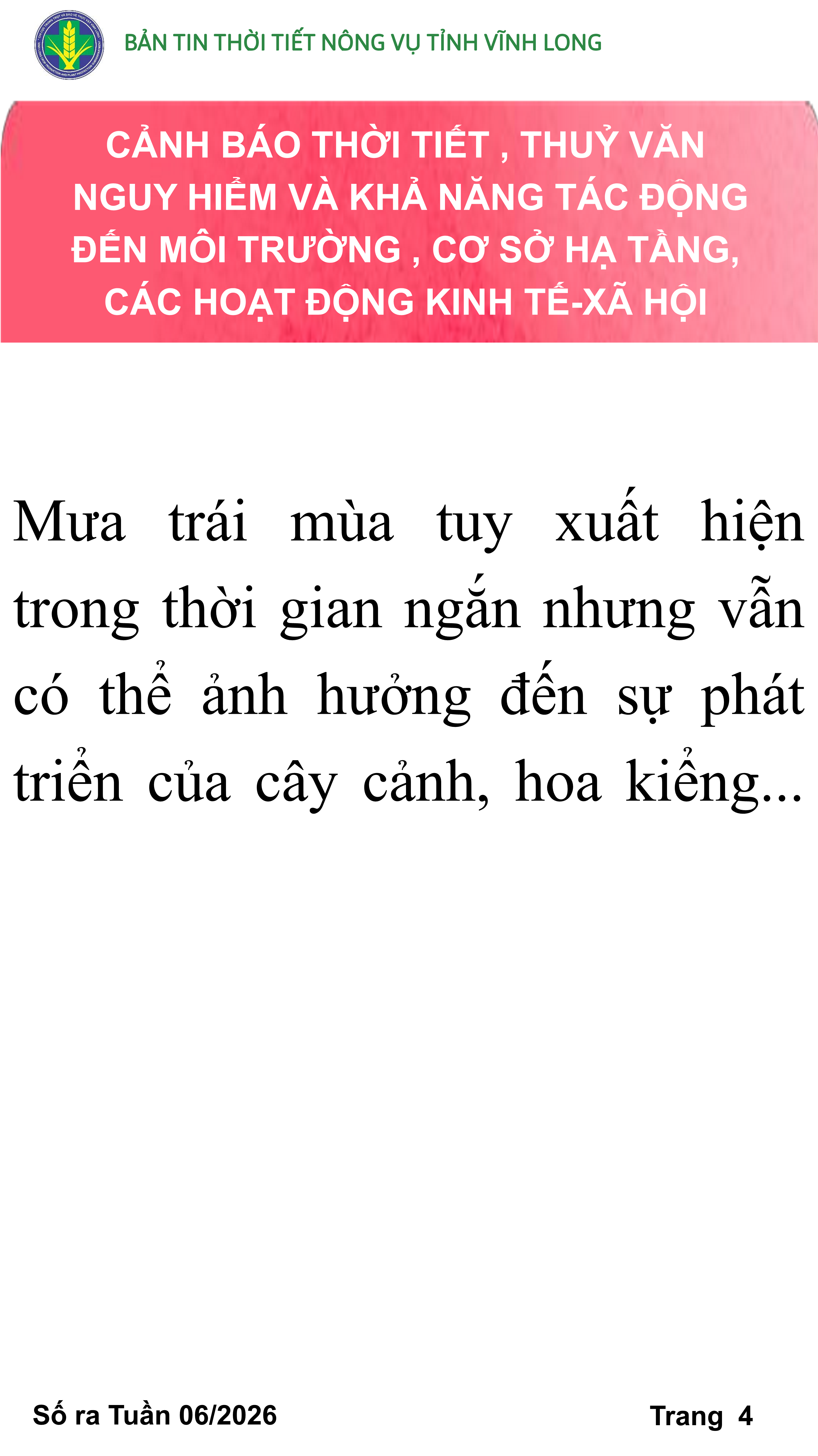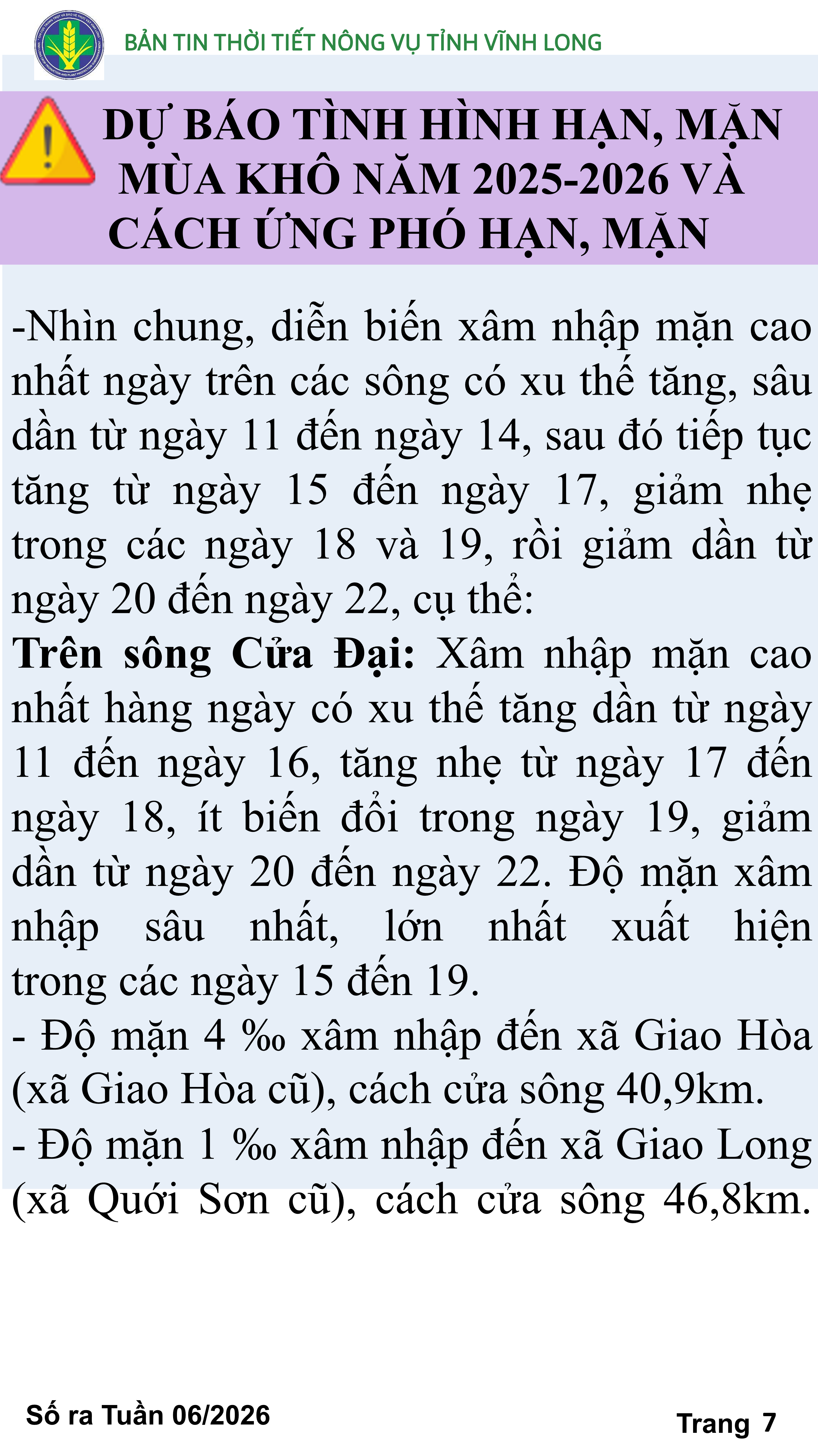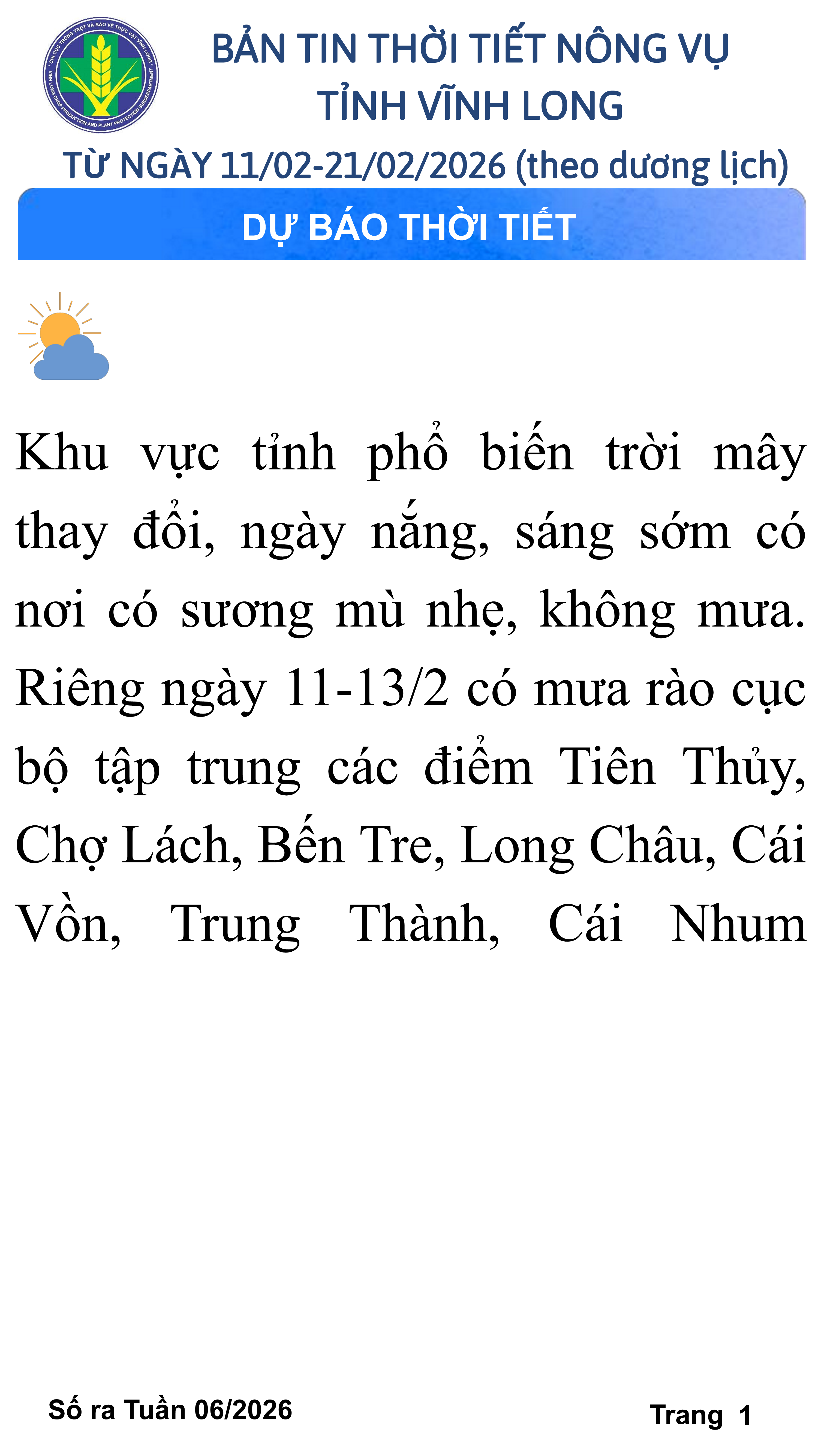 BẢN TIN THỜI TIẾT NÔNG VỤ TỈNH VĨNH LONG TỪ NGÀY 01/02-11/02/2026 (theo dương lịch)