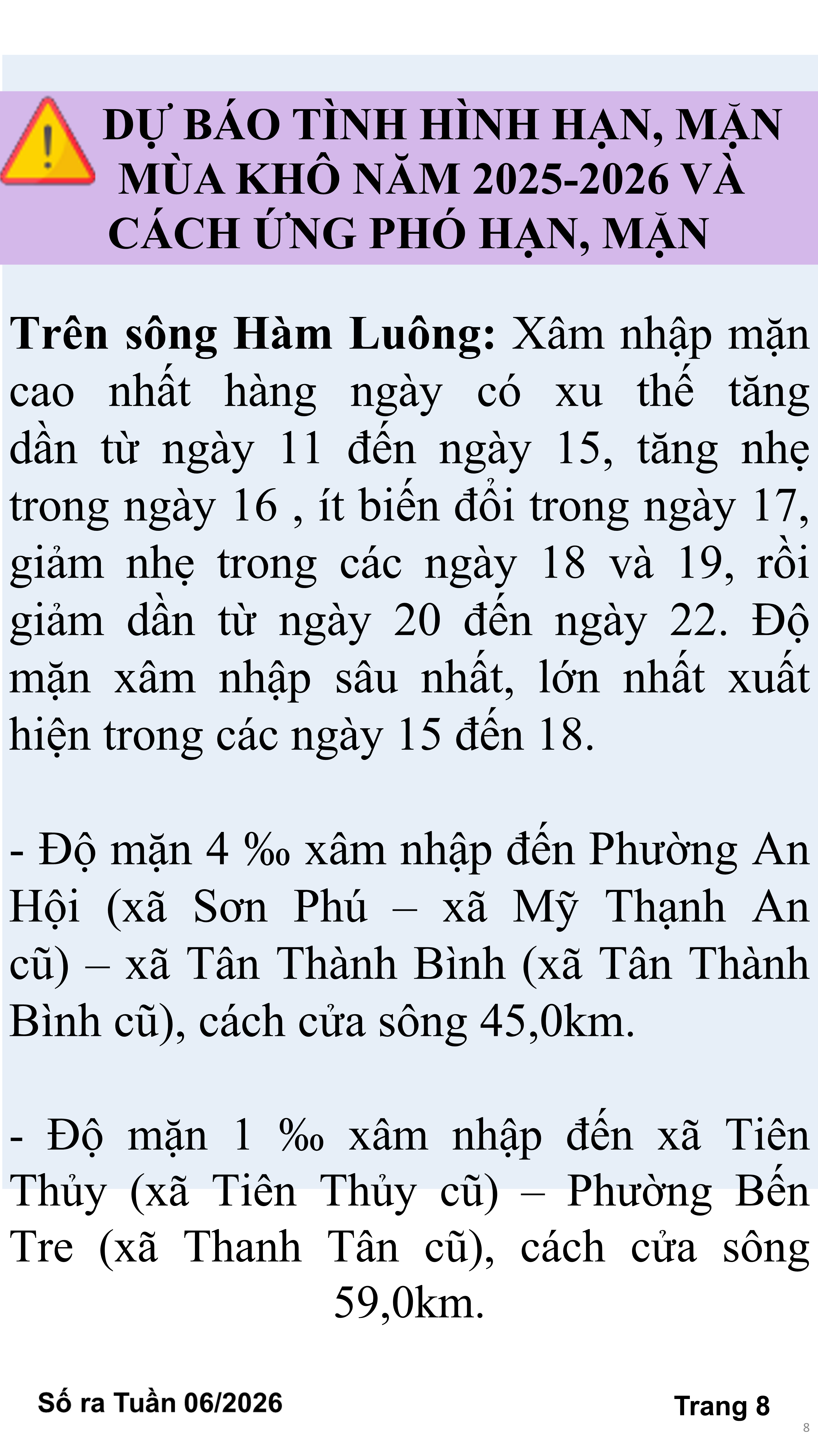 BẢN TIN THỜI TIẾT NÔNG VỤ TỈNH VĨNH LONG TỪ NGÀY 21/02-28/02/2026 (theo dương lịch)