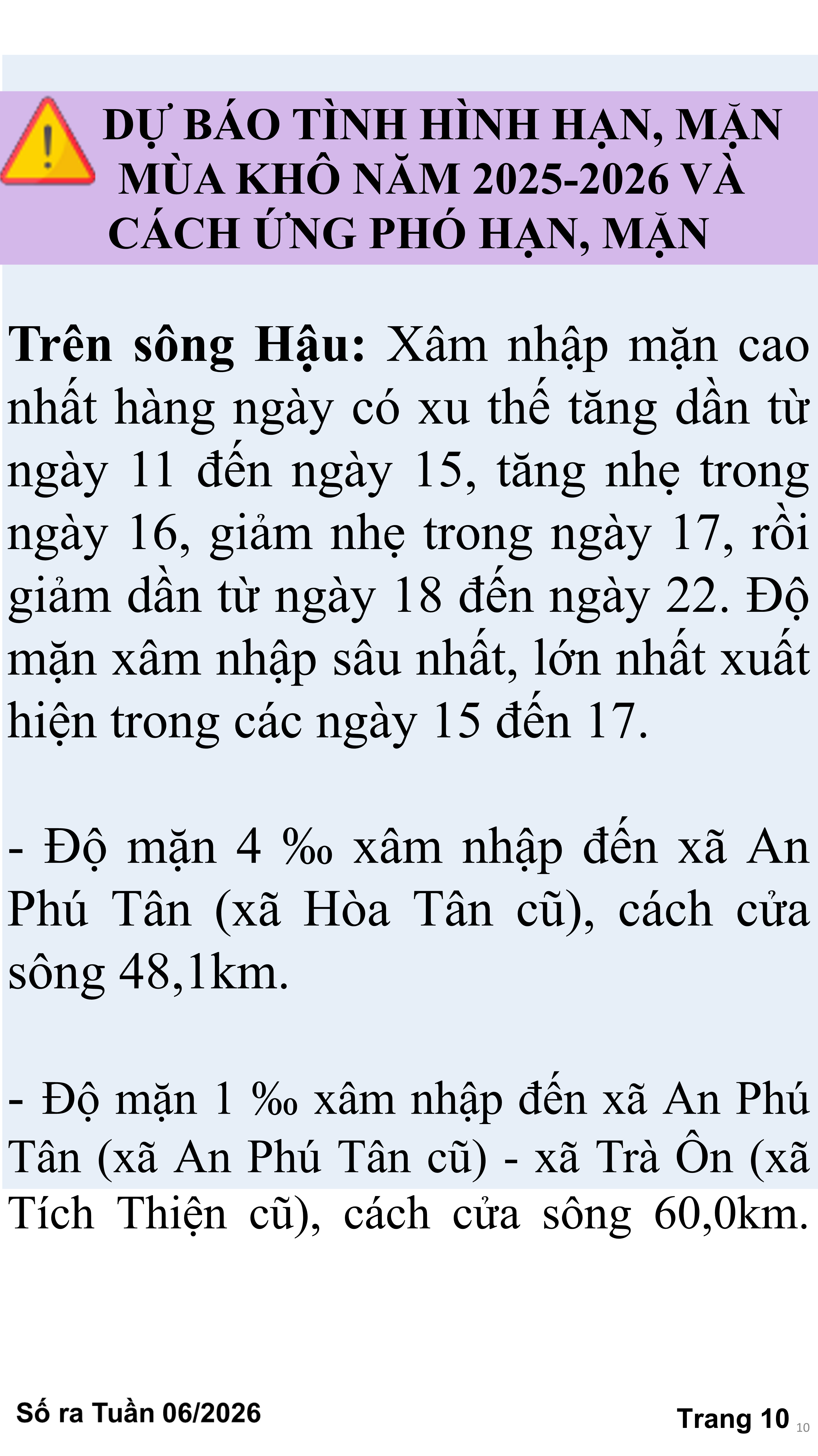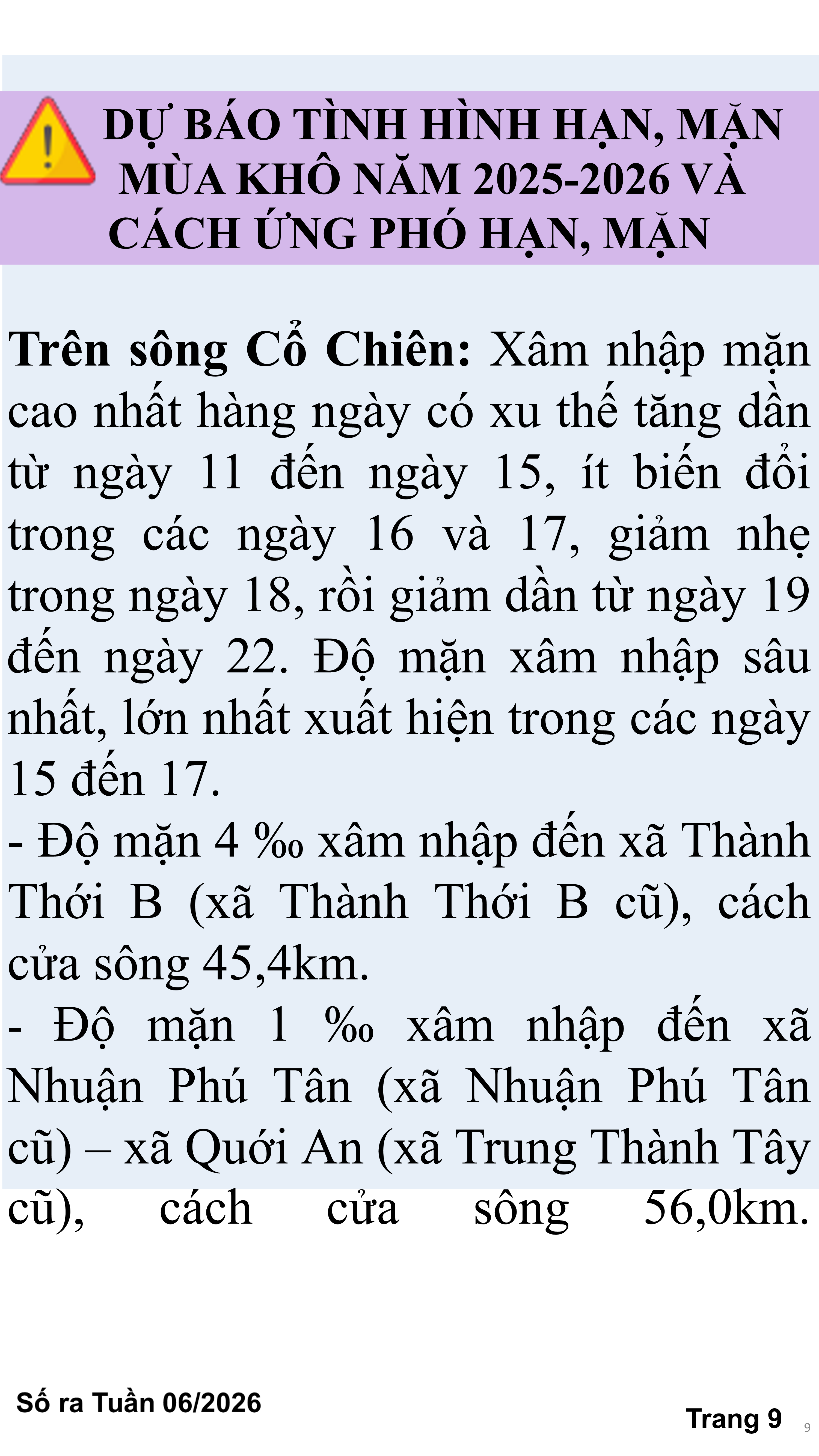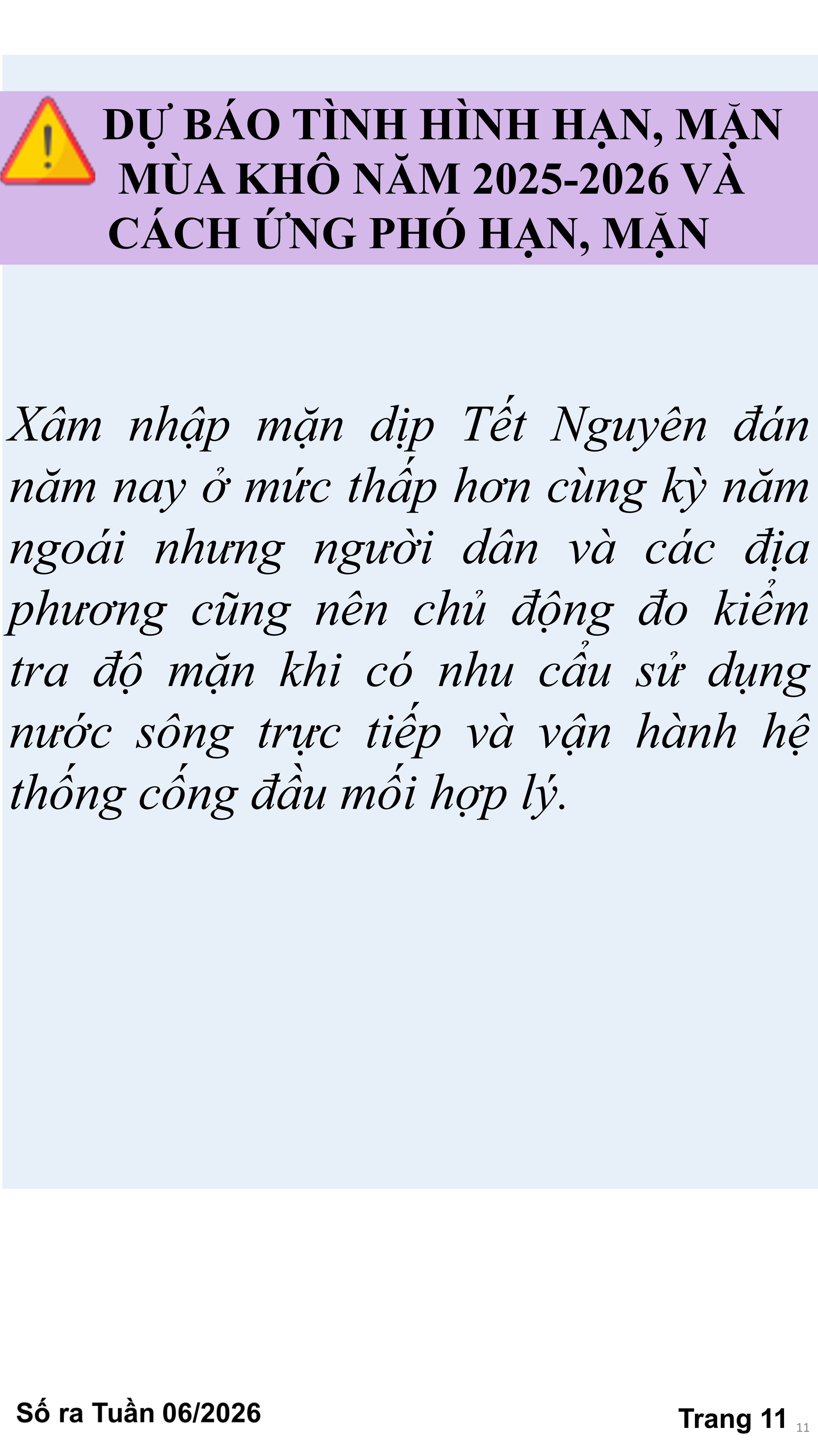 BẢN TIN THỜI TIẾT NÔNG VỤ TỈNH VĨNH LONG TỪ NGÀY 11/02-21/02/2026 (theo dương lịch)
