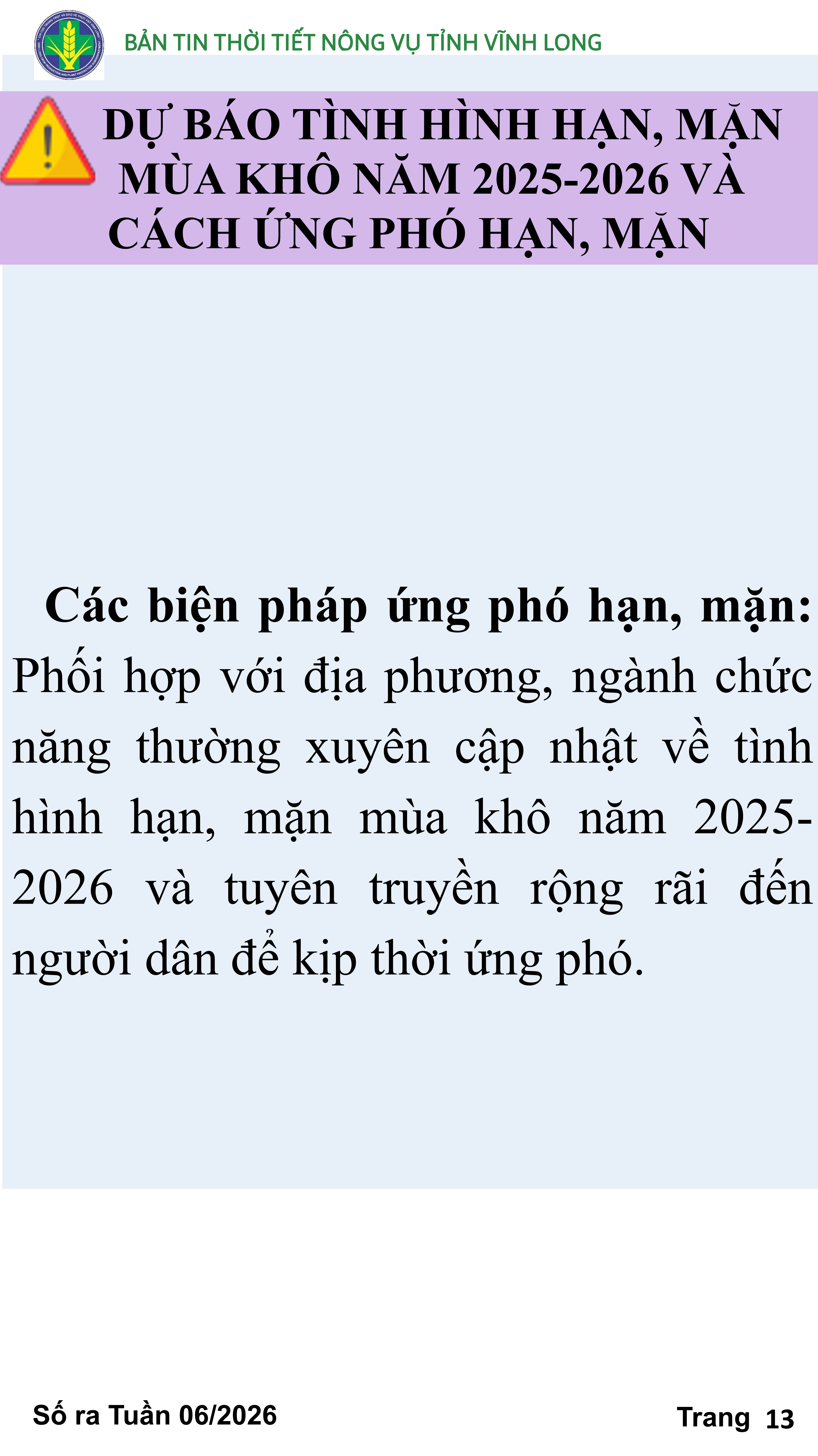 BẢN TIN THỜI TIẾT NÔNG VỤ TỈNH VĨNH LONG TỪ NGÀY 11/01-21/01/2026 (theo dương lịch)