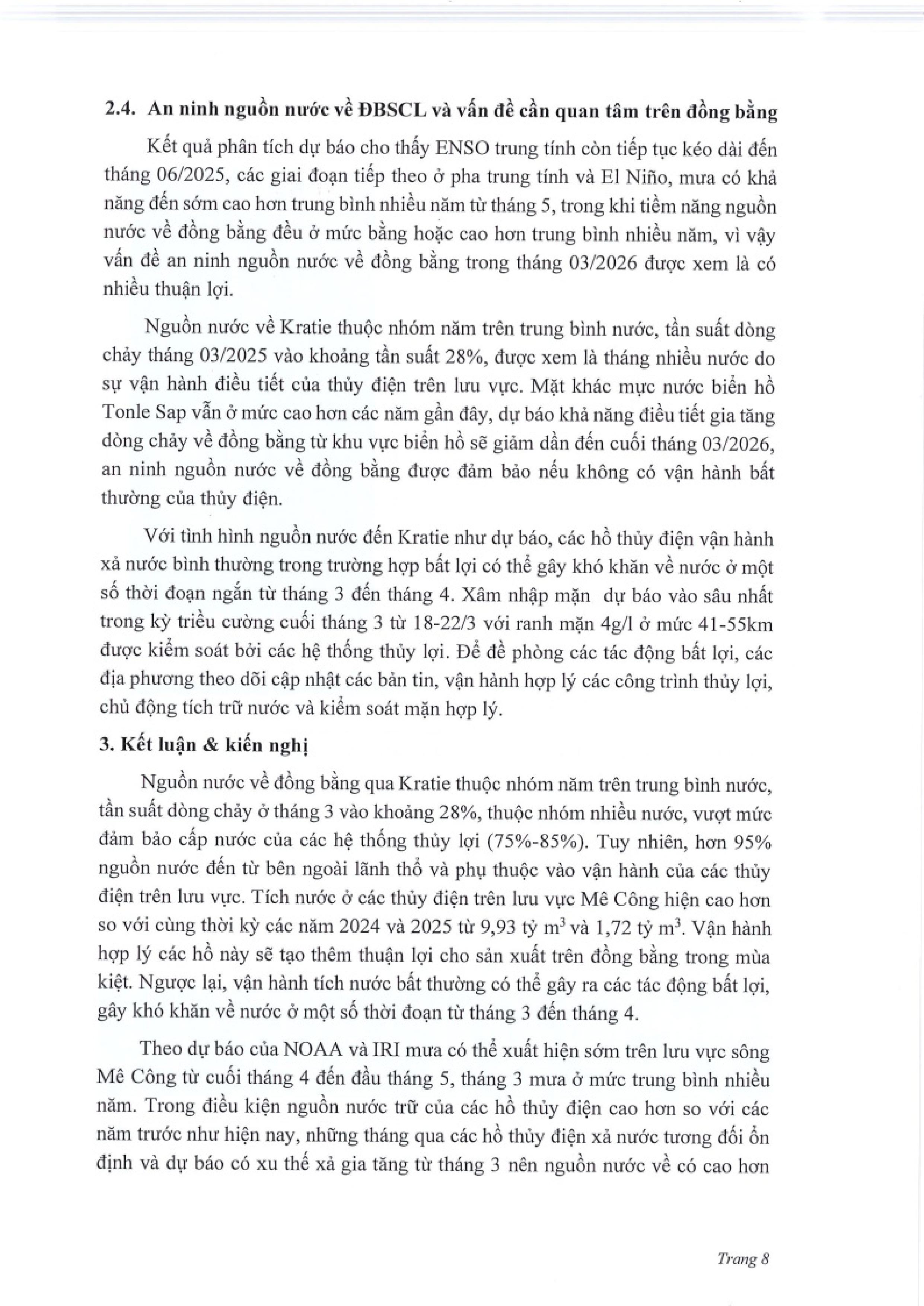 BÁO CÁO AN NINH NGUỒN NƯỚC MÙA KIỆT VỀ ĐỒNG BẰNG SÔNG CỬU LONG TỪ LƯU VỰC SÔNG MÊ CÔNG (Từ Tháng 1 - Tháng 6/2026)