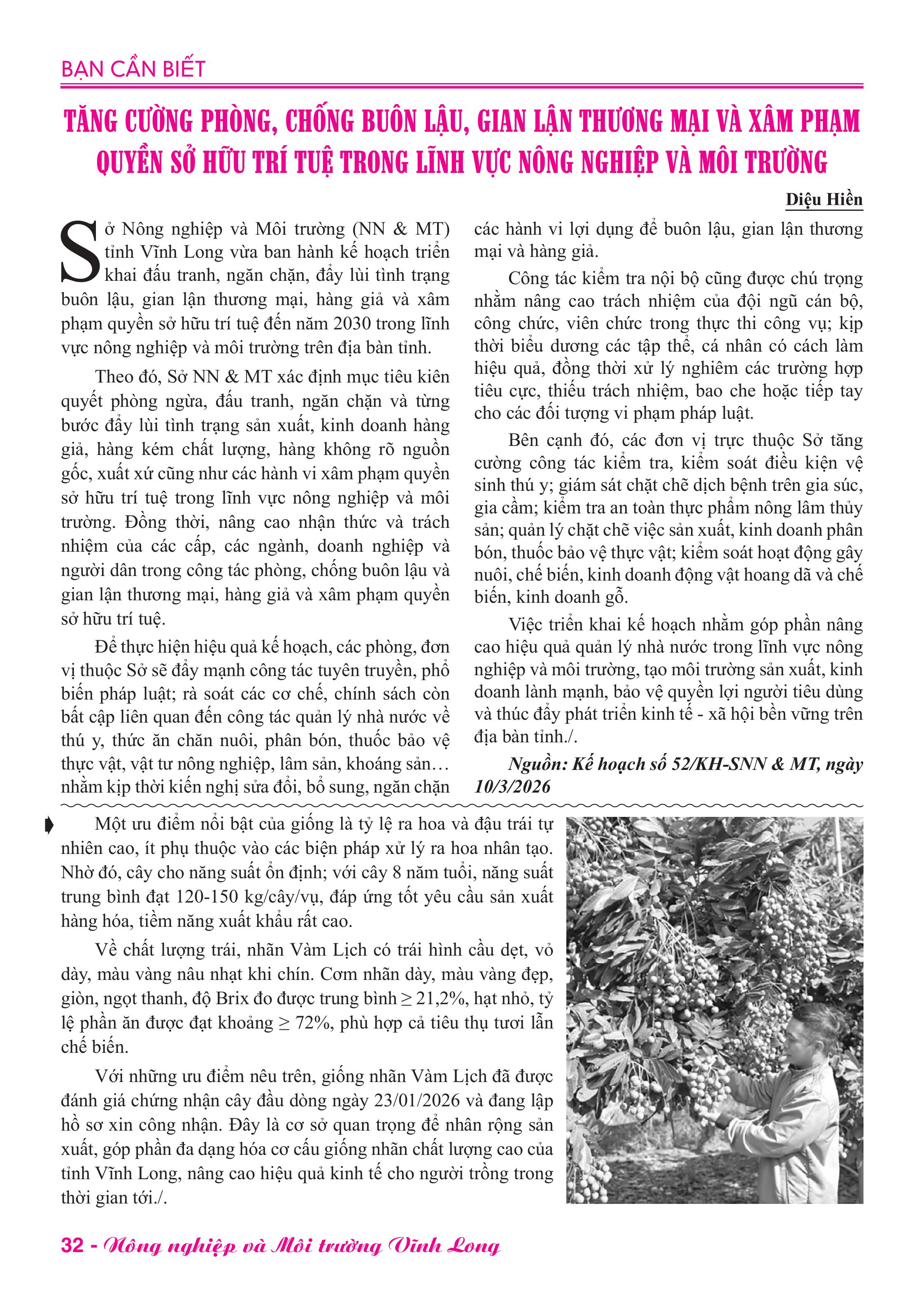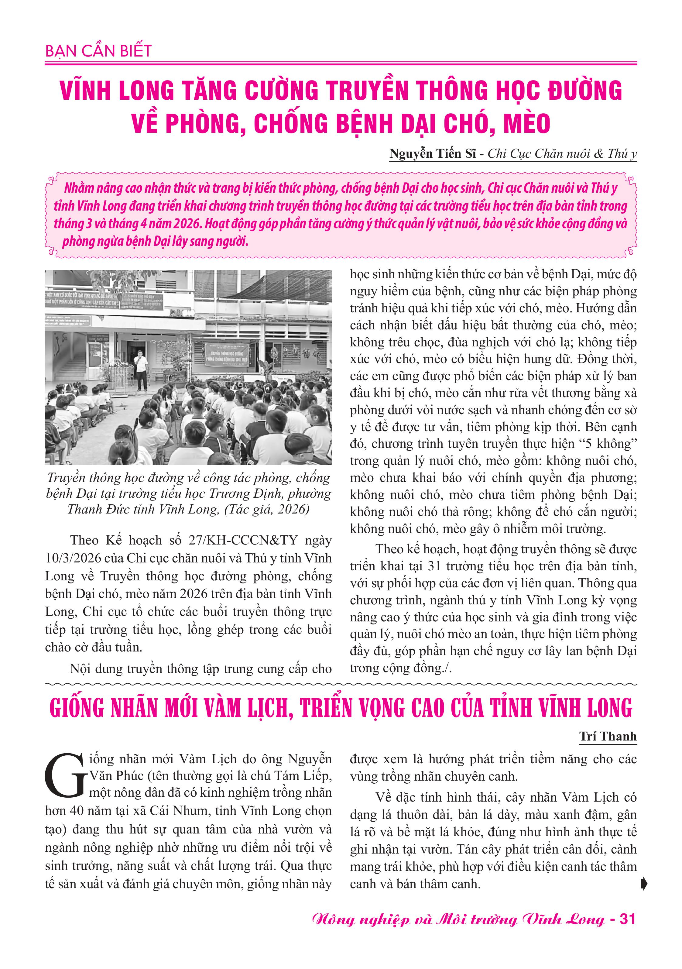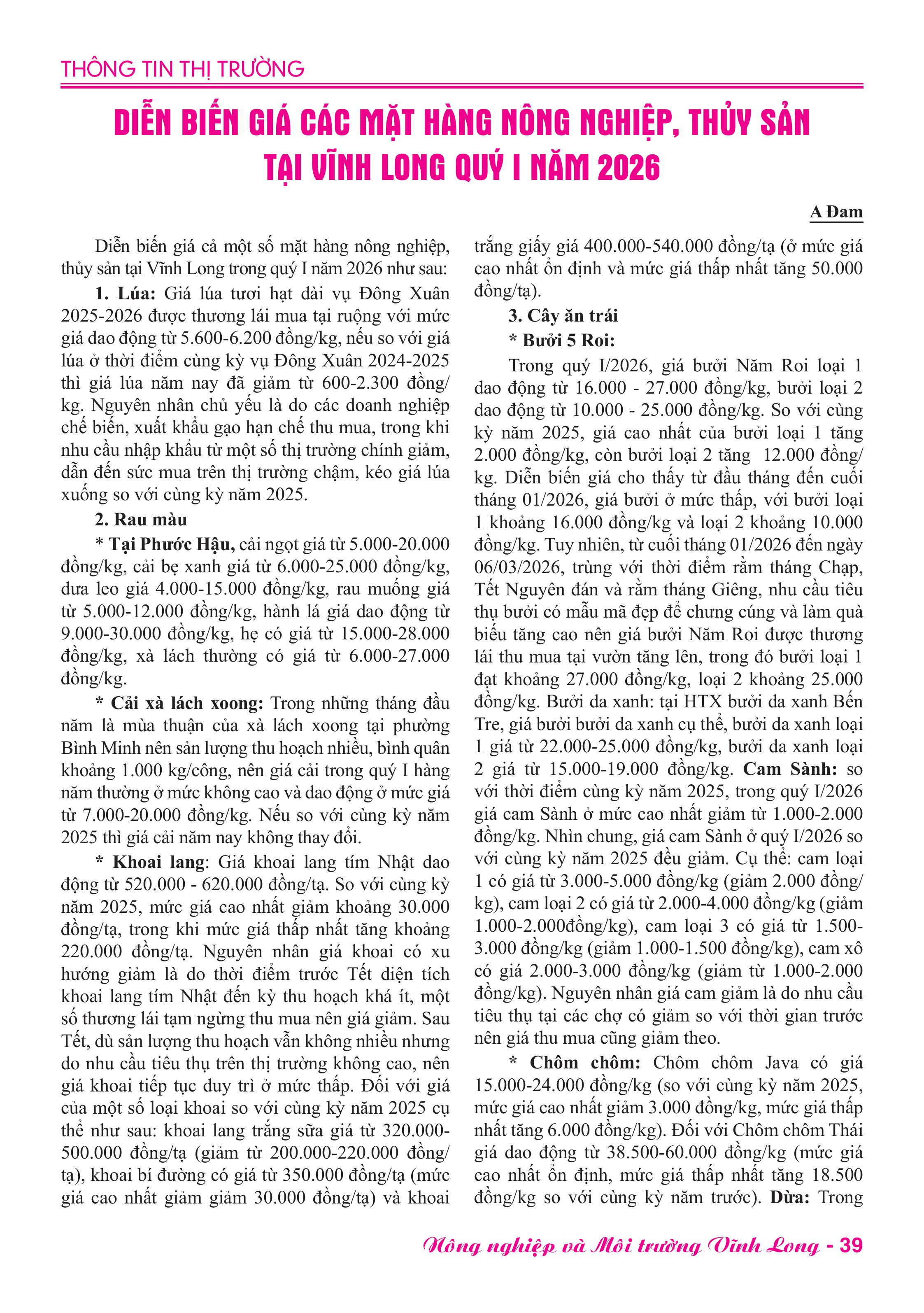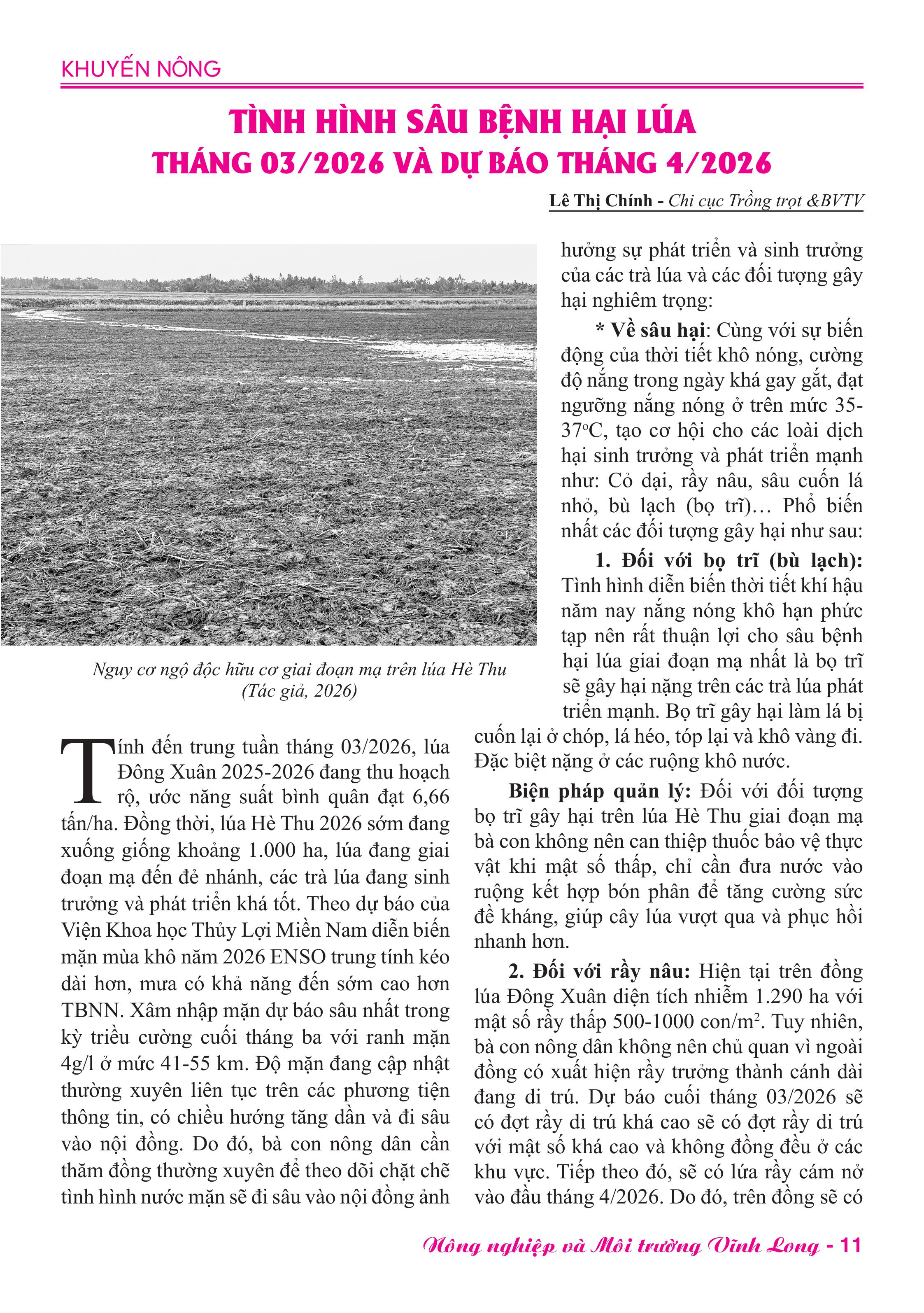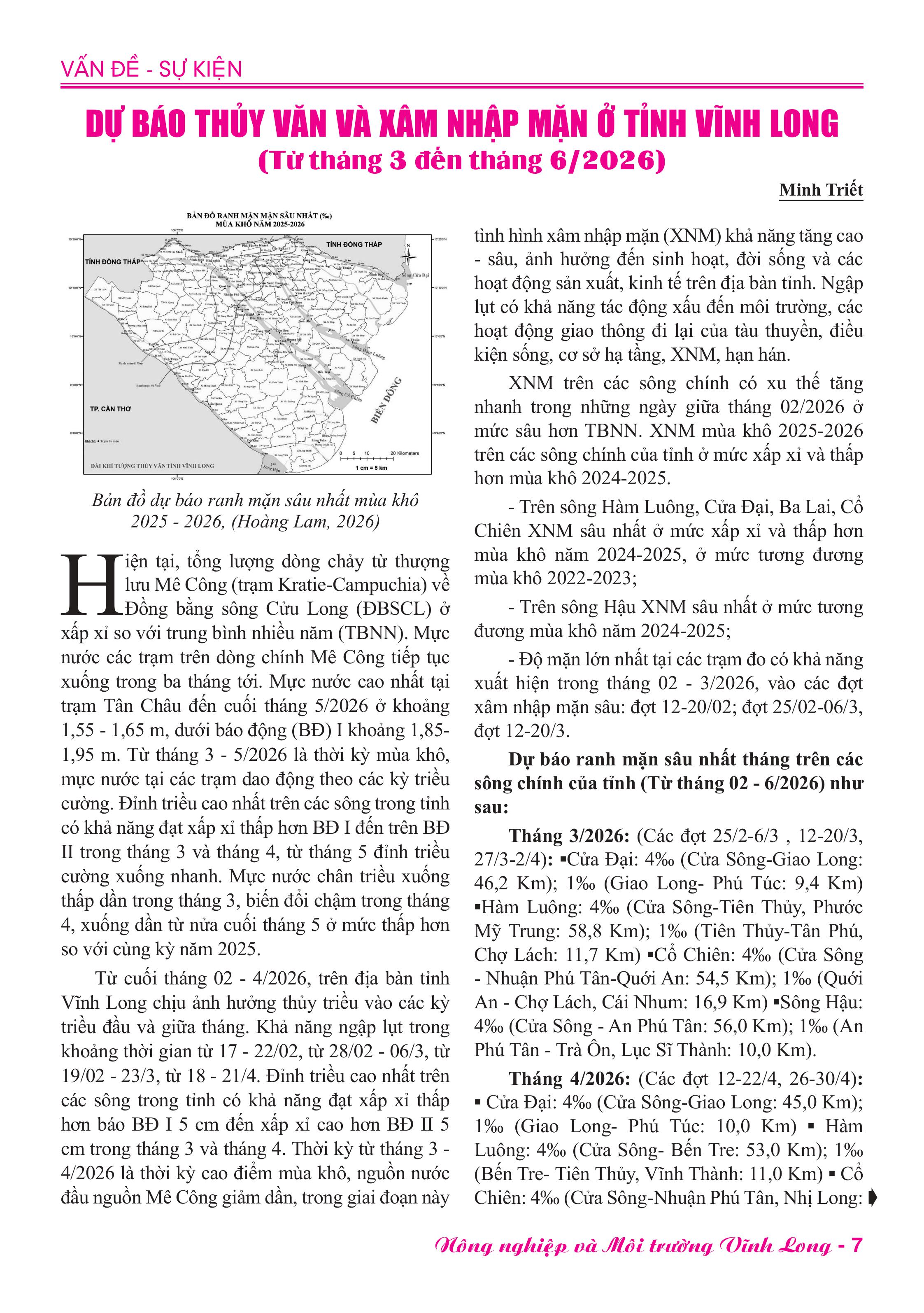 Bản tin Nông nghiệp và Môi trường Vĩnh Long tháng 3 năm 2026