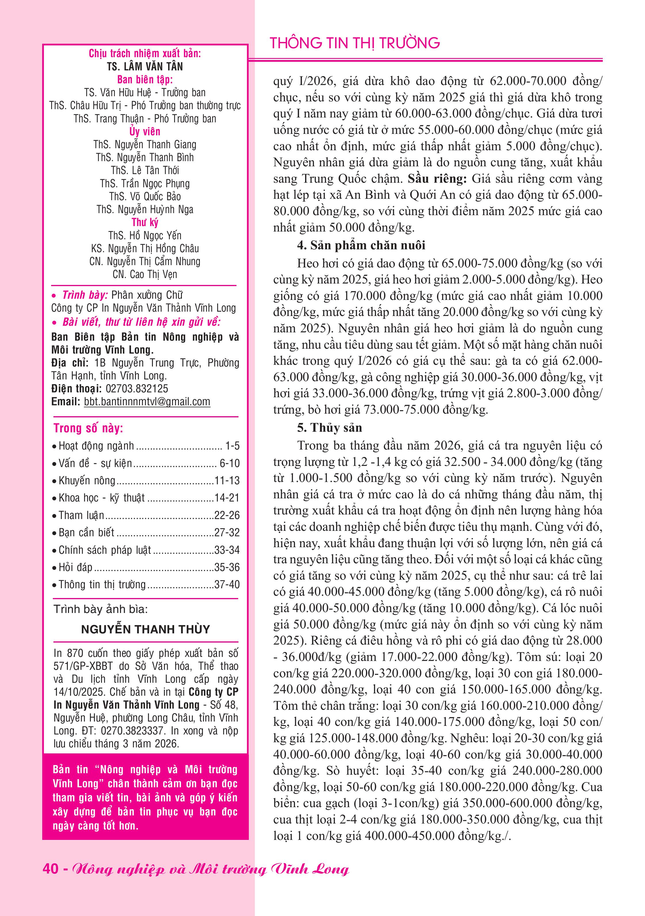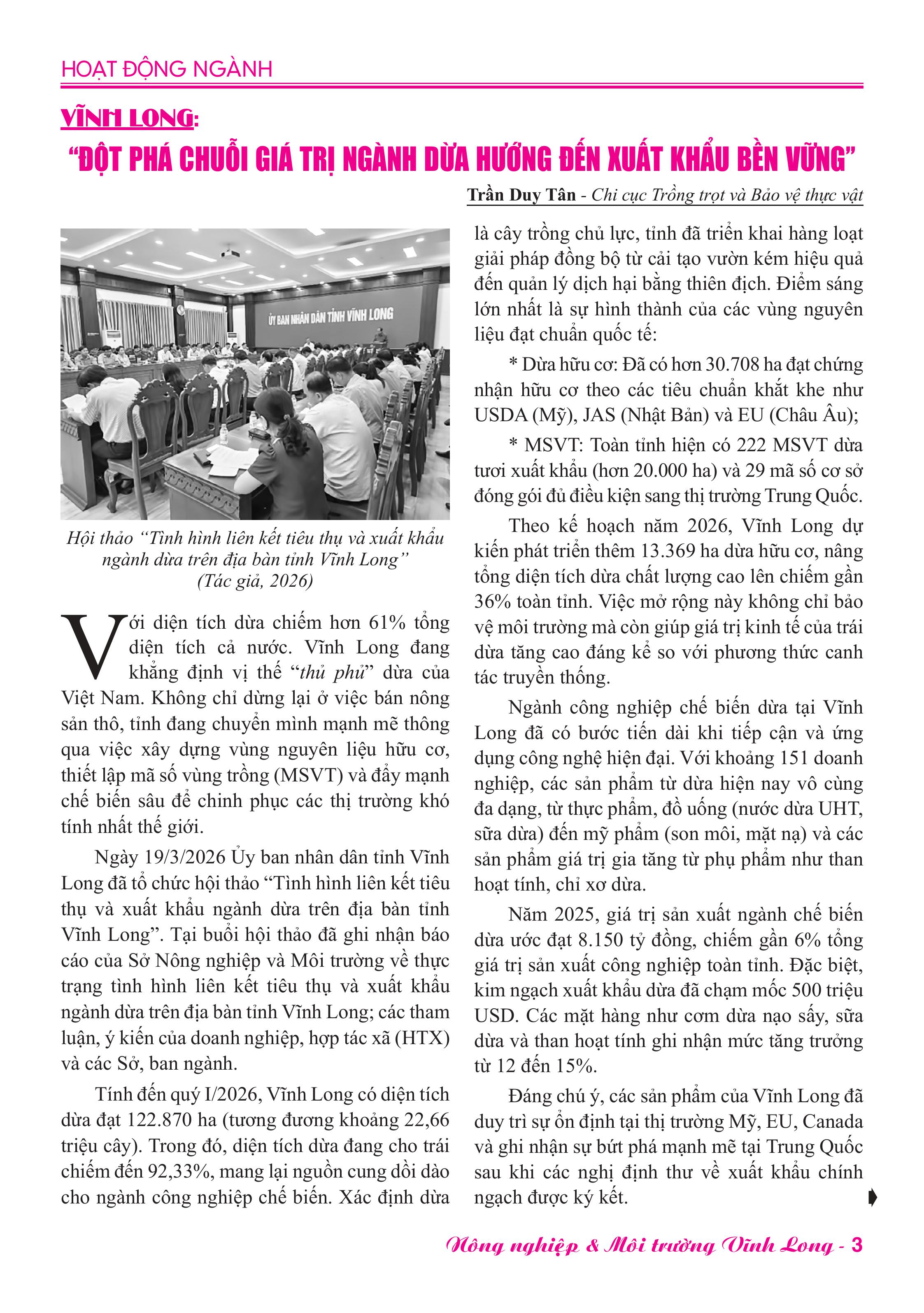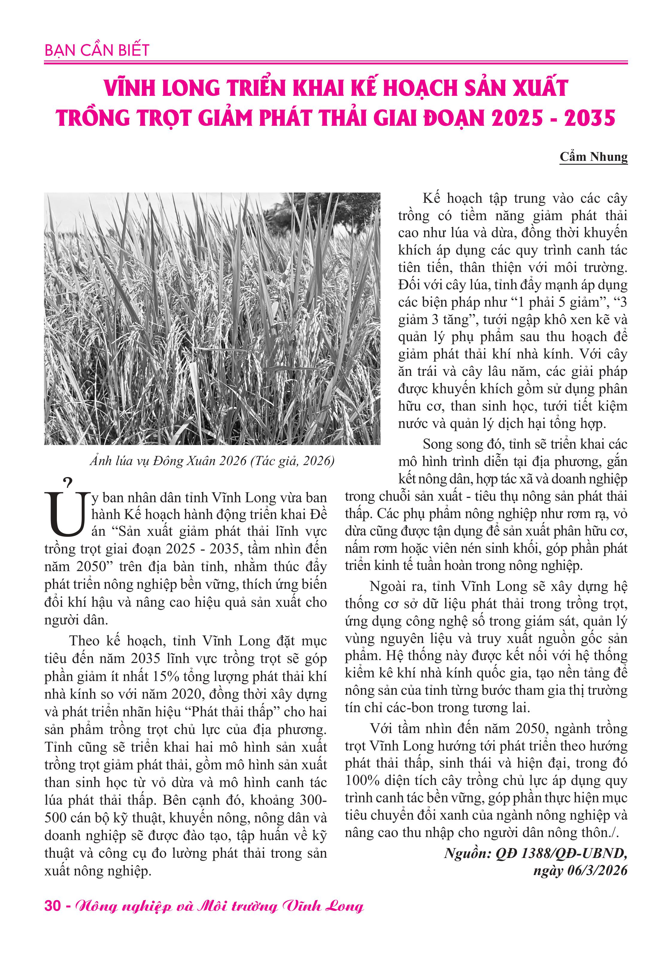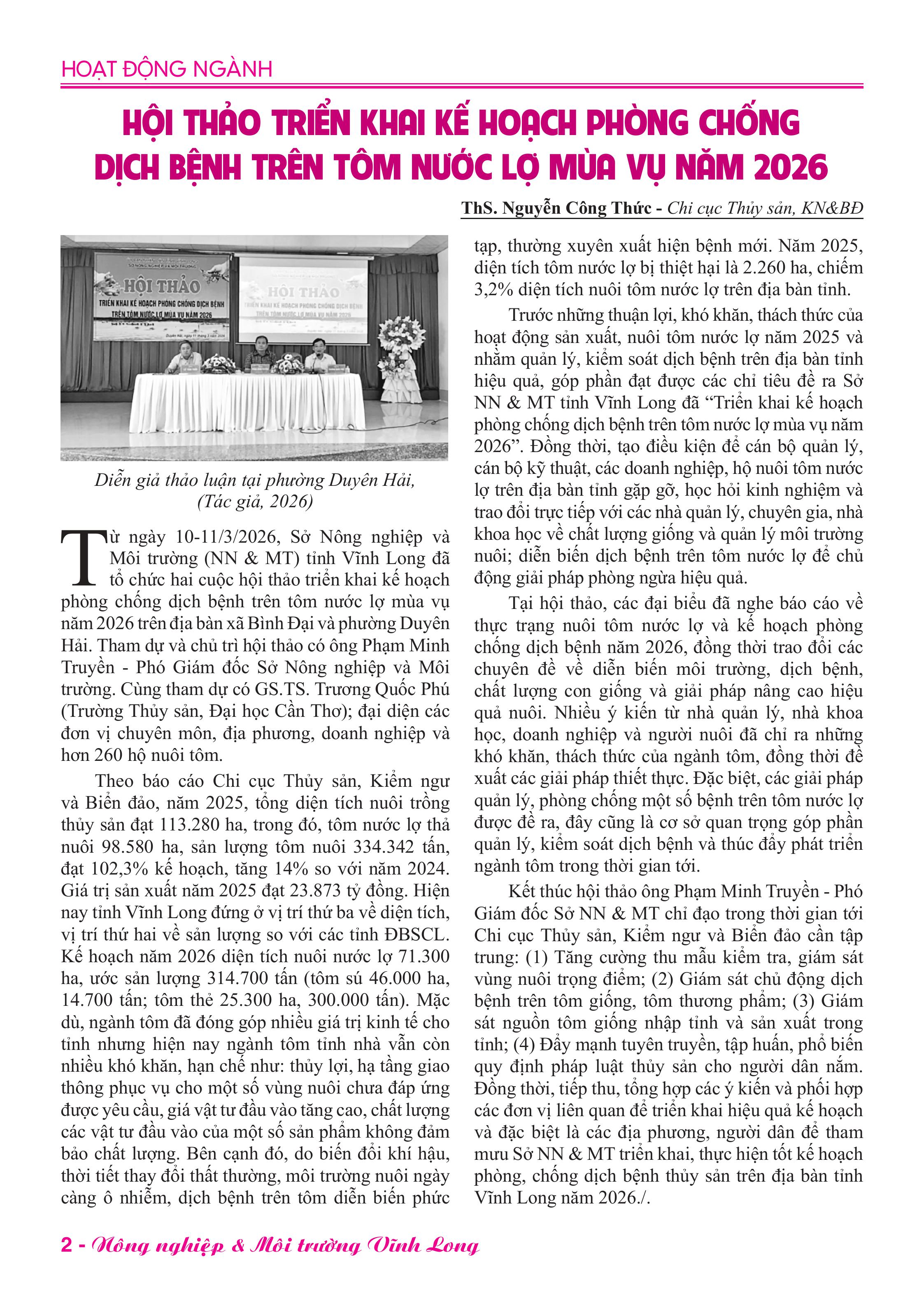 Bản tin Nông nghiệp và Môi trường Vĩnh Long tháng 3 năm 2026