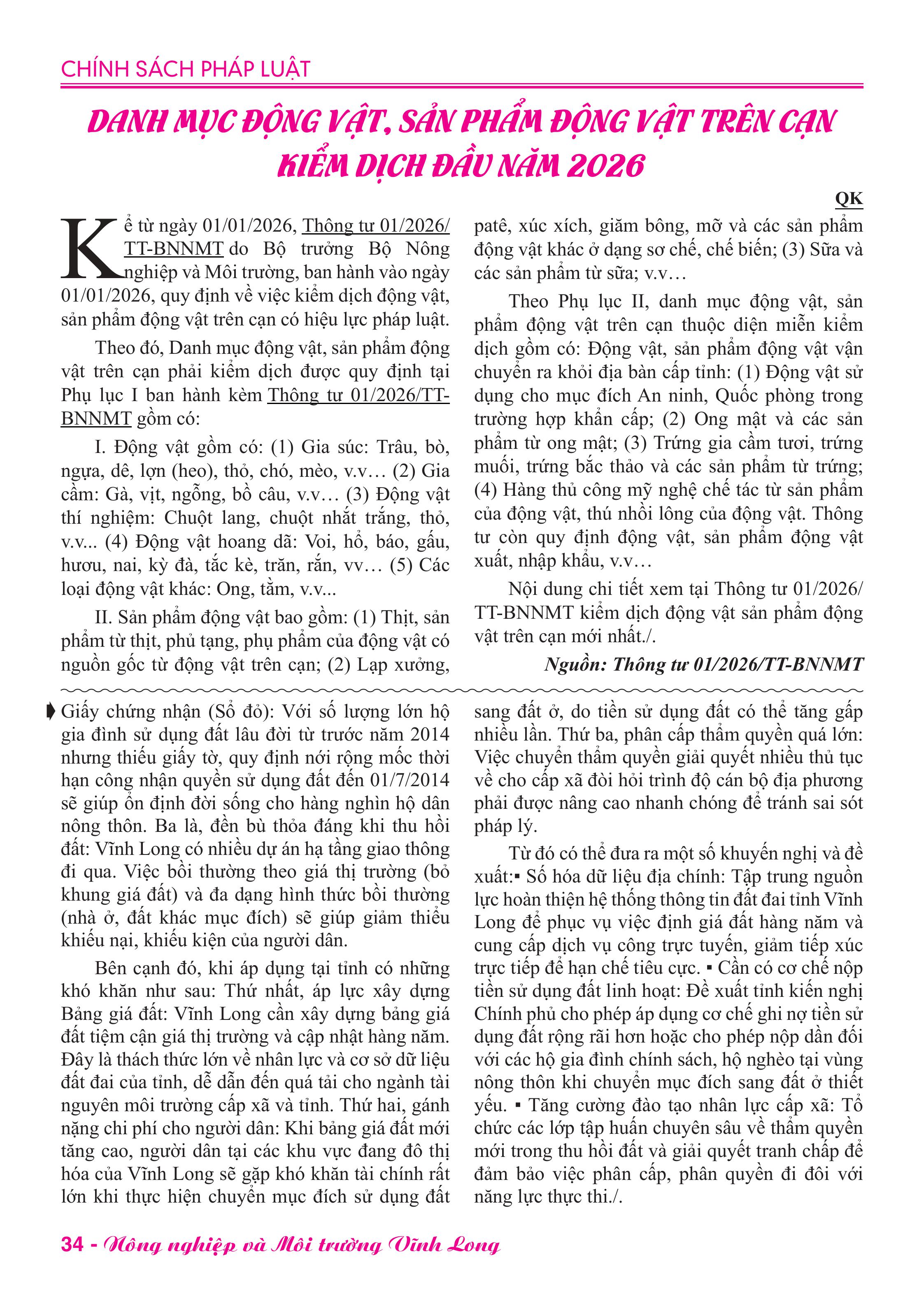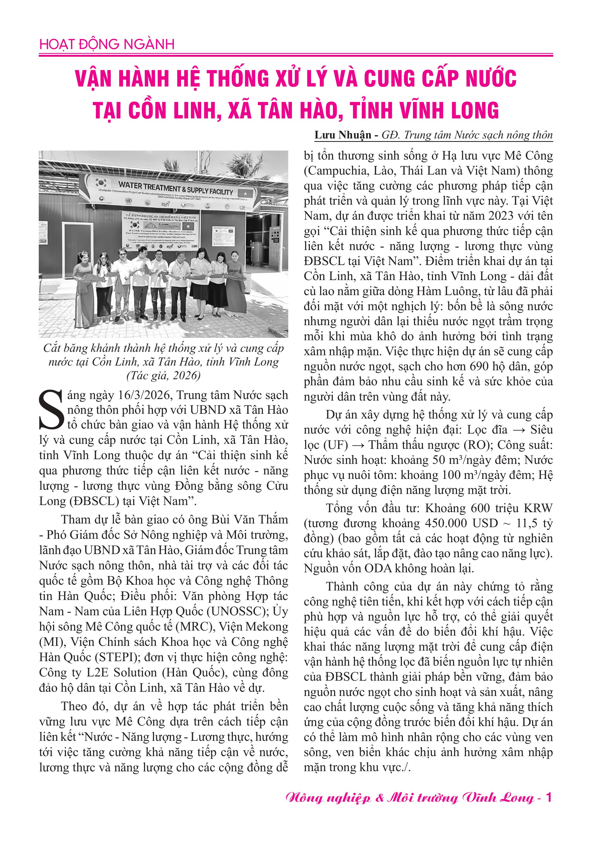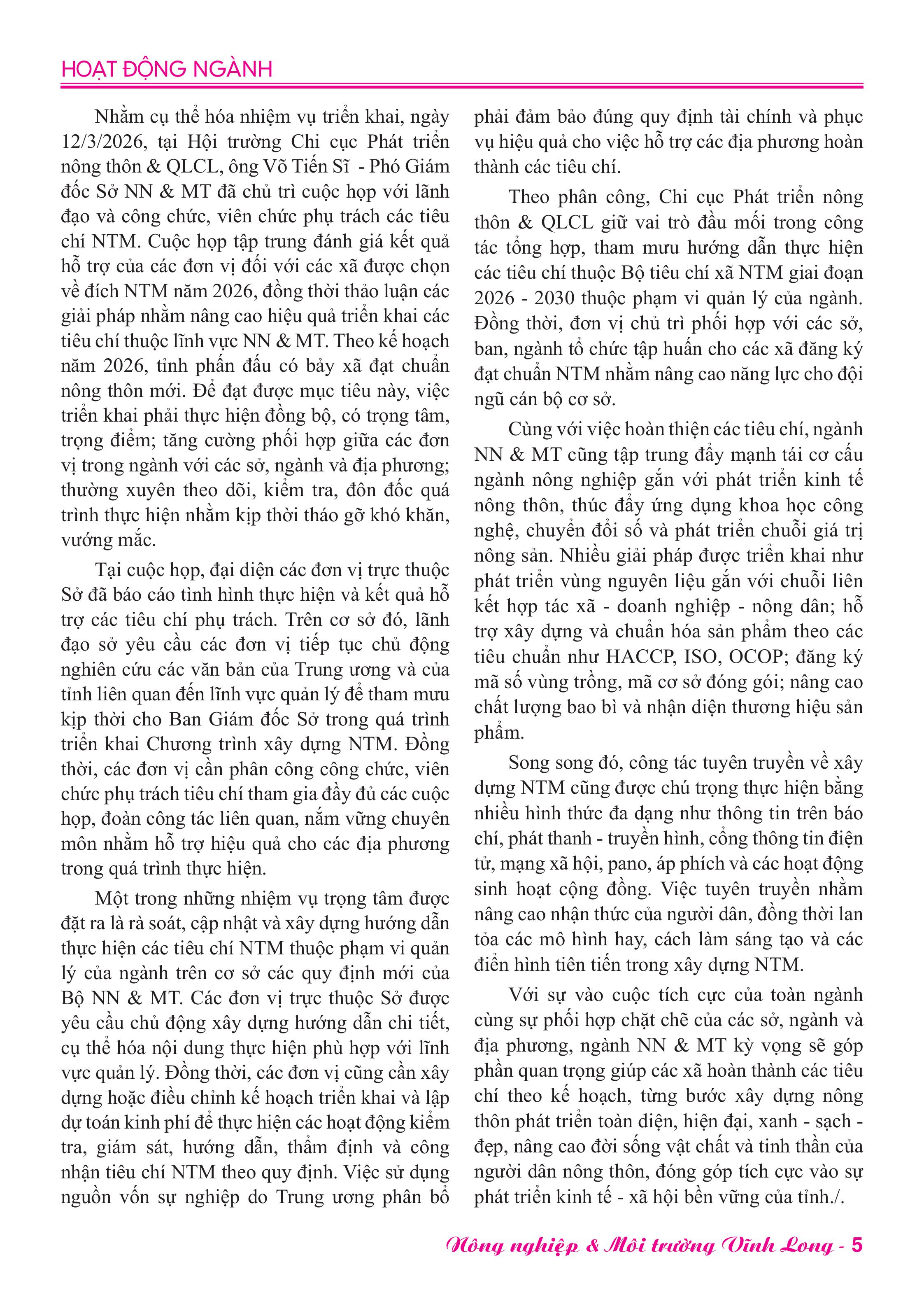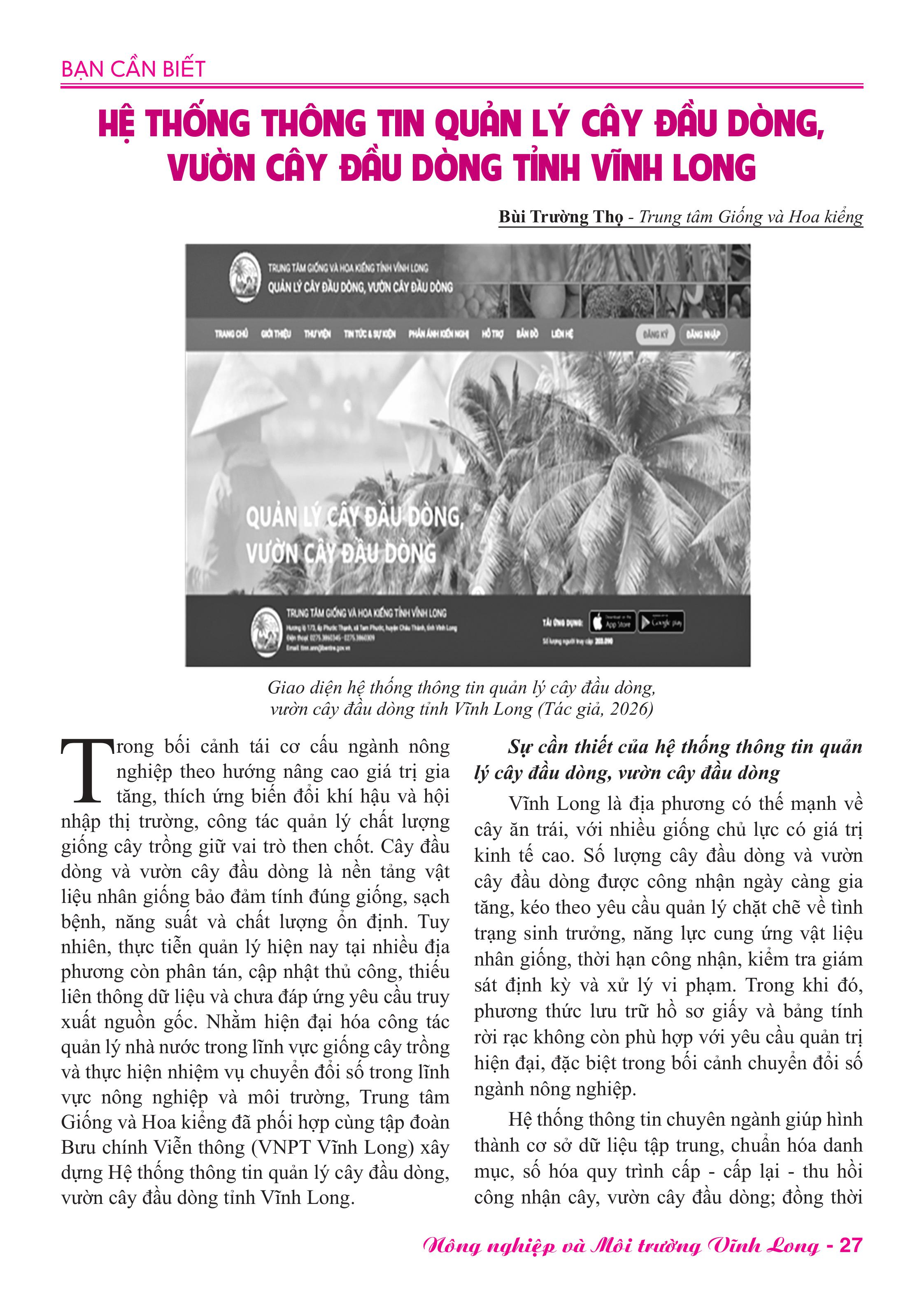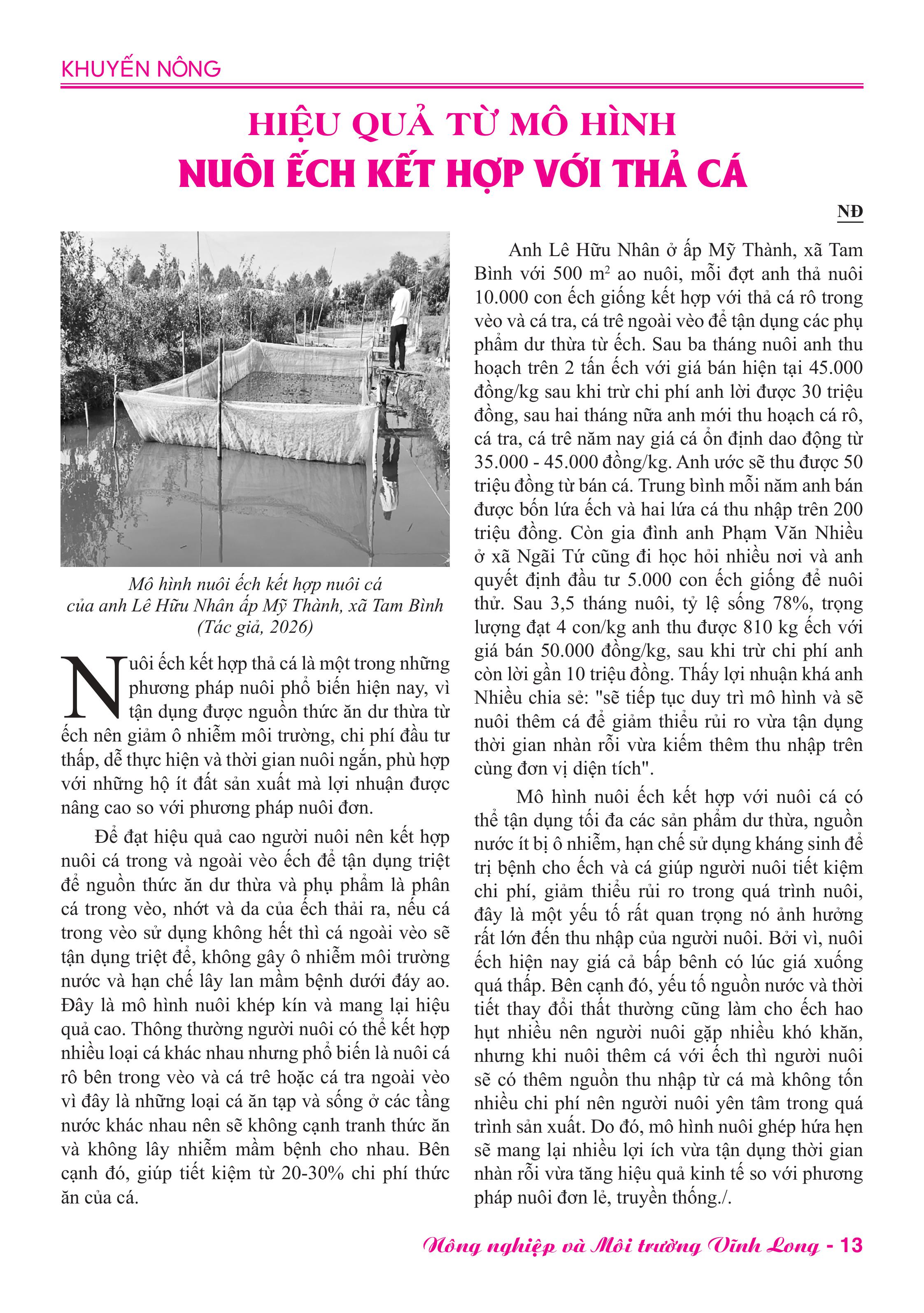 Bản tin Nông nghiệp và Môi trường Vĩnh Long tháng 3 năm 2026