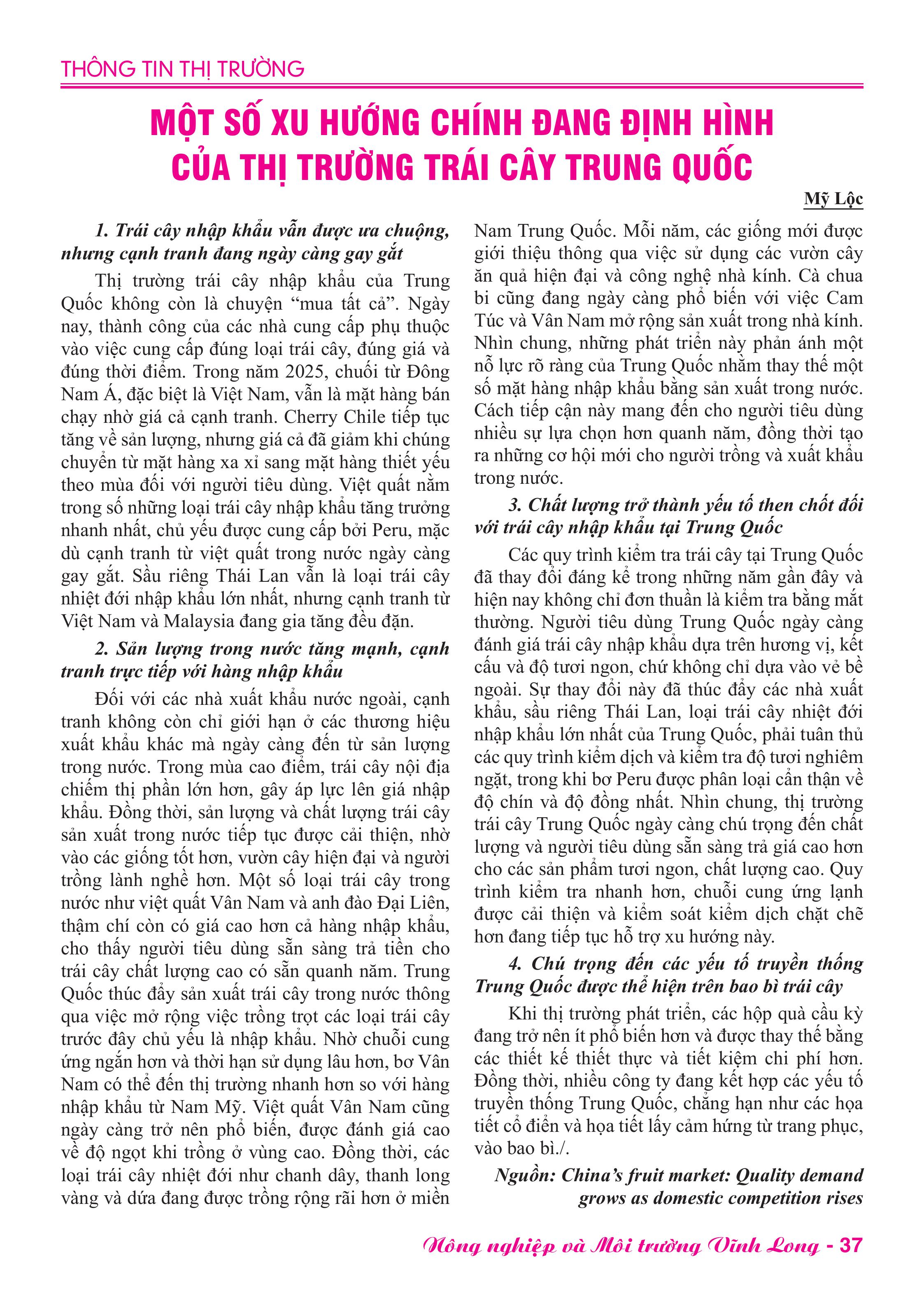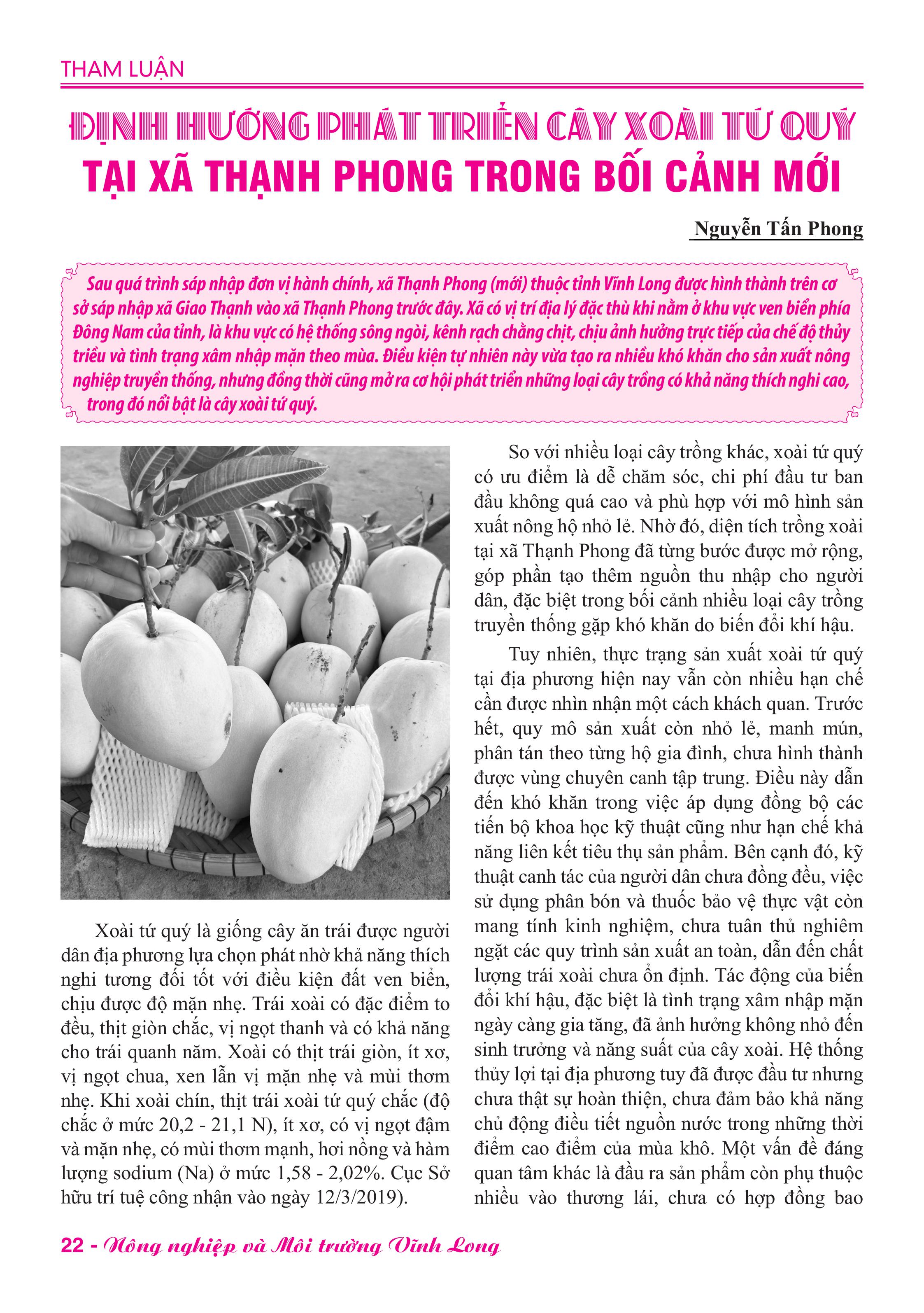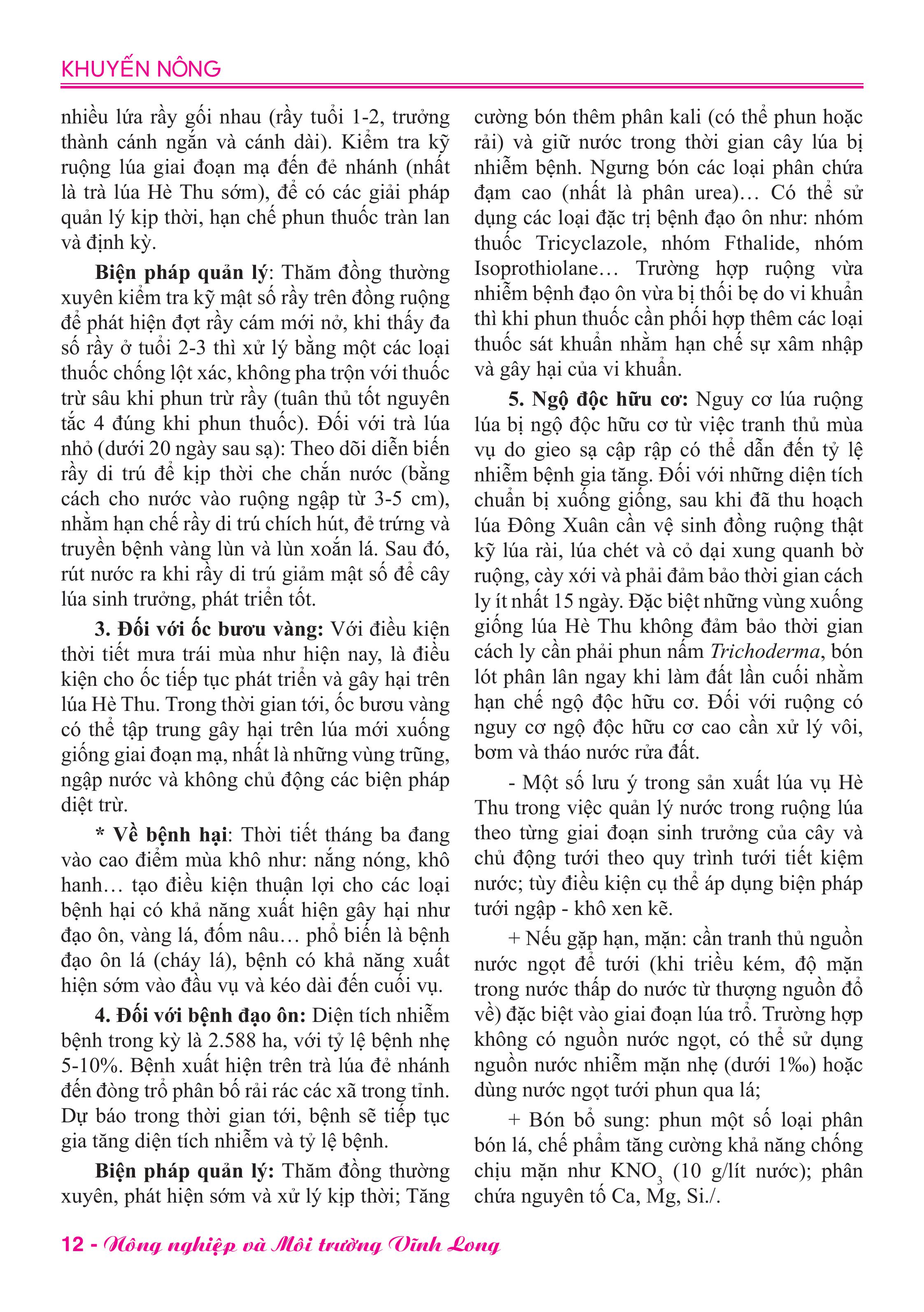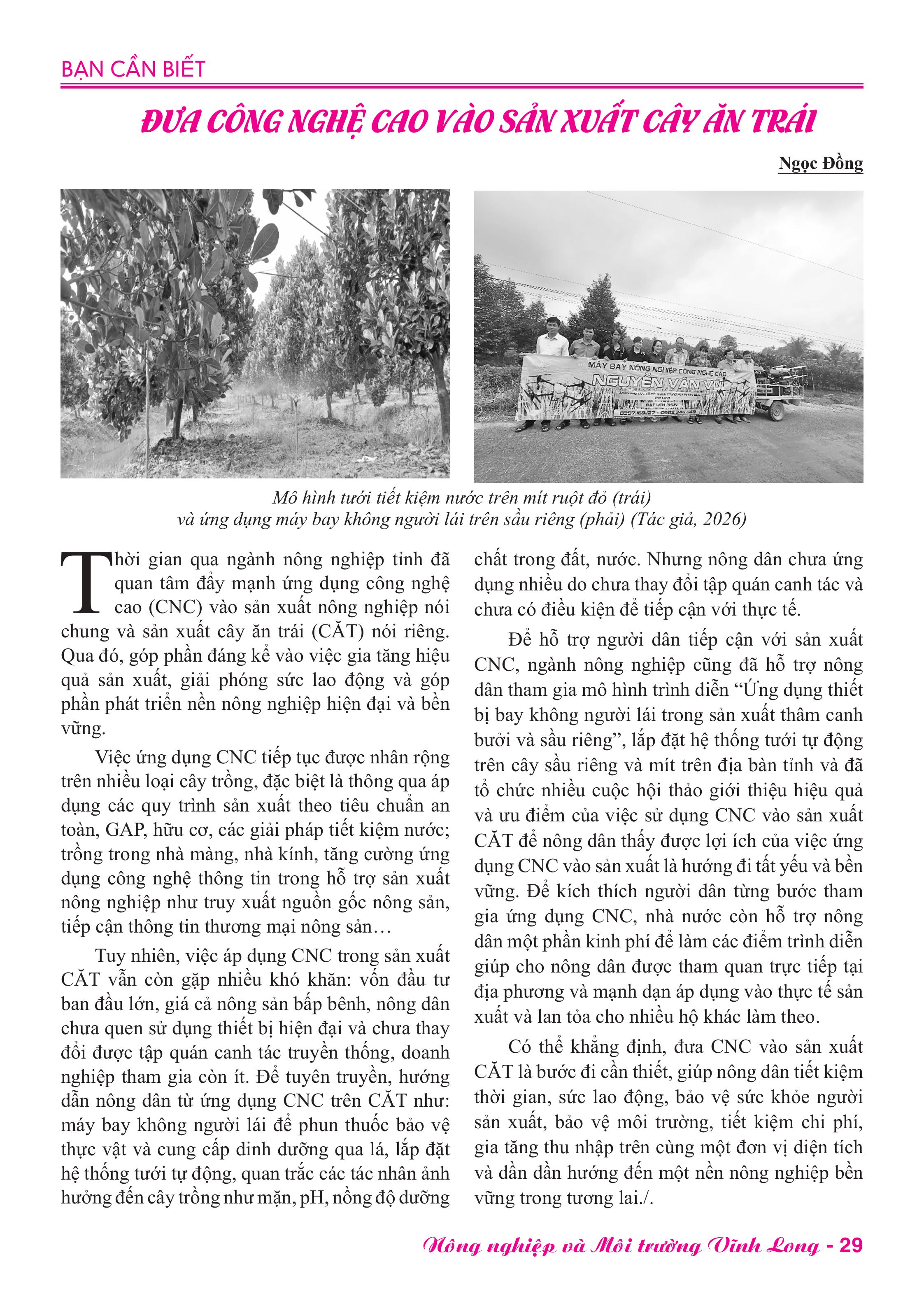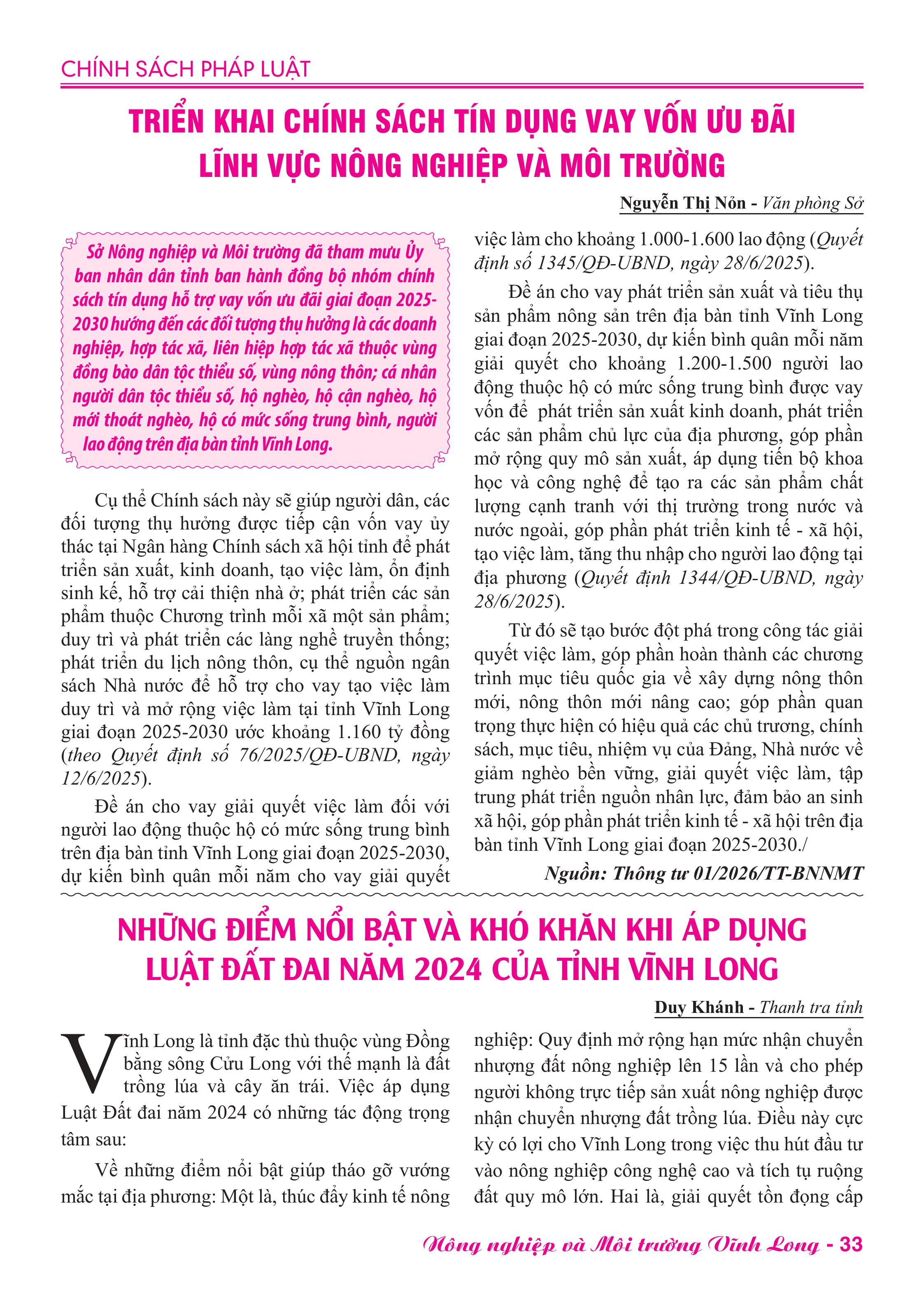Bản tin Nông nghiệp và Môi trường Vĩnh Long tháng 3 + 4 năm 2025