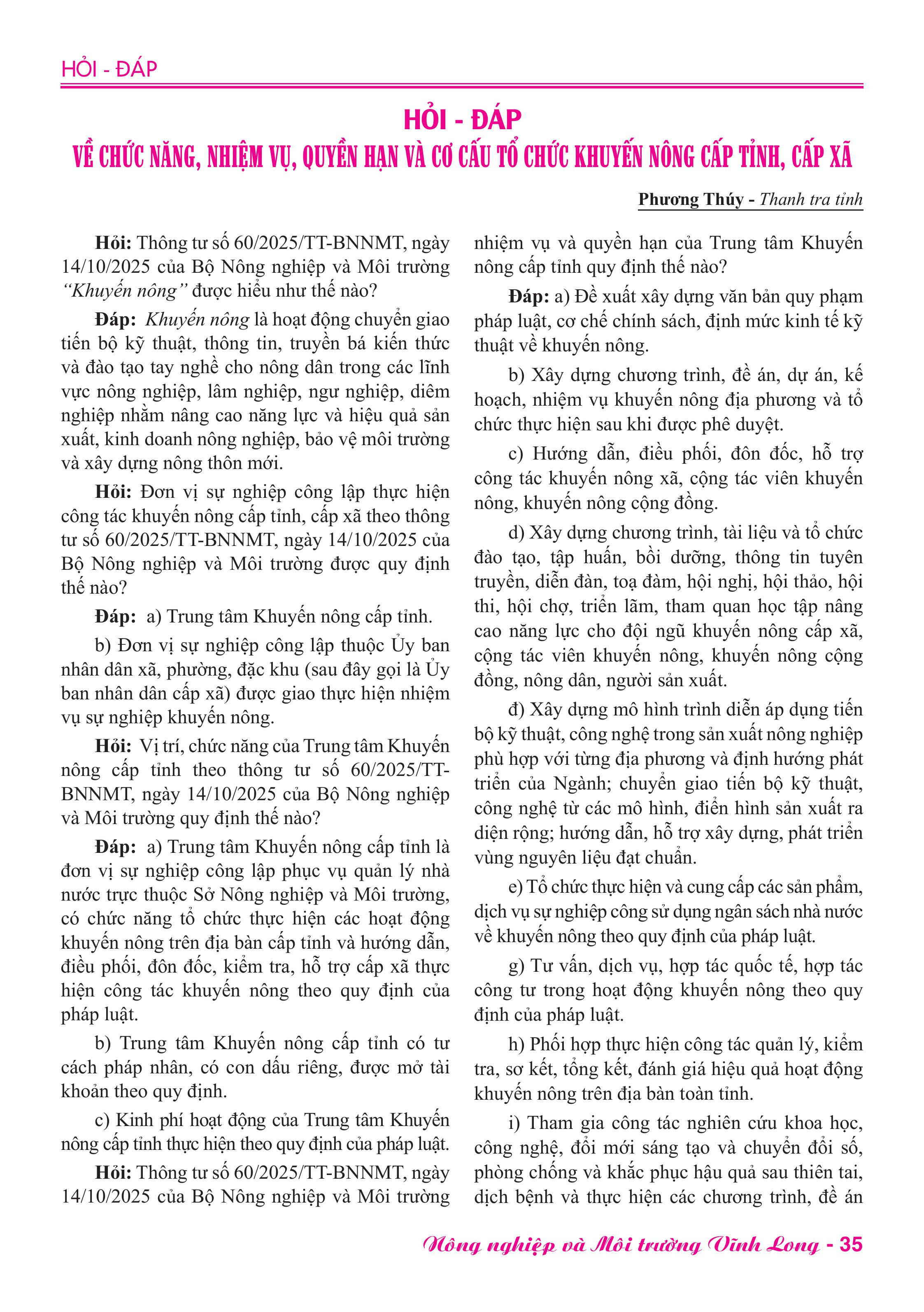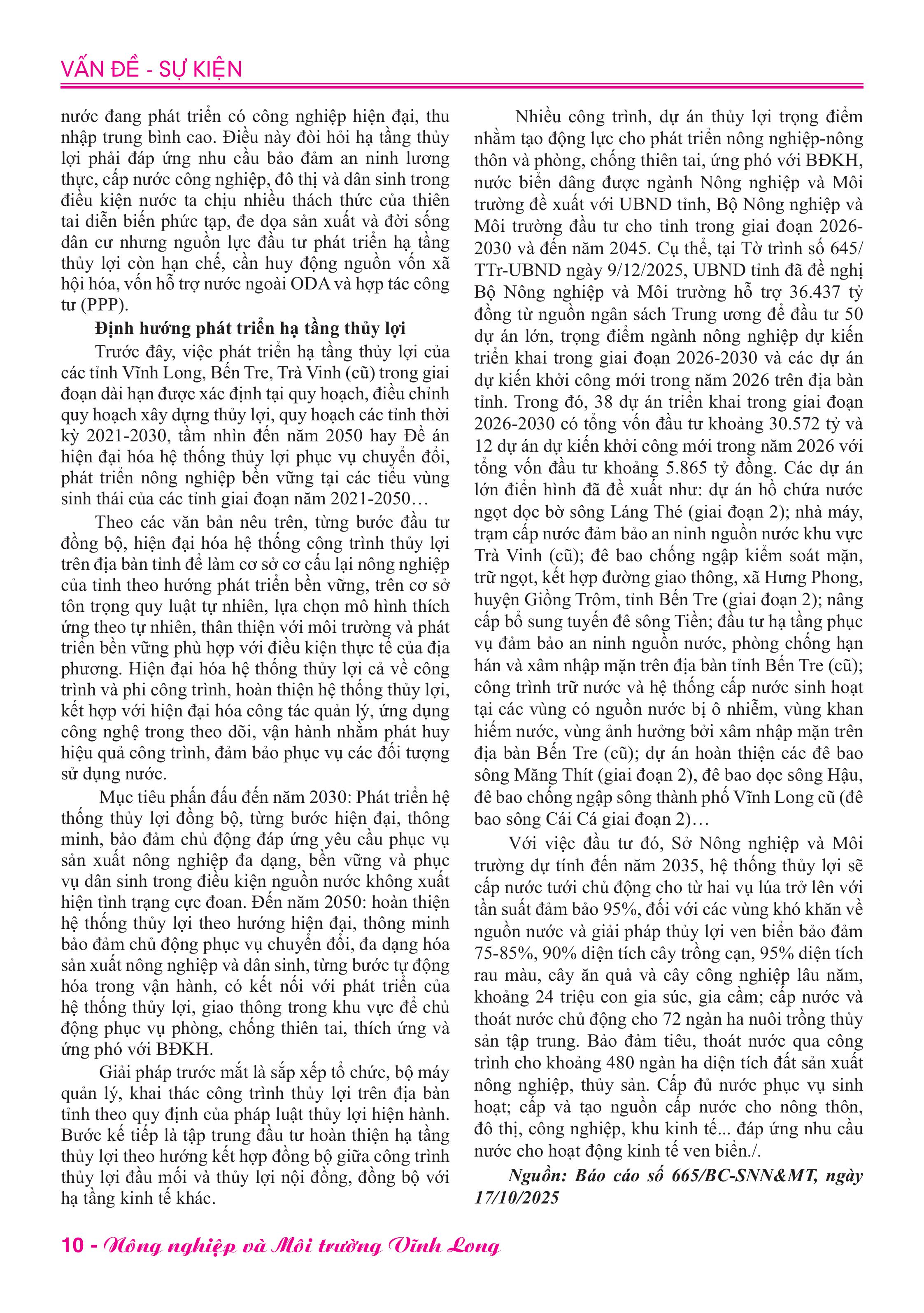 Bản tin Nông nghiệp và Môi trường Vĩnh Long tháng 9 + 10 năm 2025
