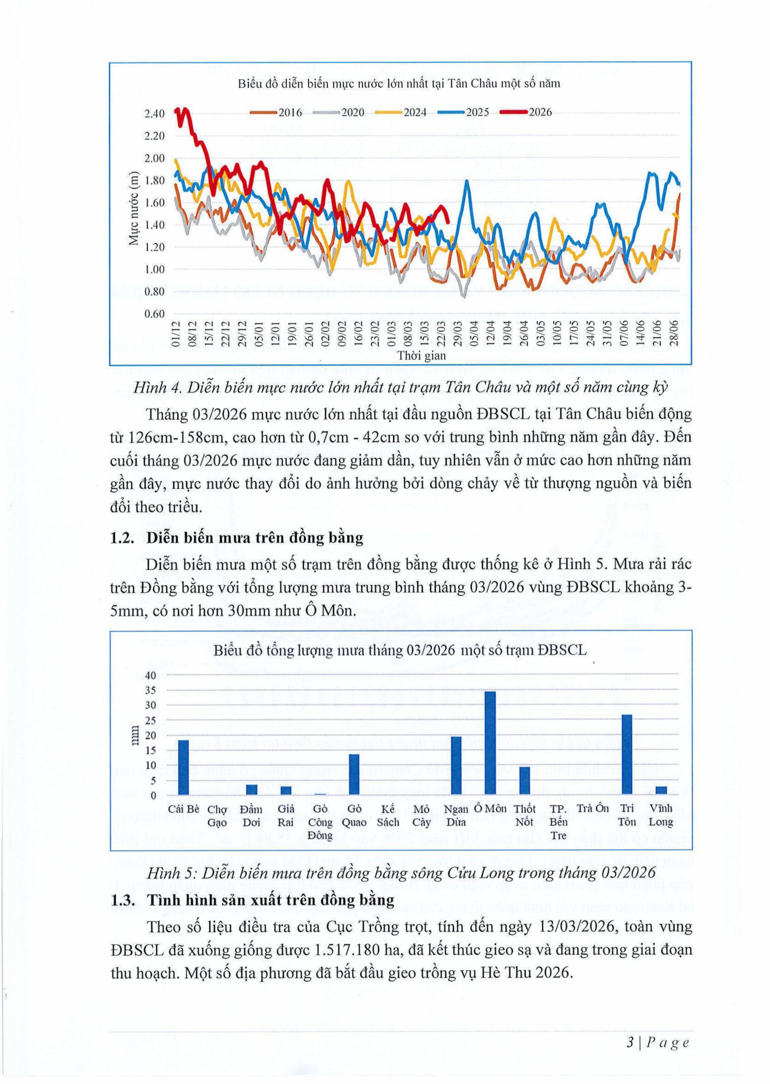 BÁO CÁO AN NINH NGUỒN NƯỚC MÙA KIỆT VỀ ĐỒNG BẰNG SÔNG CỬU LONG TỪ LƯU VỰC SÔNG MÊ CÔNG (Tháng 3/2026)