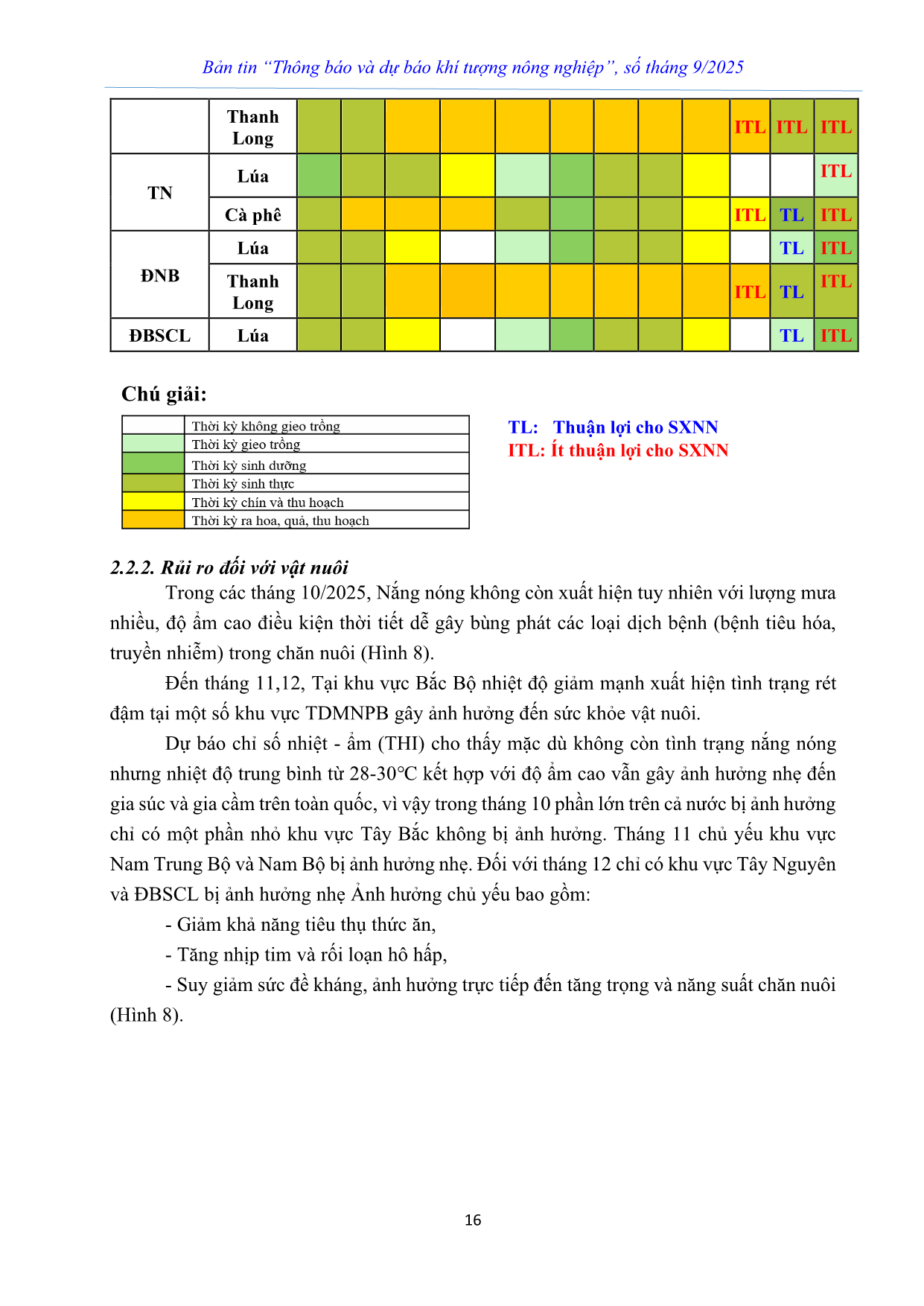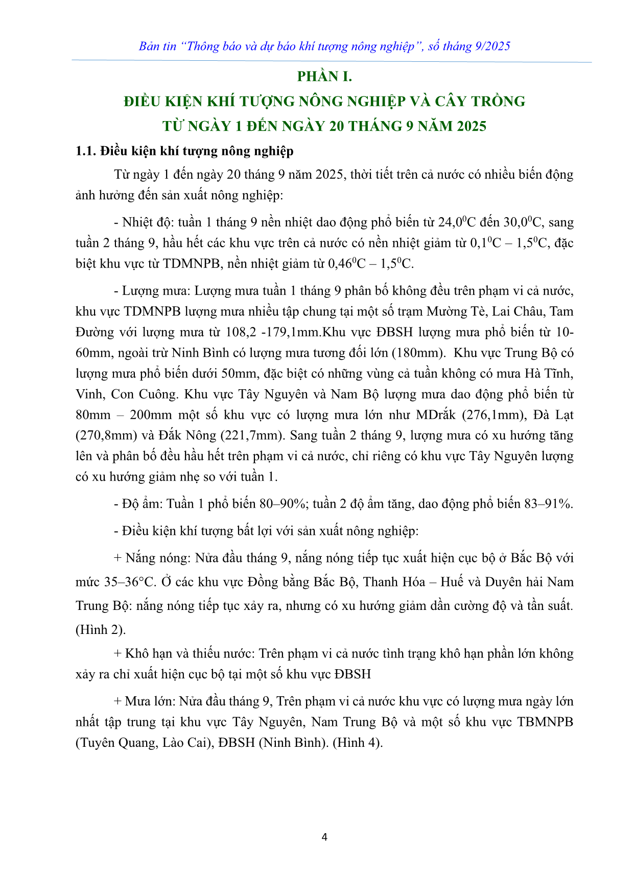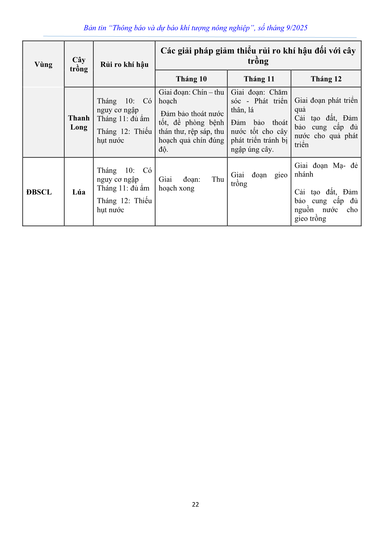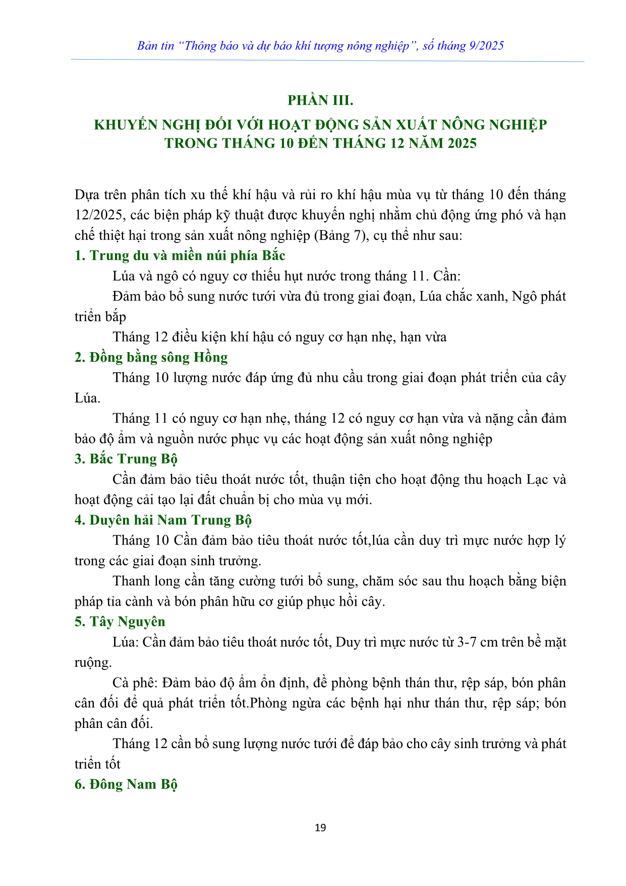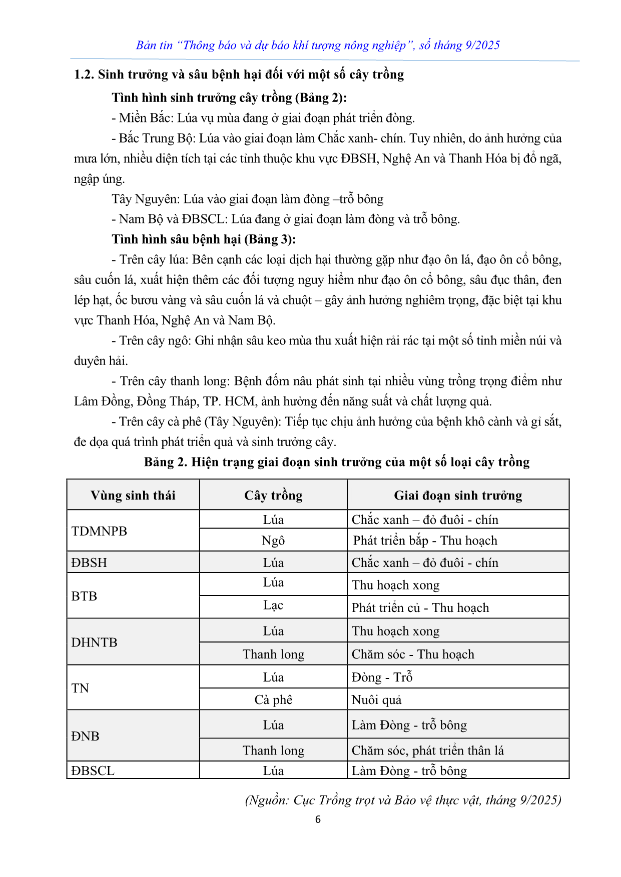THÔNG BÁO VÀ DỰ BÁO KHÍ TƯỢNG NÔNG NGHIỆP SỐ THÁNG 9 NĂM 2025
