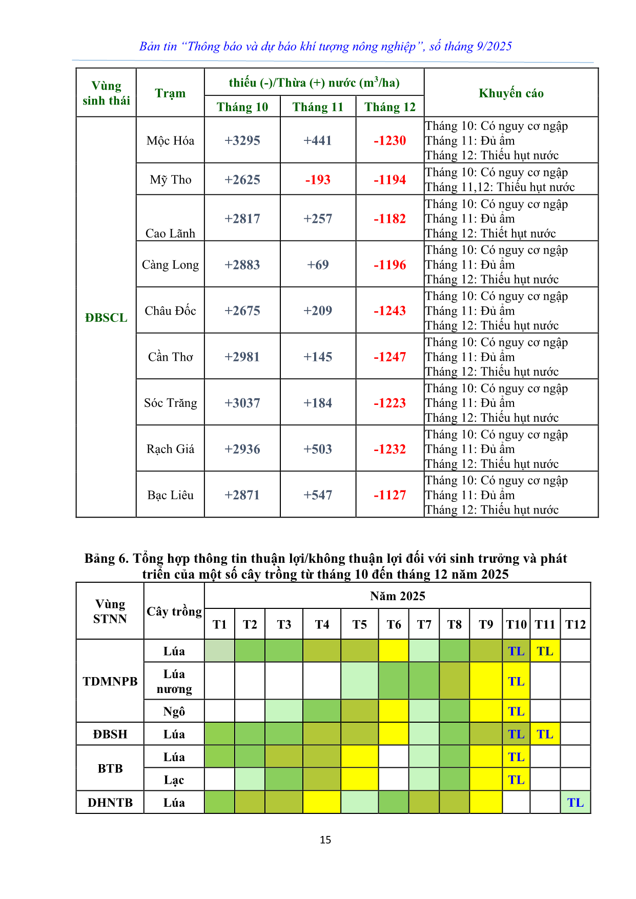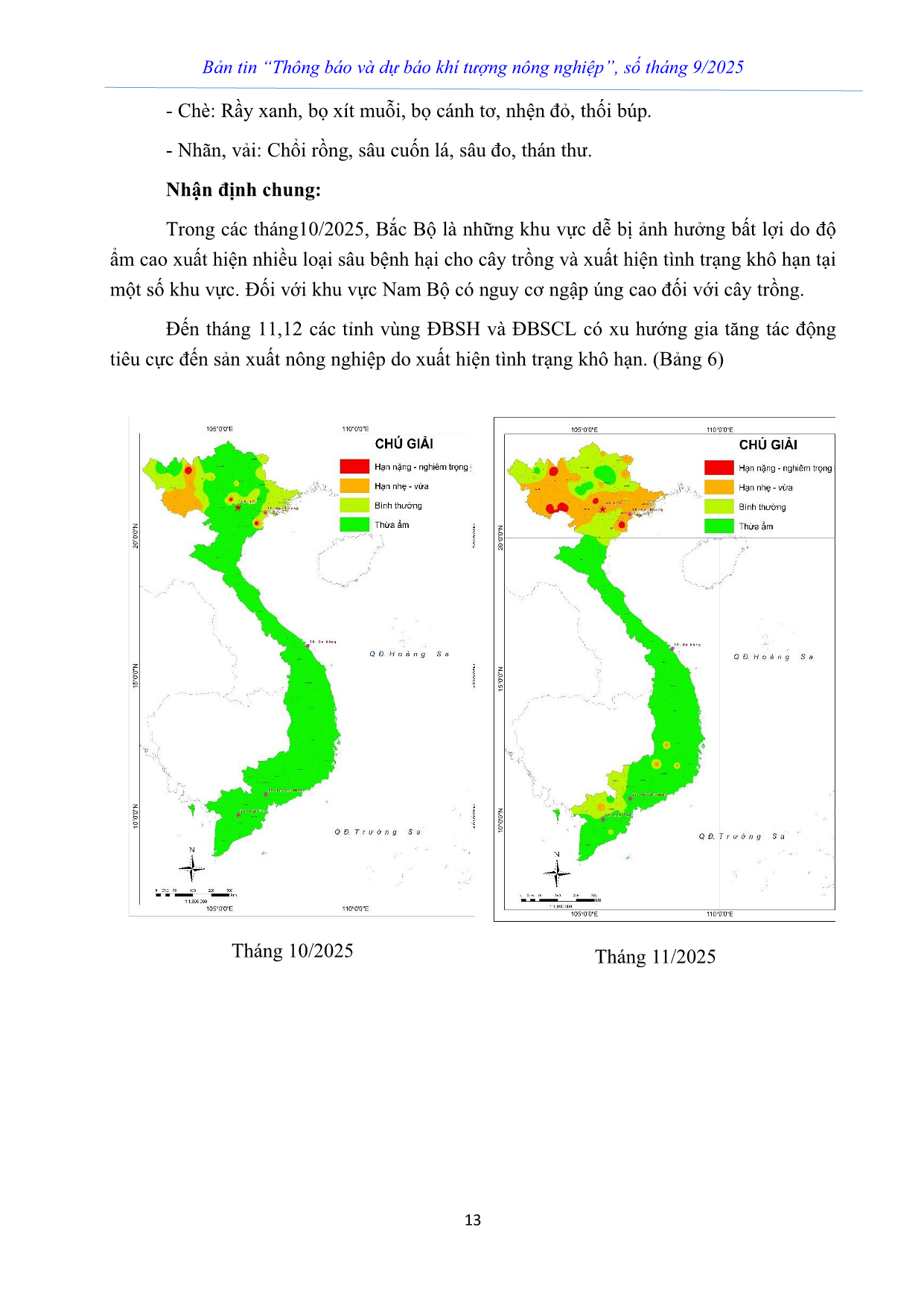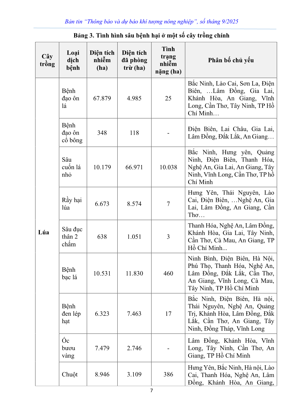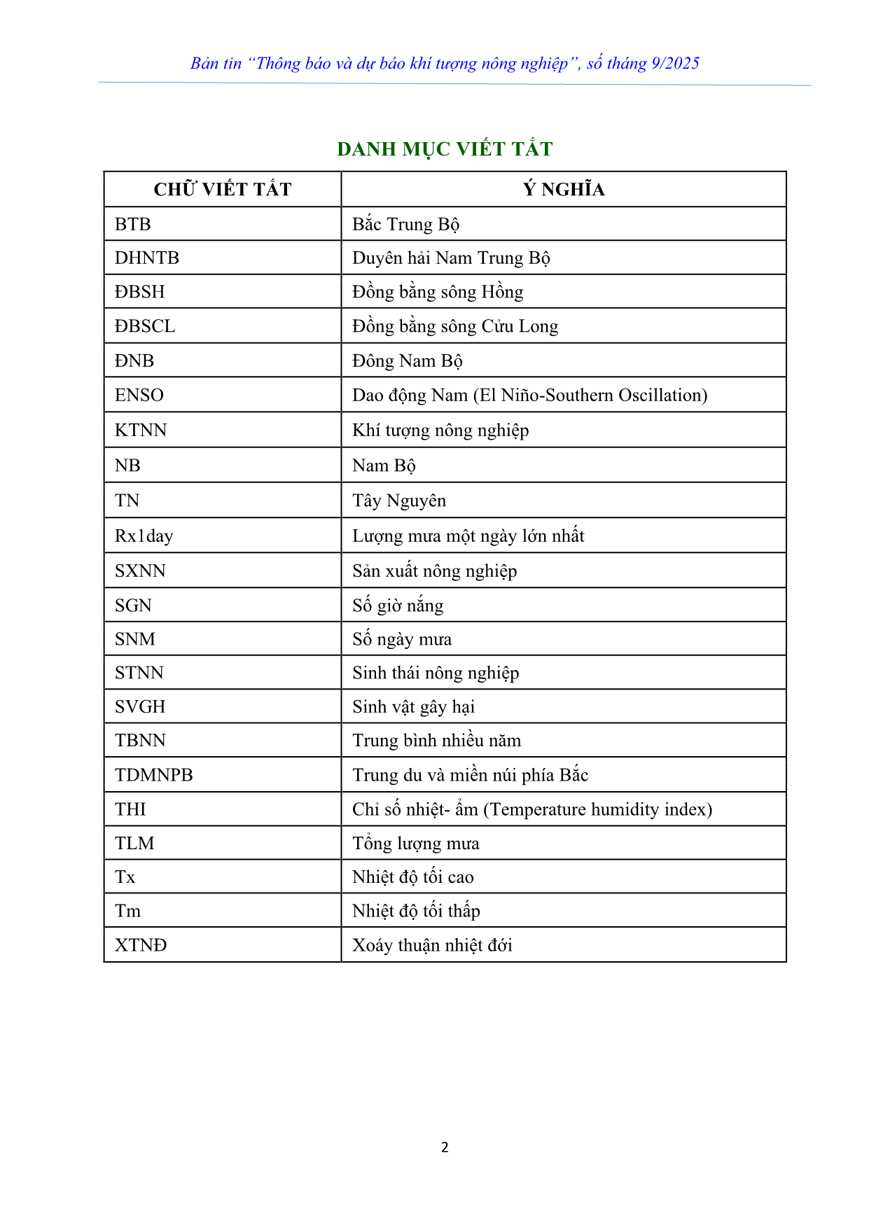 THÔNG BÁO VÀ DỰ BÁO KHÍ TƯỢNG NÔNG NGHIỆP SỐ THÁNG 9 NĂM 2025