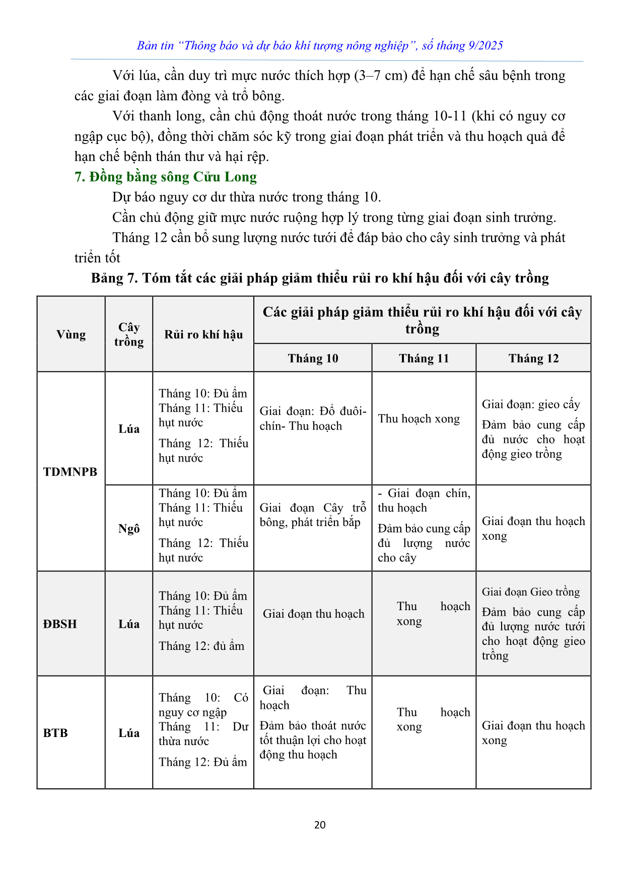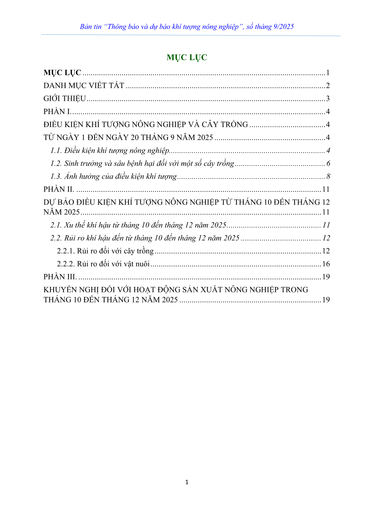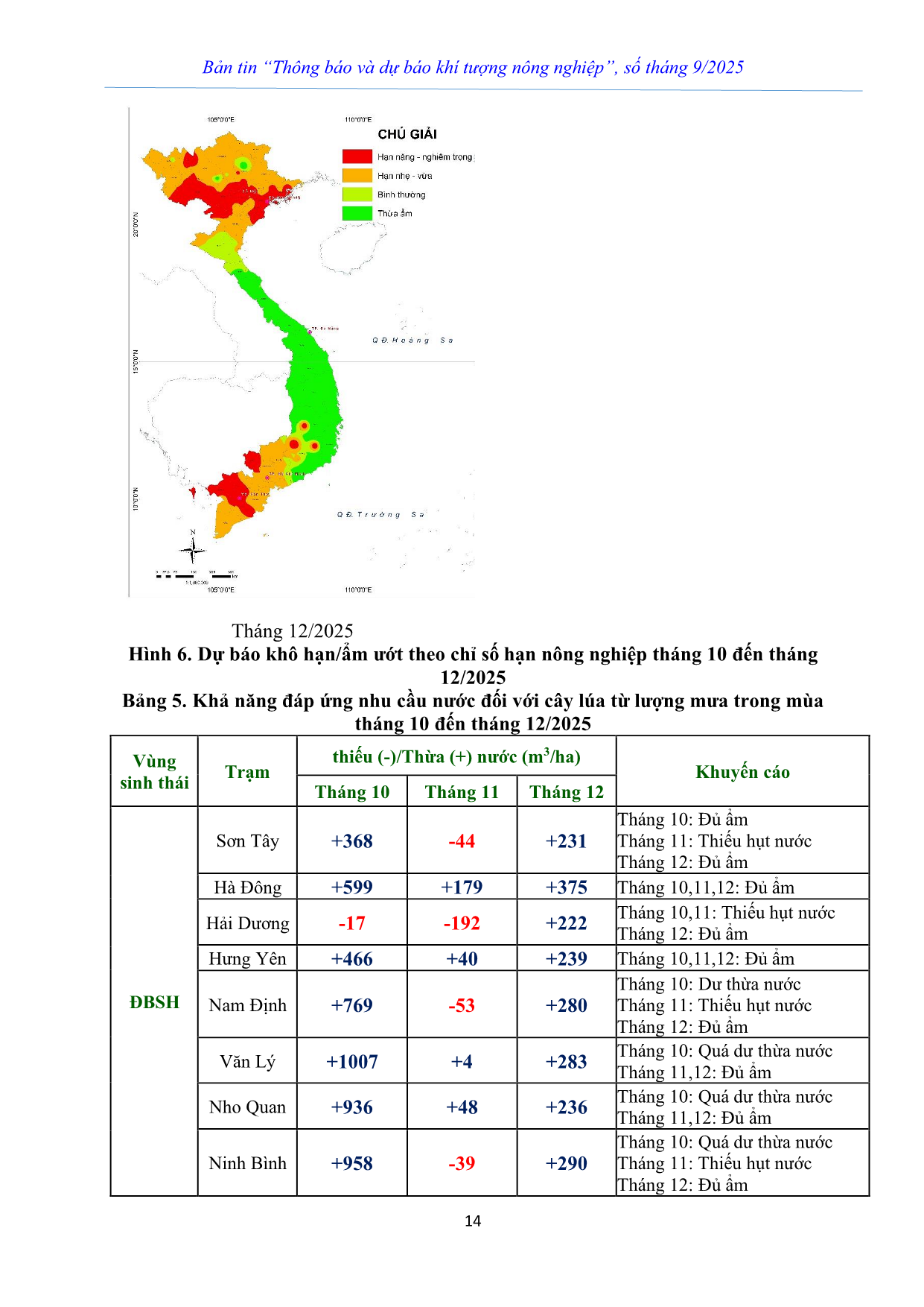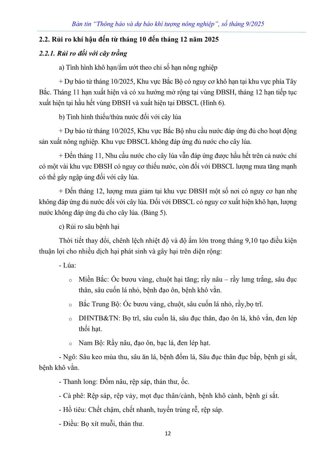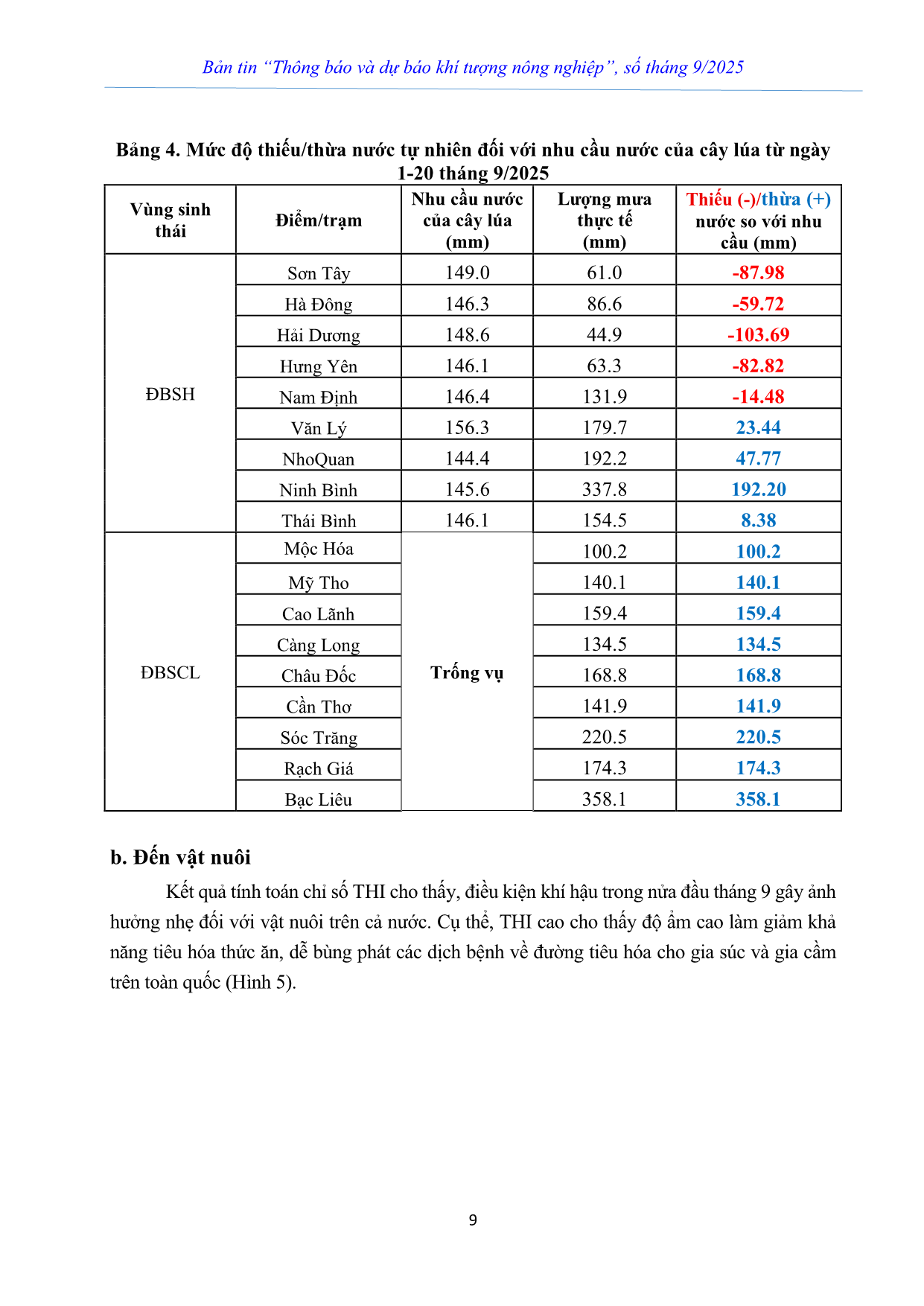 THÔNG BÁO VÀ DỰ BÁO KHÍ TƯỢNG NÔNG NGHIỆP SỐ THÁNG 9 NĂM 2025