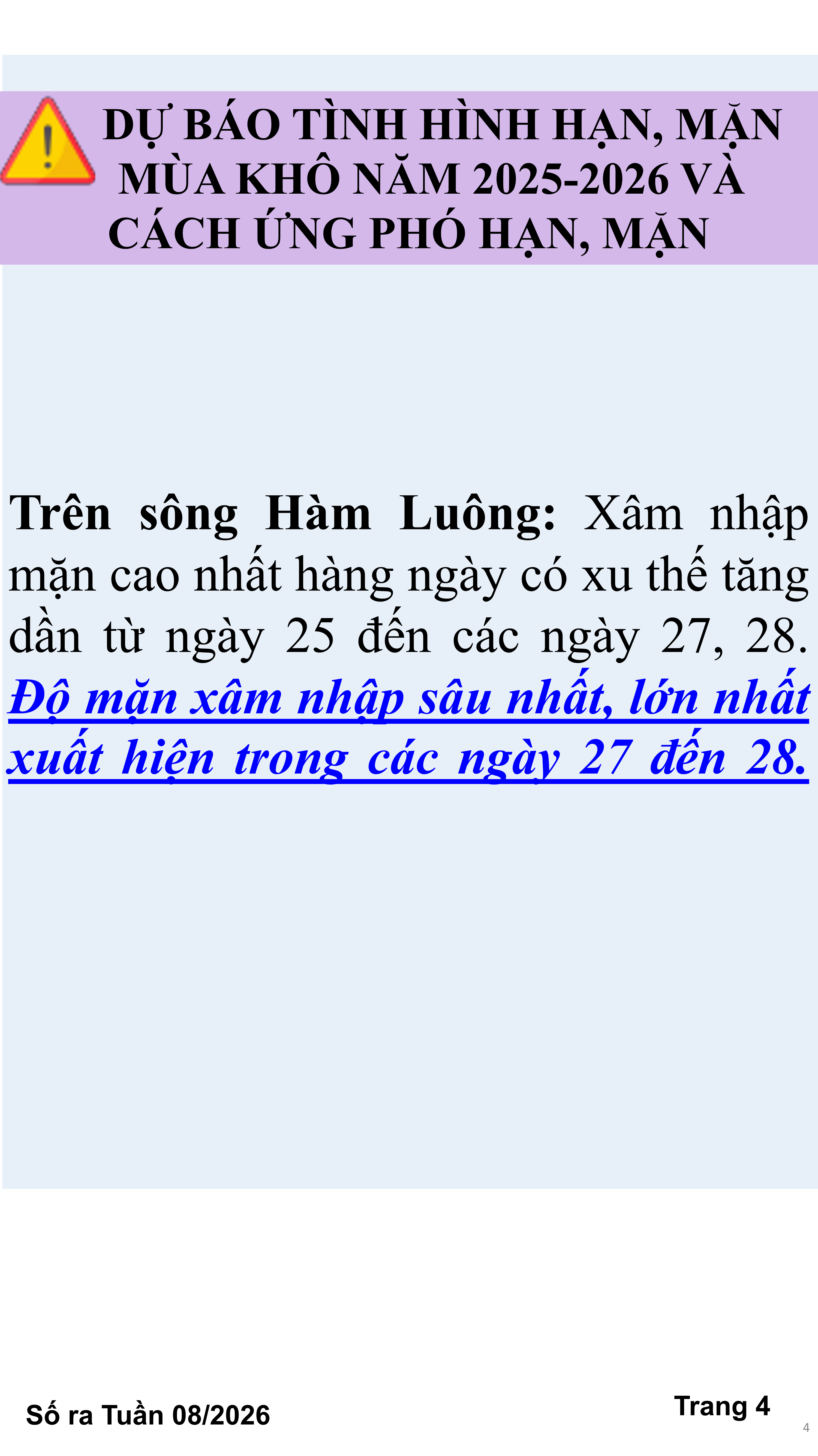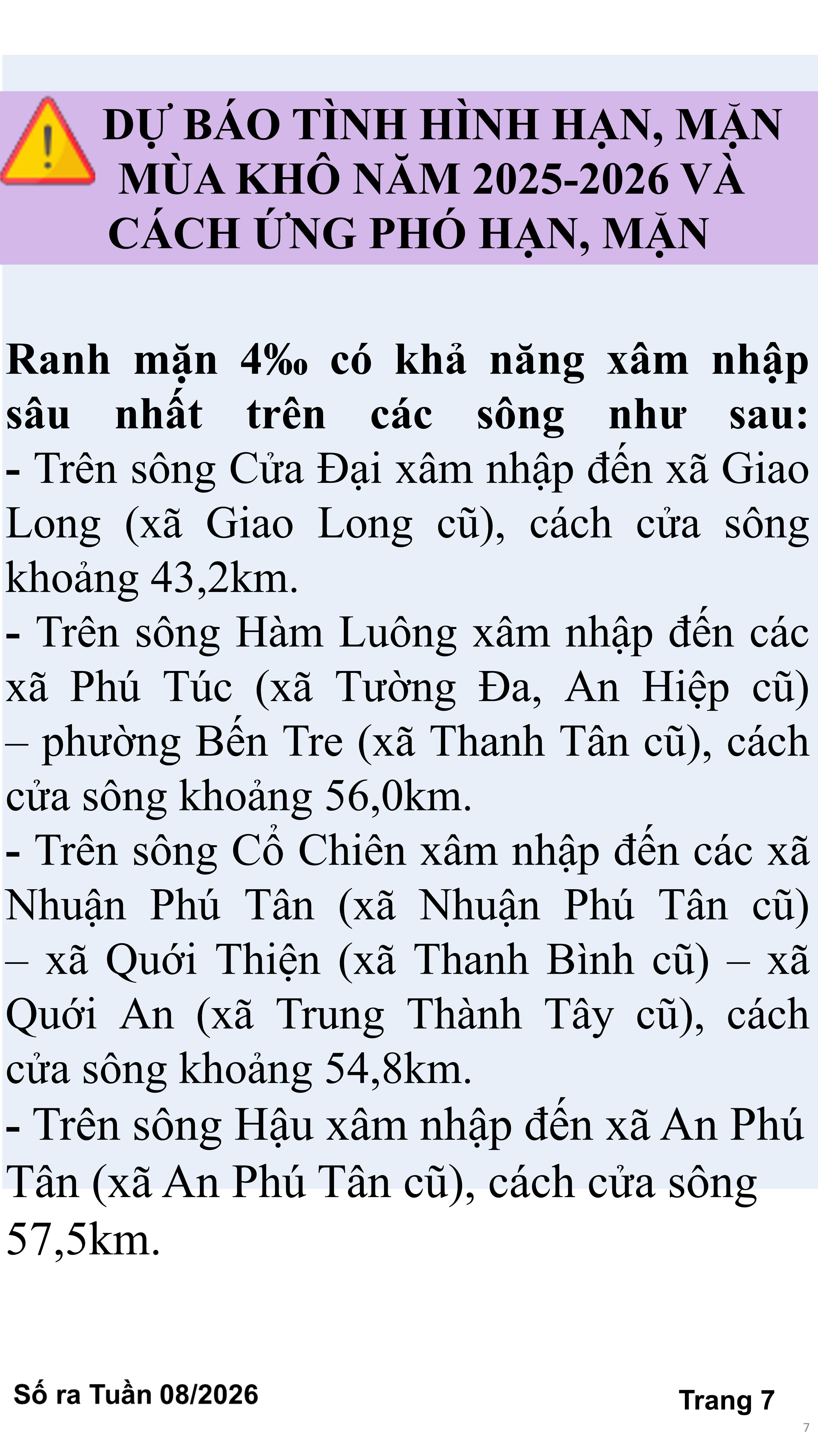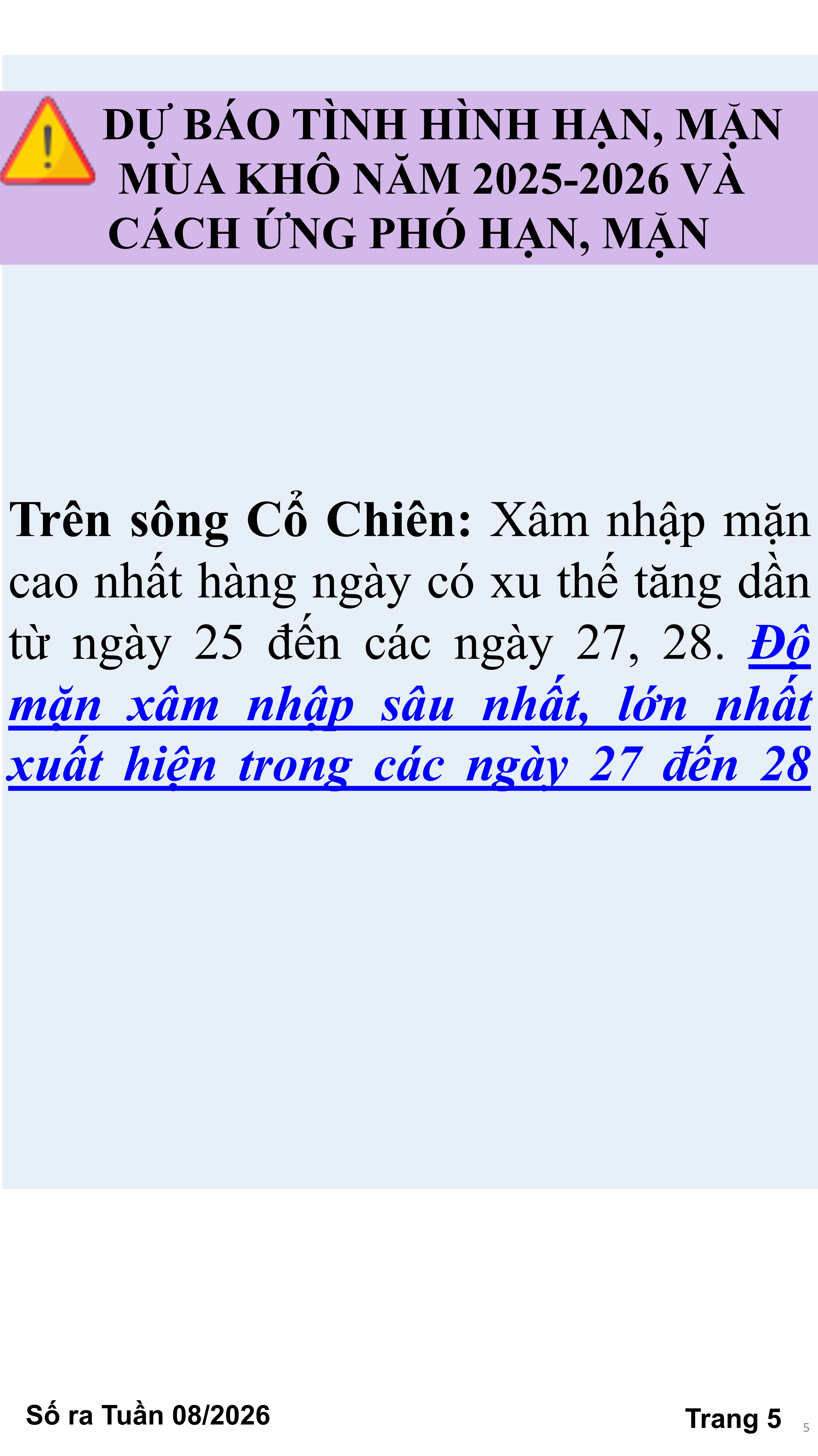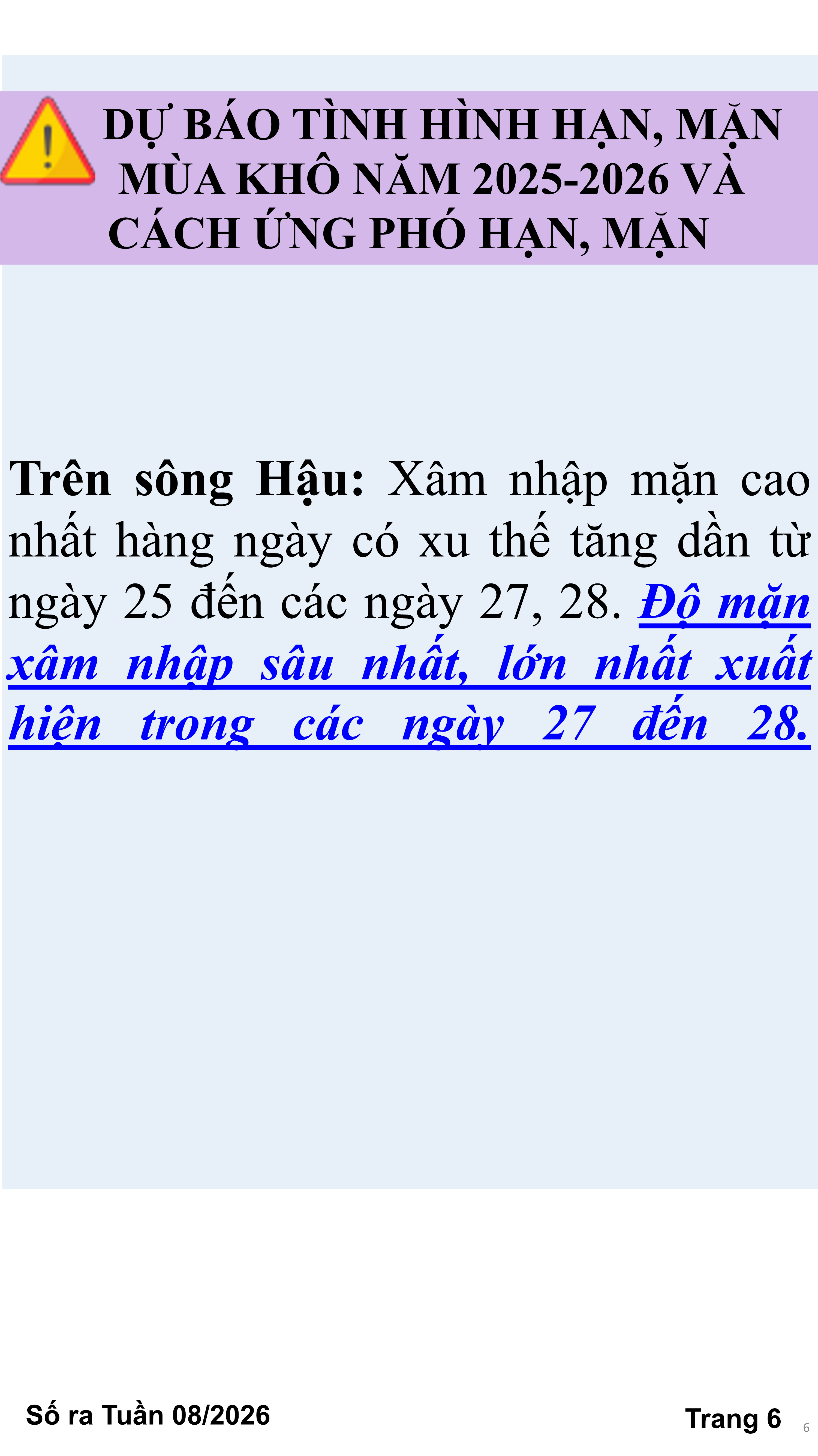 BẢN TIN THỜI TIẾT NÔNG VỤ TỈNH VĨNH LONG TỪ NGÀY 21/02-28/02/2026 (theo dương lịch)