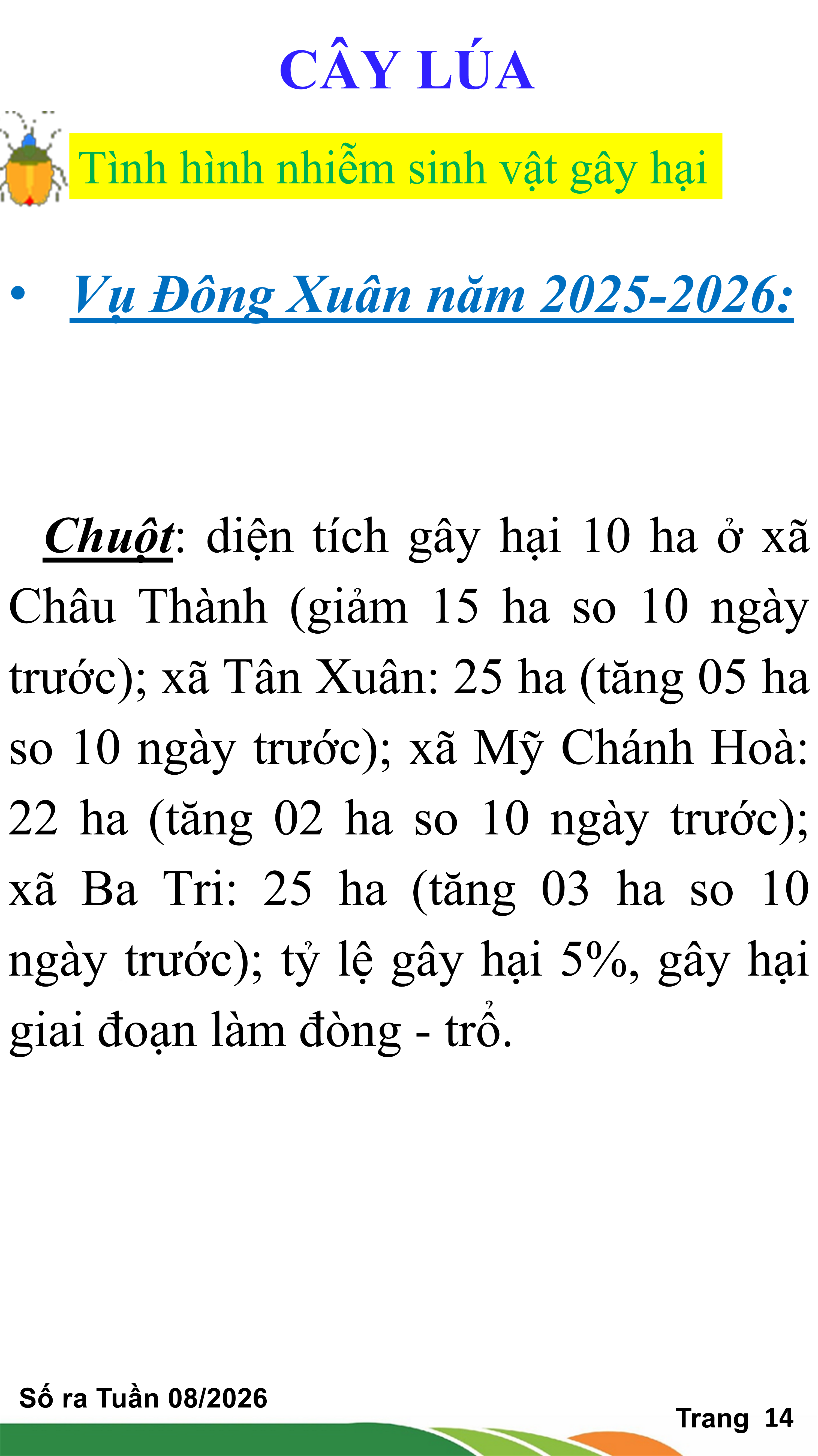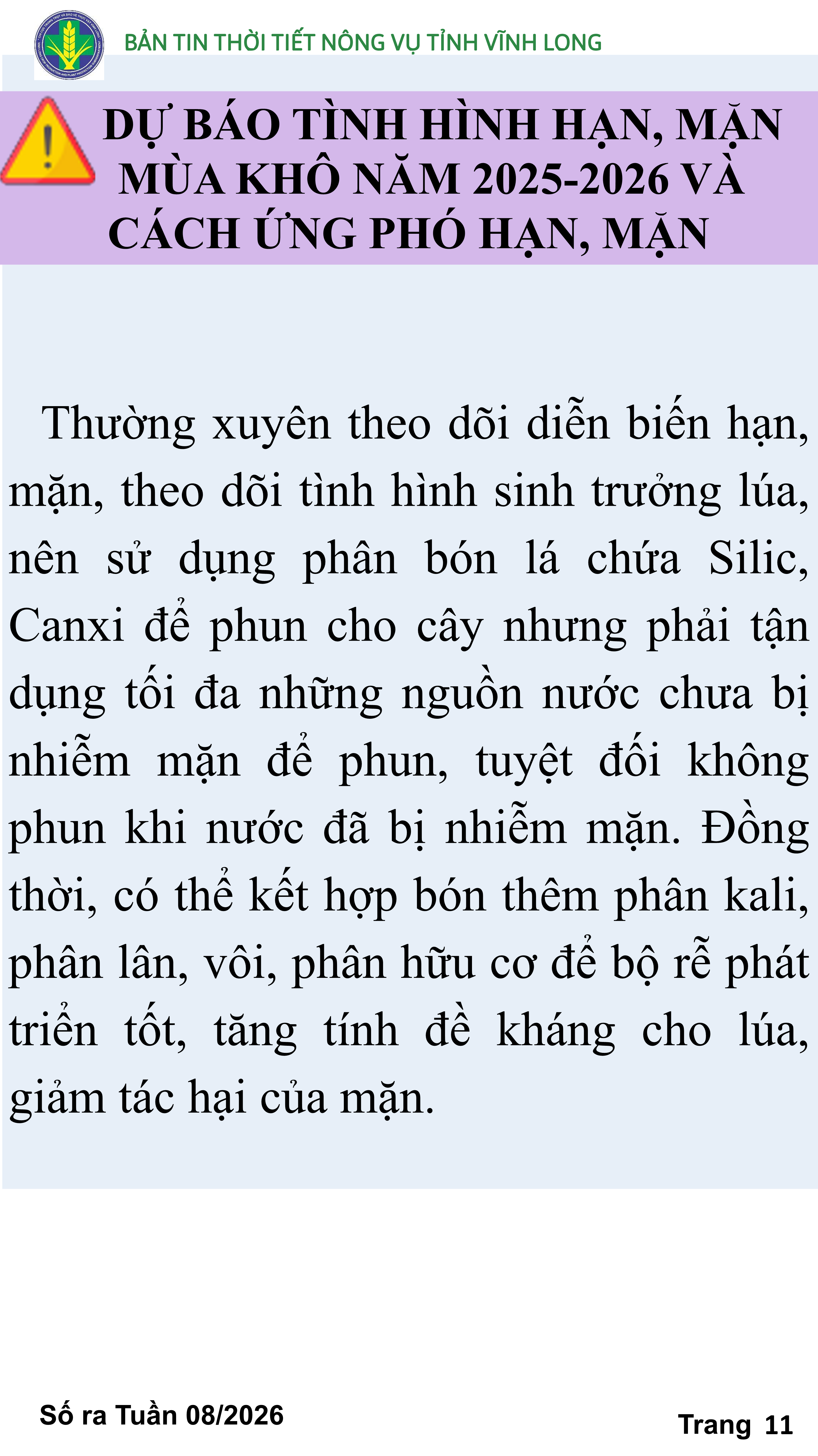 BẢN TIN THỜI TIẾT NÔNG VỤ TỈNH VĨNH LONG TỪ NGÀY 11/02-21/02/2026 (theo dương lịch)