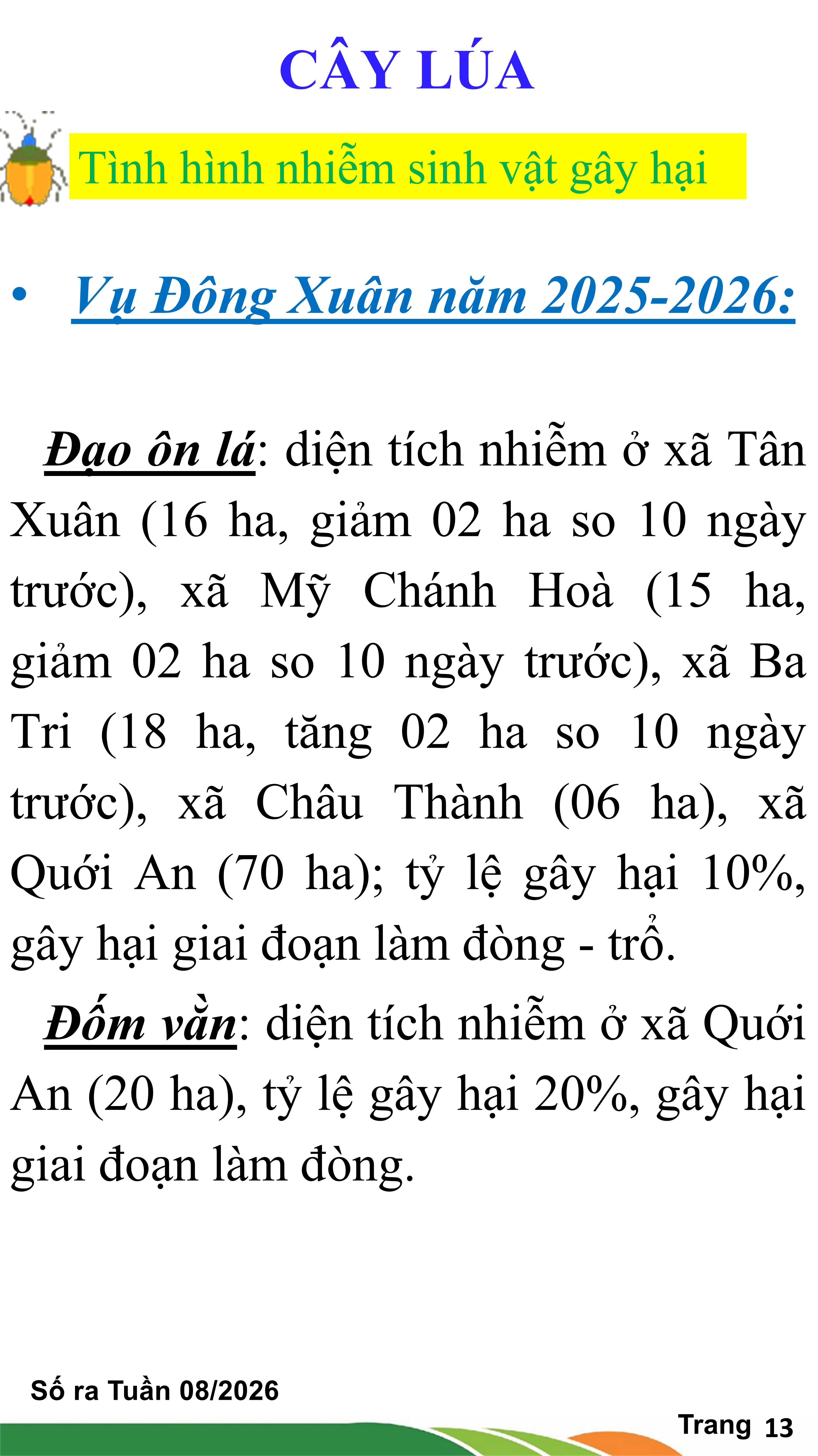 BẢN TIN THỜI TIẾT NÔNG VỤ TỈNH VĨNH LONG TỪ NGÀY 11/01-21/01/2026 (theo dương lịch)