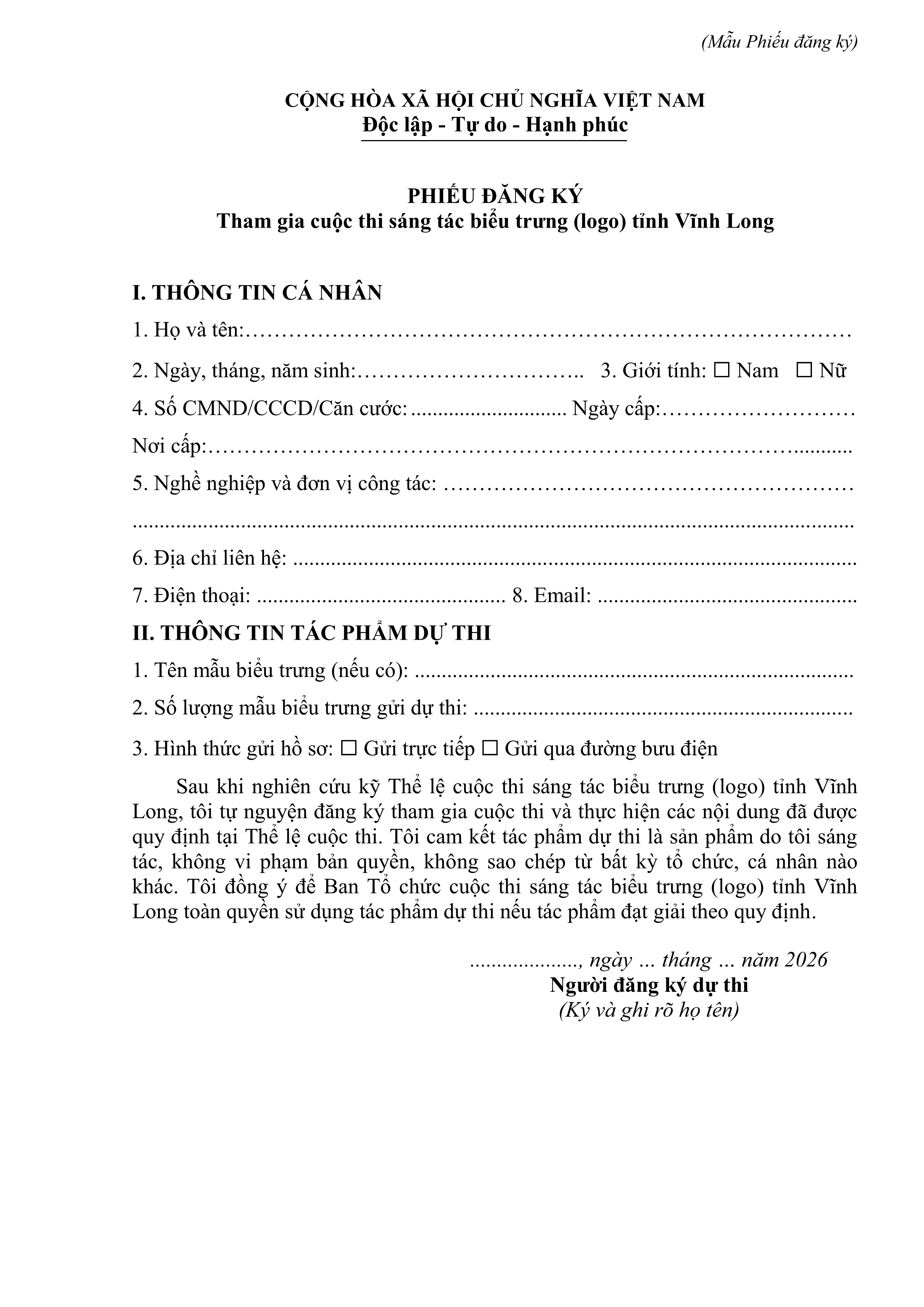 Tải mẫu phiếu đăng ký tham gia cuộc thi:
