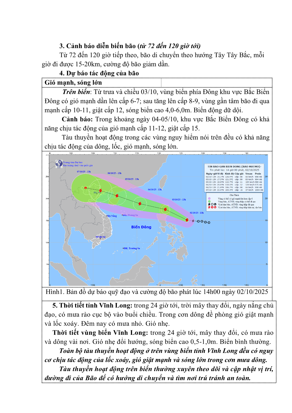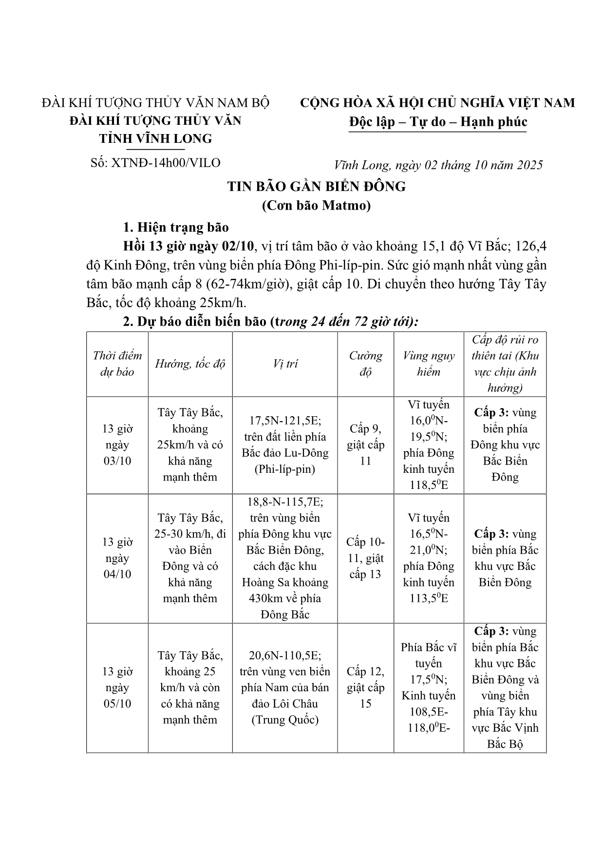 TIN BÃO GẦN BIỂN ĐÔNG (Cơn bão Matmo) ngày 02/10/2025
