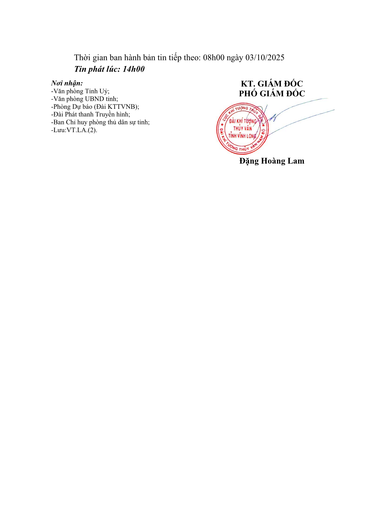 TIN DỰ BÁO, CẢNH BÁO MƯA DIỆN RỘNG, MƯA LỚN TỈNH VĨNH LONG NGÀY 09 THÁNG 10 NĂM 2025