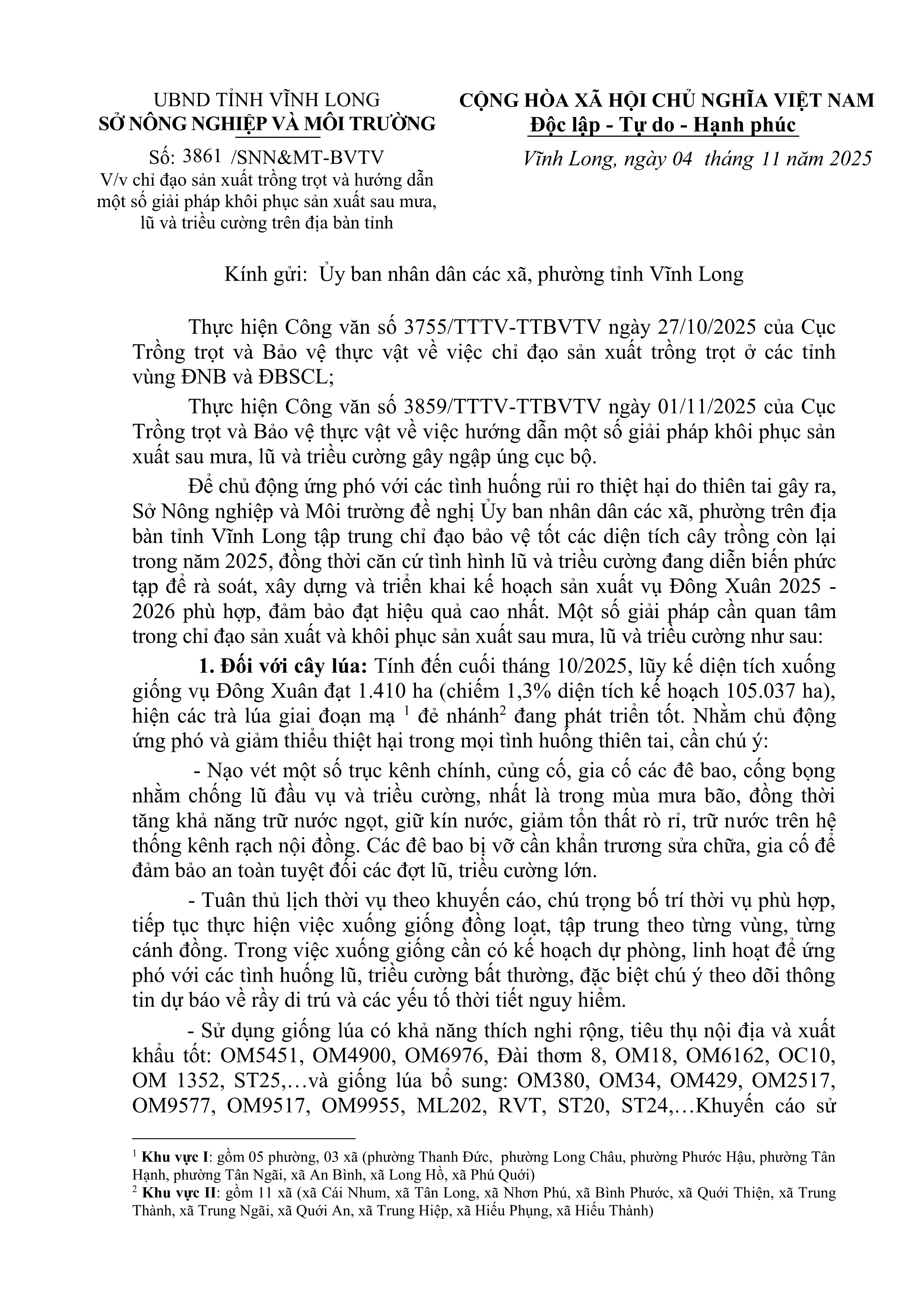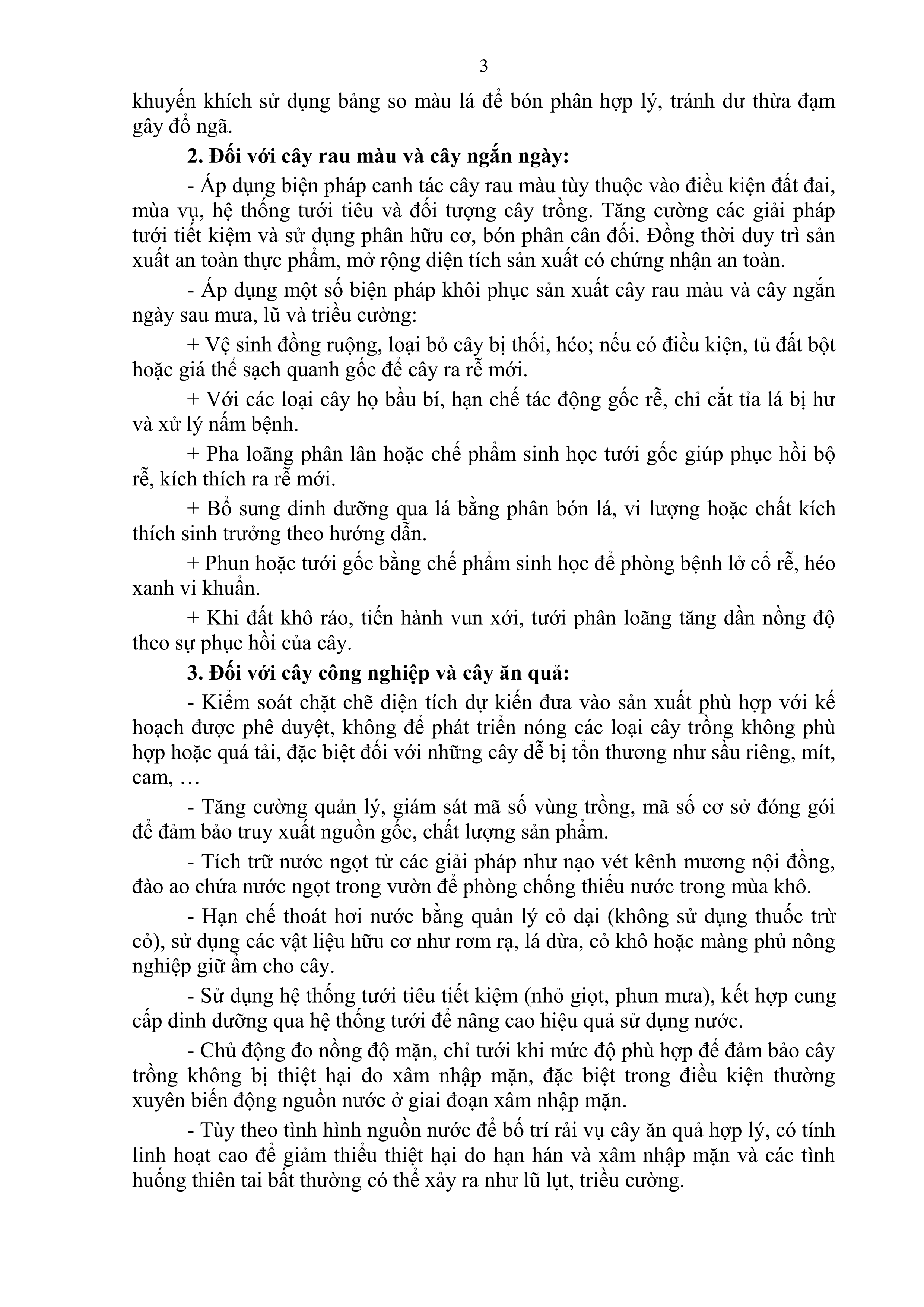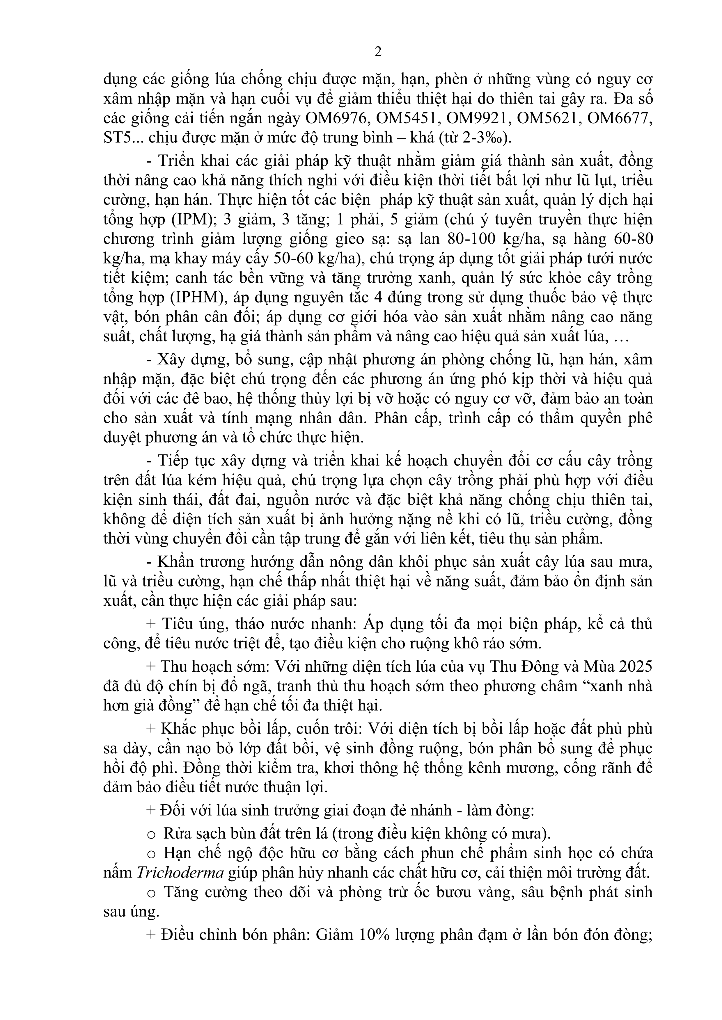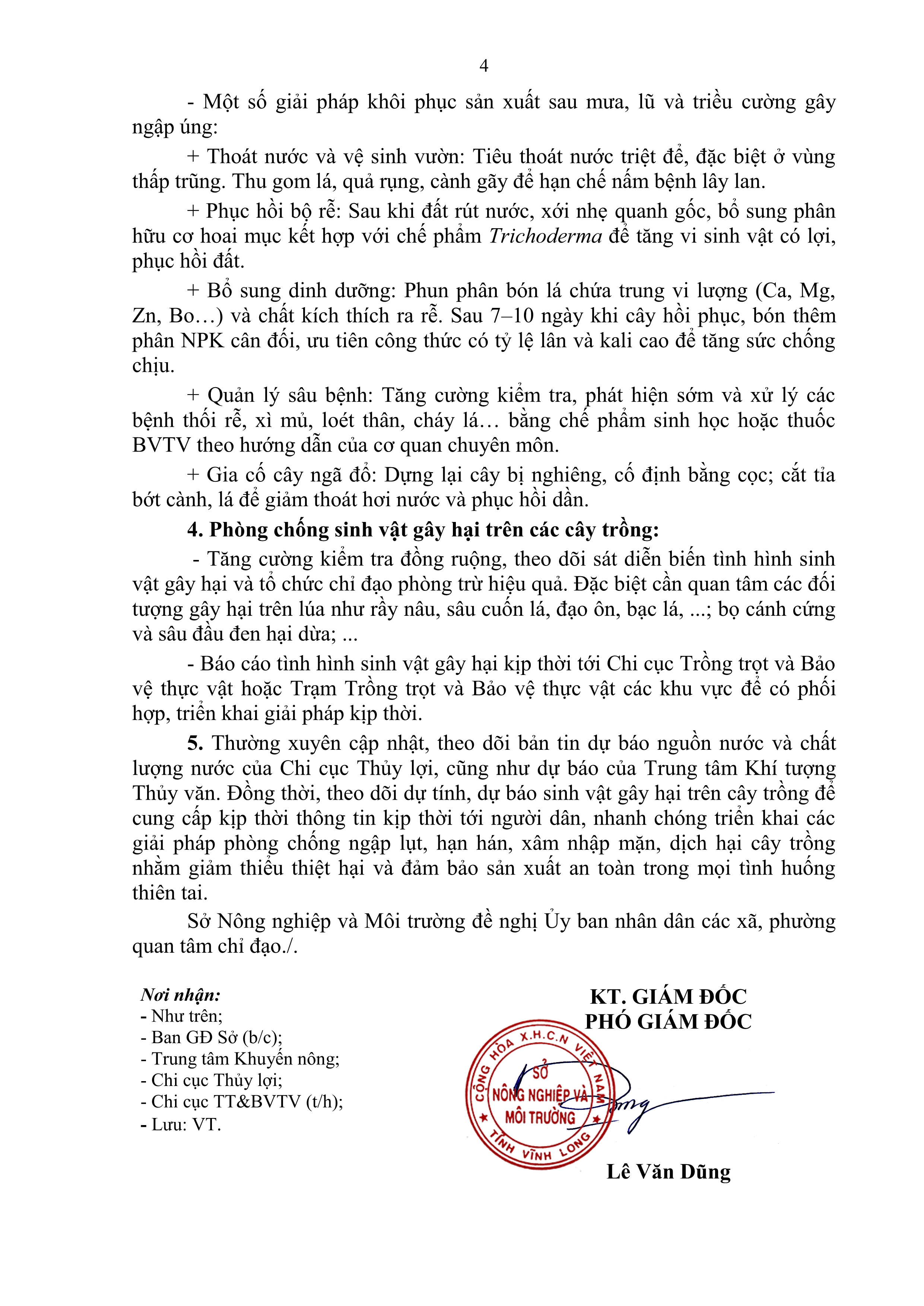 Chỉ đạo sản xuất trồng trọt và hướng dẫn một số giải pháp khôi phục sản xuất sau mưa, lũ và triều cường trên địa bàn tỉnh